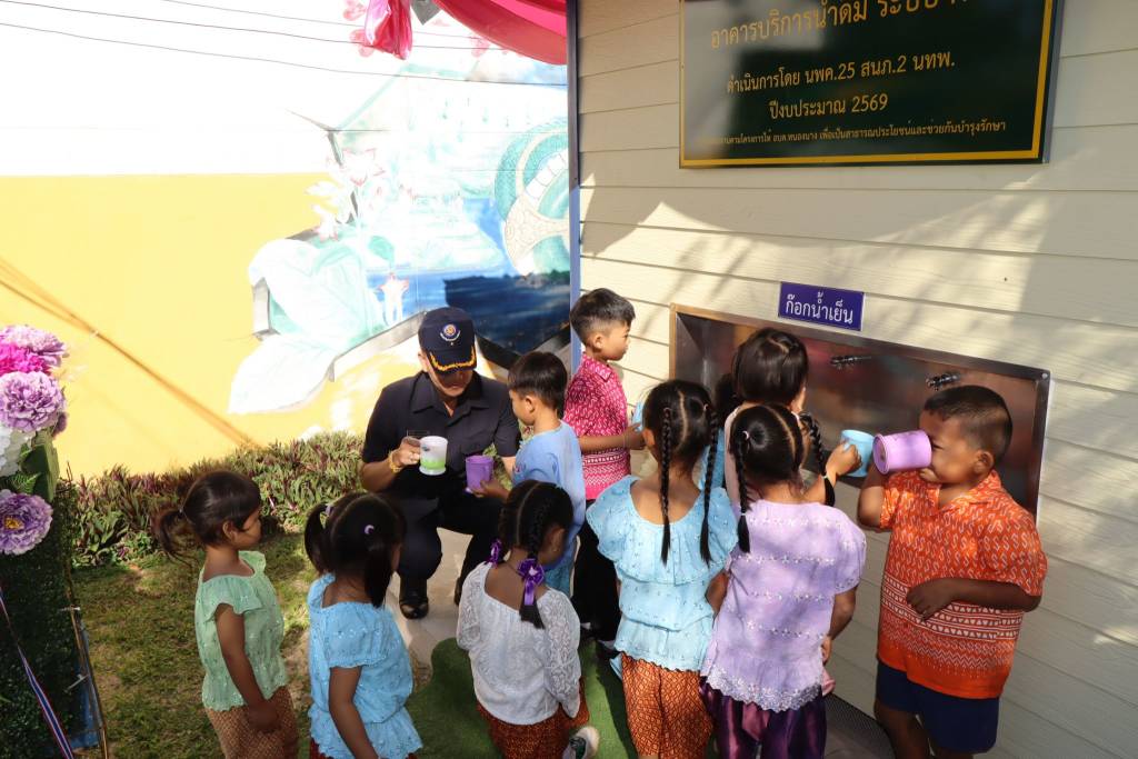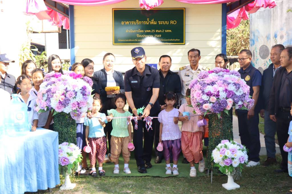 วันนี้ (26 ธ.ค. 68) กองบัญชาการกองทัพไทย โดยพันเอกอธิเมศร์ ศรุติเจริญวงศ์ ผู้บังคับหน่วยพัฒนาการเคลื่อนที่ 25(สองห้า) สำนักงานพัฒนาภาค 2 หน่วยบัญชาการทหารพัฒนา เป็นประธานในพิธีมอบโครงการเป็นของขวัญปีใหม่ให้แก่ประชาชน ประจำปี พ.ศ.2569 ในพื้นที่ตำบลเป้าหมายในการพัฒนา ประจำปีงบประมาณ 2569 ตำบลหนองนาง อำเภอท่าบ่อ จังหวัดหนองคาย รวมจำนวน 3 โครงการ โดยมอบอาคารบริการน้ำดื่มระบบอาร์โอ ซึ่งมีอัตราการผลิต 250 ลิตรต่อชั่วโมง โดยดำเนินการภายในโรงเรียนบ้านนาดง หมู่ที่ 2 ตำบลหนองนาง อำเภอท่าบ่อ จังหวัดหนองคาย เพื่อให้ครู นักเรียน และชุมชน ได้บริโภคน้ำสะอาด ปลอดภัย ถูกสุขลักษณะ และลดค่าใช้จ่ายในการซื้อน้ำบริโภคในแต่ละวัน และยังได้มอบอุปกรณ์กีฬาให้แก่นักเรียน เพื่อไว้ใช้ออกกำลังกาย หรือใช้ในการเรียนการสอน
