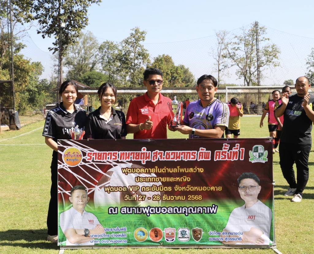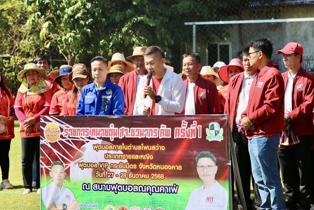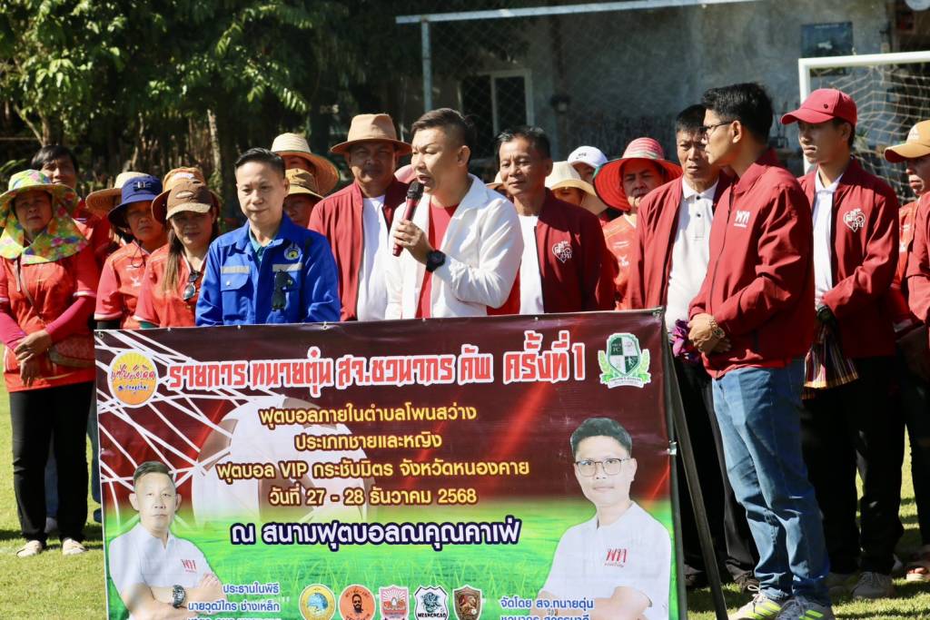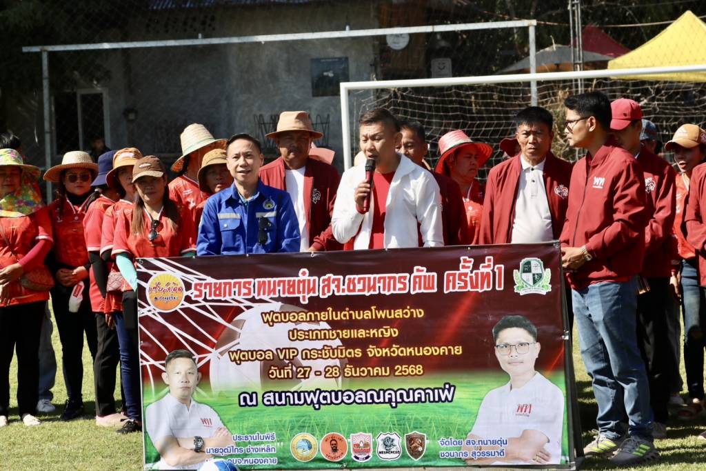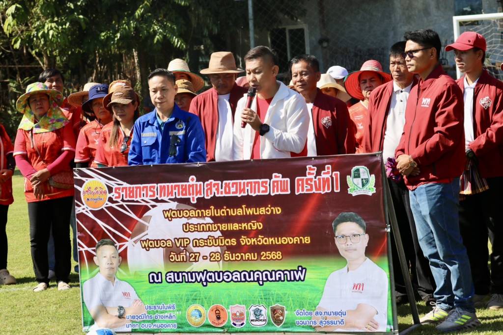 วันนี้ (27 ธ.ค. 68) เวลา 10.30 น. ณ สนามฟุตบอลณคุณคาเฟ่ บ้านดงเว้น หมู่ที่ 5 ตำบลโพนสว่าง อำเภอเมืองหนองคาย จังหวัดหนองคาย นายวุฒิไกร ช่างเหล็ก นายกองค์การบริหารส่วนจังหวัดหนองคาย เป็นประธานเปิดการแข่งขันฟุตบอล 7 คน "ทนาย สจ.ตุ่น ชวนากร คัพ ครั้งที่ 1" โดยมี นายชวนากร สุวรรมาดี สมาชิกสภาองค์การบริหารส่วนจังหวัดหนองคาย (ทนายตุ่น/สจ.ตุ่น) เขต 6 อำเภอเมืองหนองคาย กล่าวรายงานวัตถุประสงค์การจัดงาน