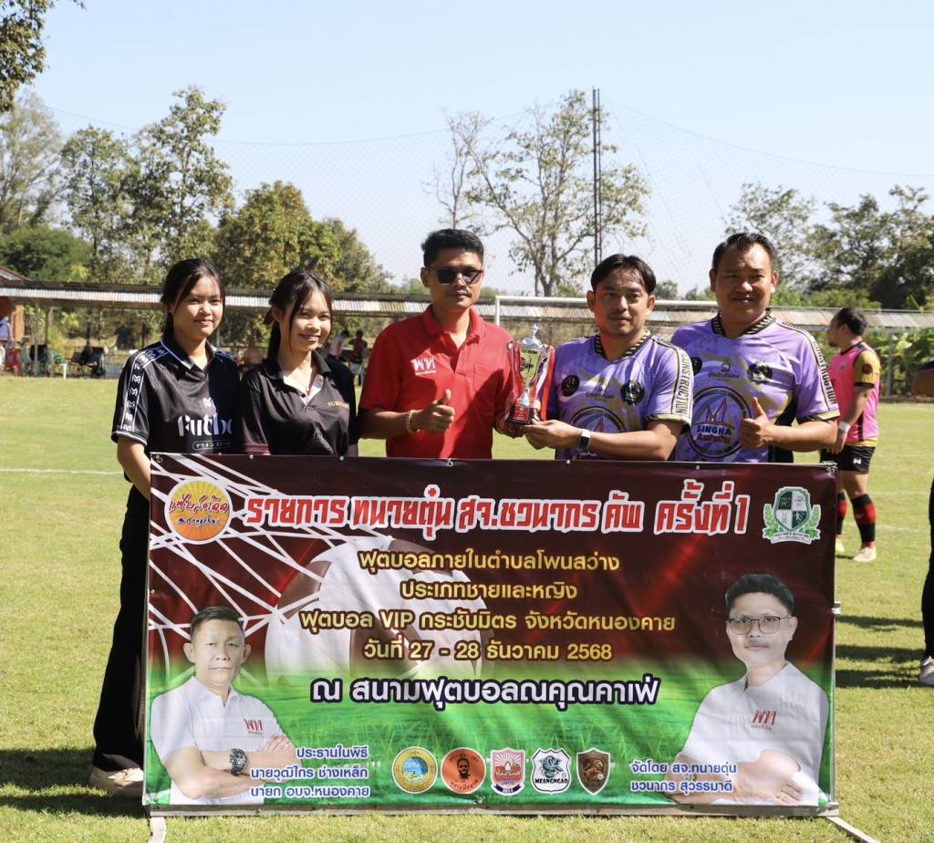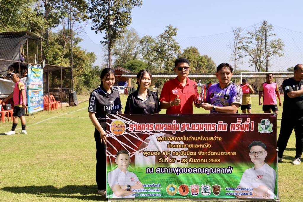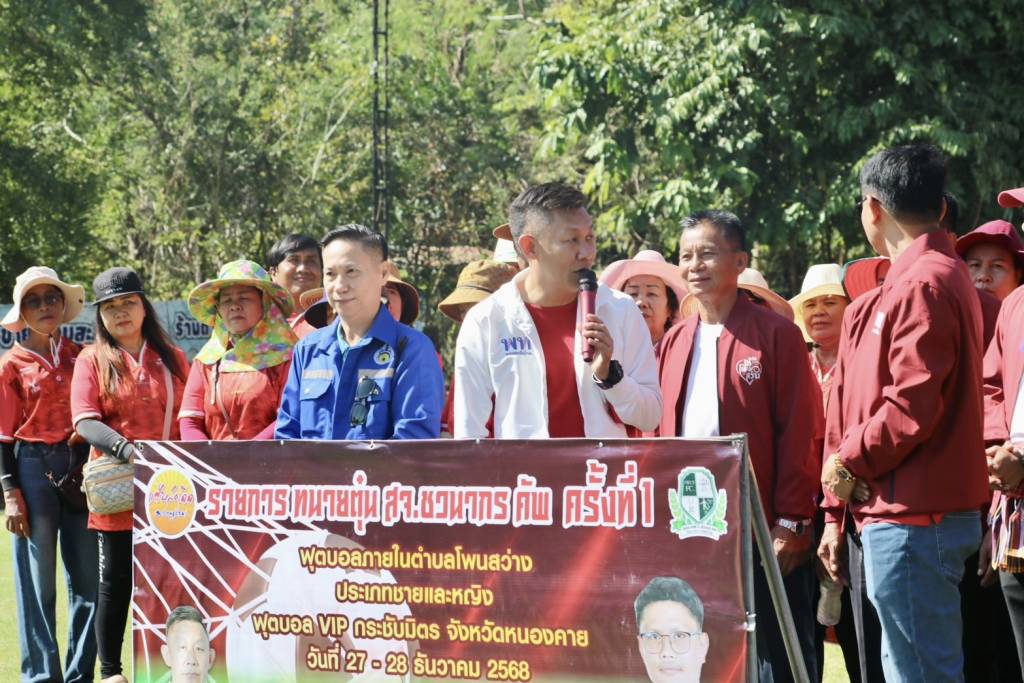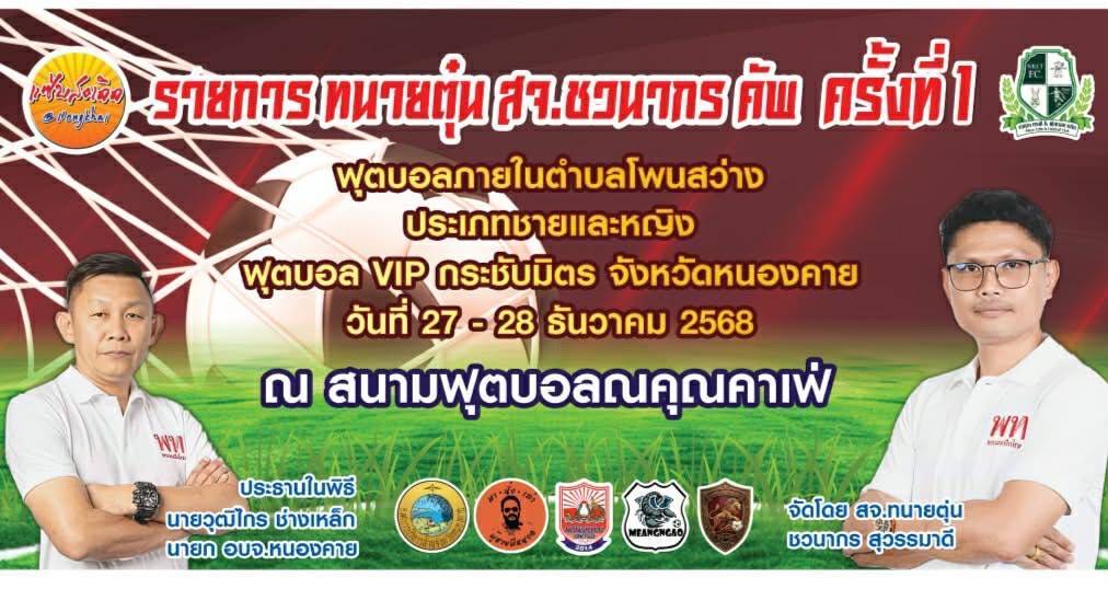 วันนี้ (27 ธ.ค. 68) เวลา 10.30 น. ณ สนามฟุตบอลณคุณคาเฟ่ บ้านดงเว้น หมู่ที่ 5 ตำบลโพนสว่าง อำเภอเมืองหนองคาย จังหวัดหนองคาย นายวุฒิไกร ช่างเหล็ก นายกองค์การบริหารส่วนจังหวัดหนองคาย เป็นประธานเปิดการแข่งขันฟุตบอล 7 คน "ทนาย สจ.ตุ่น ชวนากร คัพ ครั้งที่ 1" โดยมี นายชวนากร สุวรรมาดี สมาชิกสภาองค์การบริหารส่วนจังหวัดหนองคาย (ทนายตุ่น/สจ.ตุ่น) เขต 6 อำเภอเมืองหนองคาย กล่าวรายงานวัตถุประสงค์การจัดงาน