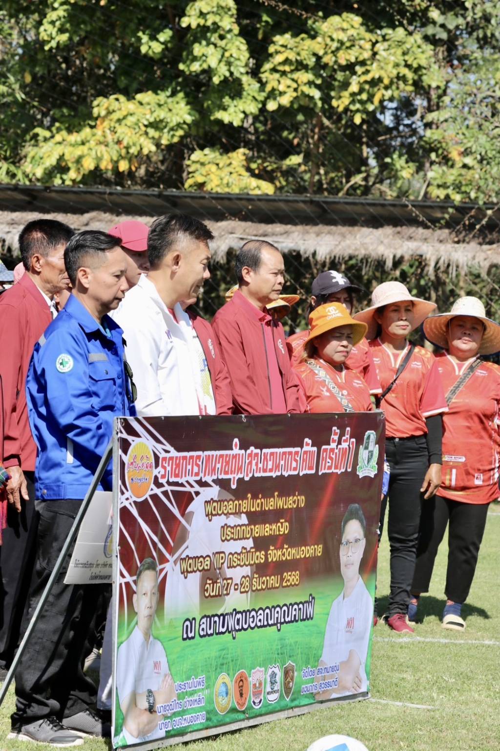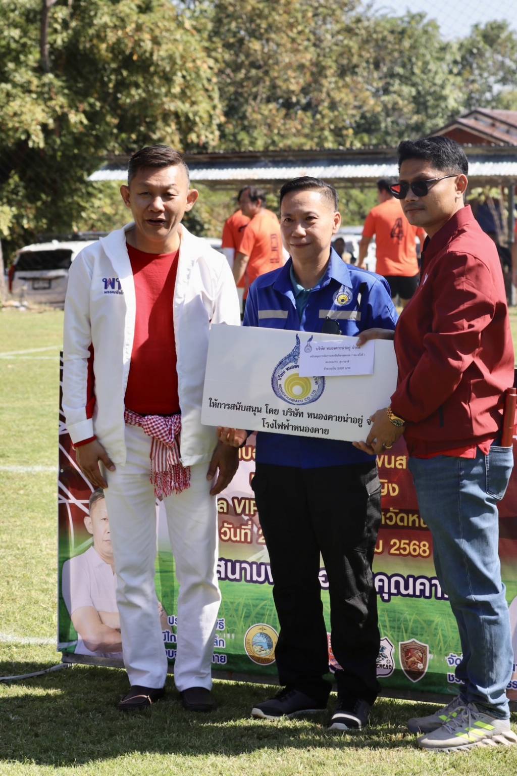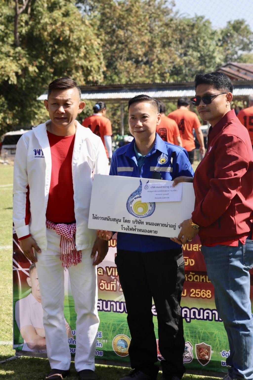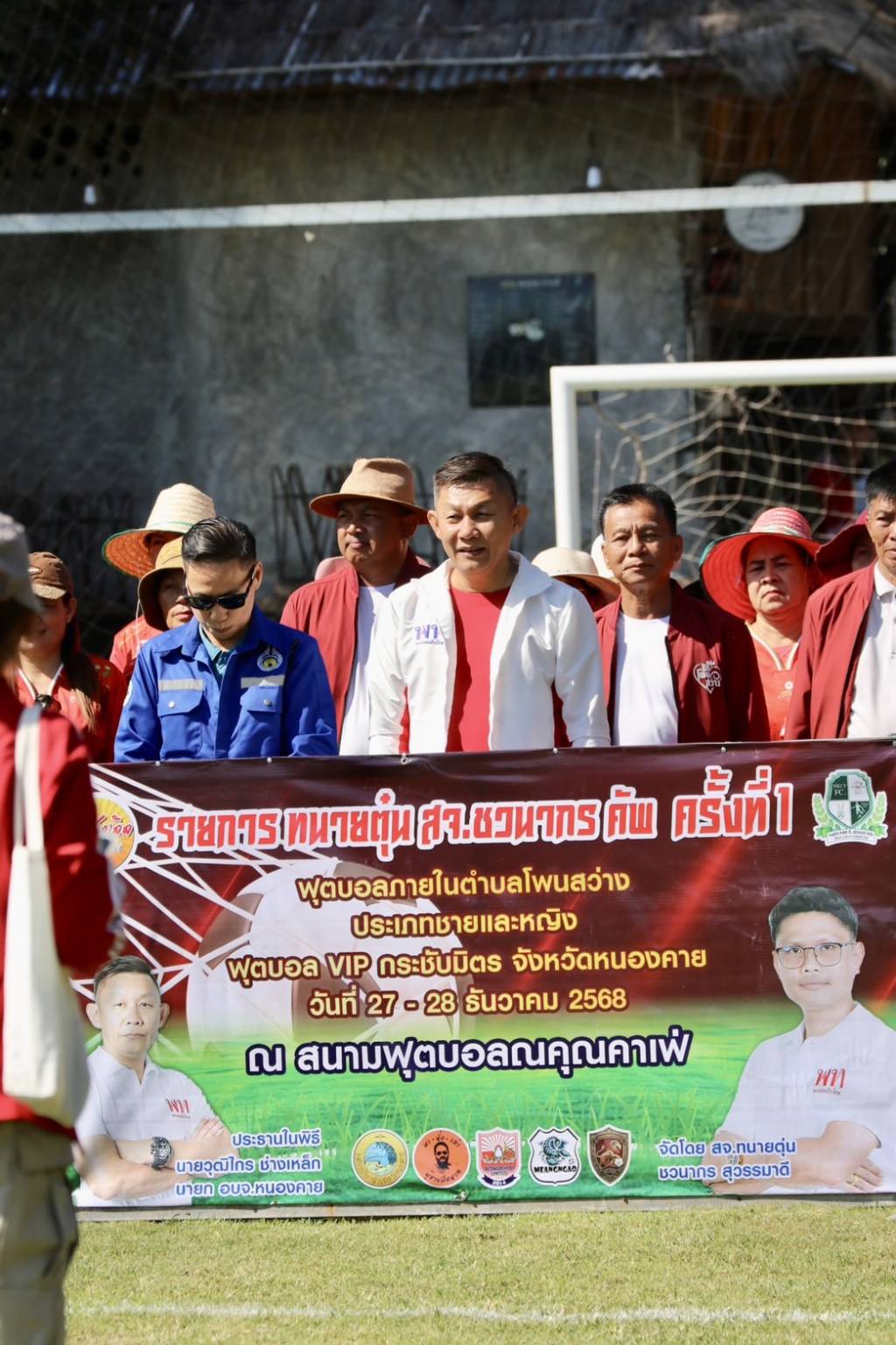 โดยมีตัวแทน บริษัท หนองคายน่าอยู่ จำกัด มาให้การสนับสนุนในการจัดรายการฟุตบอล และนายธนกฤต พรมวาส ผู้สมัครเป็นนายกองค์การบริหารส่วนตำบลโพนสว่าง เบอร์ 2 พร้อมทีมผู้ช่วยหาเสียงมาร่วมในการเปิดรายการฟุตบอลดังกล่าวด้วย.