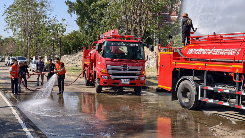 เมื่อเวลา 13.30 น.วันนี้ (14 ม.ค. 69) นายไพฑูรย์ มหาชื่นใจ รองผู้ว่าราชการจังหวัดหนองคาย เป็นประธานในการรณรงค์ประชาสัมพันธ์ การป้องกันและแก้ไขปัญหาฝุ่นละอองขนาดเล็ก PM 2.5 ณ สถานีตรวจวัดคุณภาพอากาศบรรยากาศ ของกรมควบคุมมลพิษ ที่ตั้งอยู่ภายในบริเวณสวนสาธารณะหนองถิ่น ต.มีชัย อ.เมืองหนองคาย จ.หนองคาย มีหัวหน้าส่วนราชการ หน่วยงานที่เกี่ยวข้อง เข้าร่วมในการรณรงค์ประชาสัมพันธ์ฯ ครั้งนี้อย่างพร้อมเพรียง โดยได้มีการฉีดพ่นละอองน้ำและฉีดน้ำล้างถนนภายในสวนสาธารณะหนองถิ่น เพื่อเป็นการป้องกันและลดปริมาณฝุ่นละออง