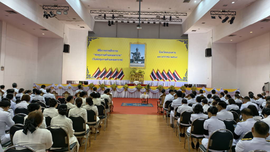 เมื่อเวลา 08.00 น.วันนี้ (17 มกราคม 2569) ณ หอประชุมประจักษศิลปาคม ศาลากลางจังหวัดหนองคาย อ.เมืองหนองคาย จังหวัดหนองคาย นายศรัณศักด์ ศรีเครือเนตร ผู้ว่าราชการจังหวัดหนองคาย เป็นประธานในพิธีถวายราชสักการะพ่อขุนรามคำแหงมหาราช เนื่องใน “วันพ่อขุนรามคำแหงมหาราช” ประจำปีพุทธศักราช 2569 เพื่อเป็นการเฉลิมพระเกียรติและน้อมรำลึกในพระมหากรุณาธิคุณของพ่อขุนรามคำแหงมหาราช พระมหากษัตริย์ผู้ทรงพระคุณอันประเสริฐ พระราชกรณียกิจนานัปการที่ทรงปฏิบัติบำเพ็ญตลอดพระชนชีพ อำนวยผลให้ประชาราษฎรอยู่เย็นเป็นสุข ทั้งยังมีการจารึกเป็นประวัติศาสตร์ให้อนุชนรุ่นหลังได้ศึกษาเรียนรู้ และได้รำลึกถึงพระมหากรุณาธิคุณอันยิ่งใหญ่ของพระองค์ฯจวบจนถึงปัจจุบัน