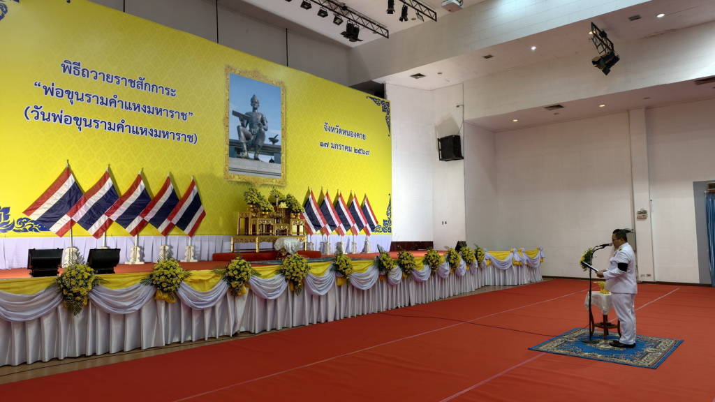 จังหวัดหนองคาย จัดพิธีถวายราชสักการะพ่อขุนรามคำแห่งมหาราช เนื่องใน “วันพ่อขุนรามคำแหงมหาราช” ประจำปีพุทธศักราช 2569 เพื่อเฉลิมพระเกียรติและน้อมรำลึกในพระมหากรุณาธิคุณของพ่อขุนรามคำแหงมหาราช พระมหากษัตริย์ผู้ทรงพระคุณอันประเสริฐ พระราชกรณียกิจนานัปการ ที่ทรงปฏิบัติบำเพ็ญตลอดพระชนชีพ อำนวยผลให้ประชาราษฎรอยู่เย็นเป็นสุข
