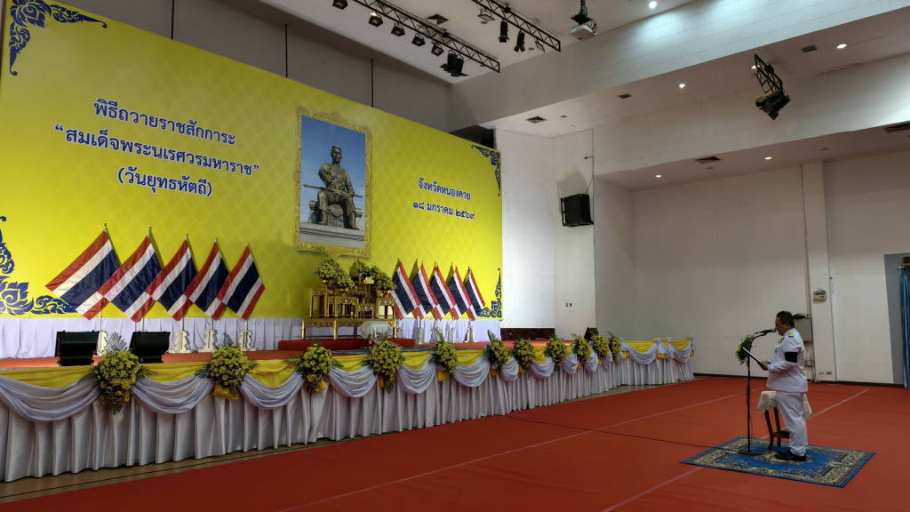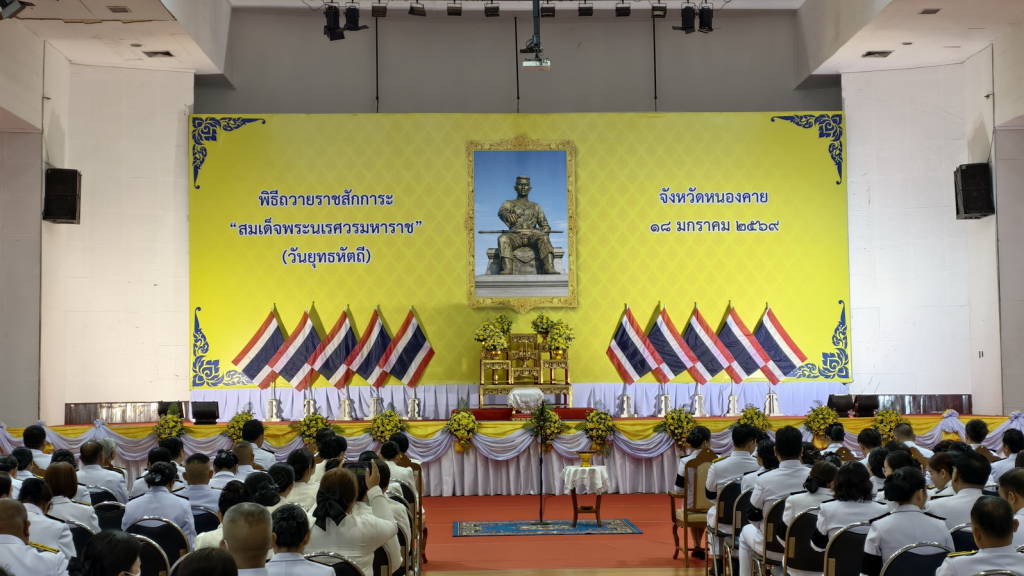 จังหวัดหนองคาย จัดพิธีถวายราชสักการะ สมเด็จพระนเรศวรมหาราช (วันยุทธหัตถี) ประจำปีพุทธศักราช 2569 เพื่อน้อมรำลึกพระมหากรุณาธิคุณสมเด็จพระนเรศวรมหาราช ที่ทรงกอบกู้เอกราชของชาติไทย
