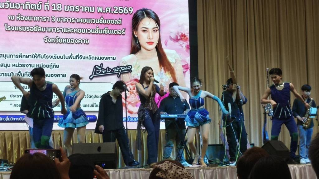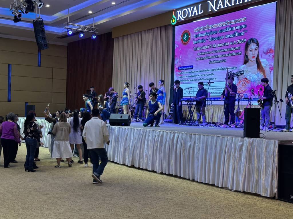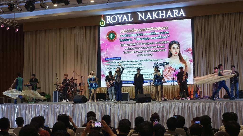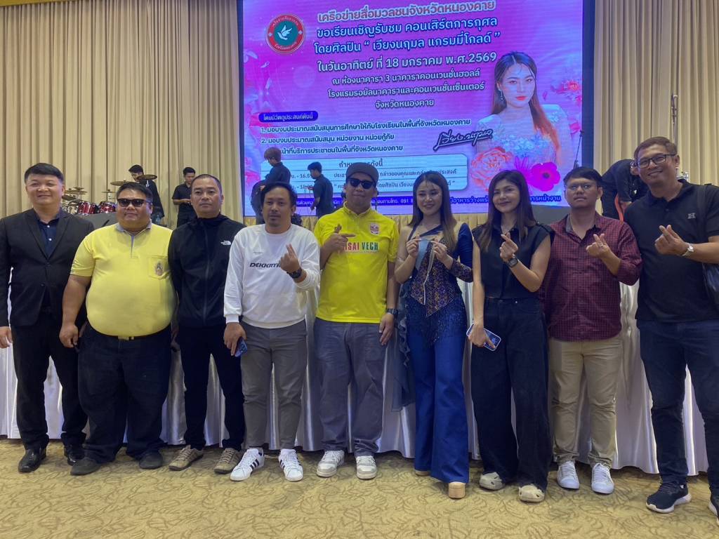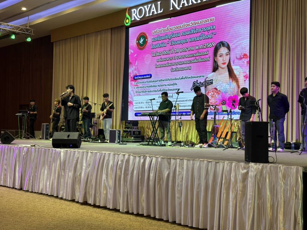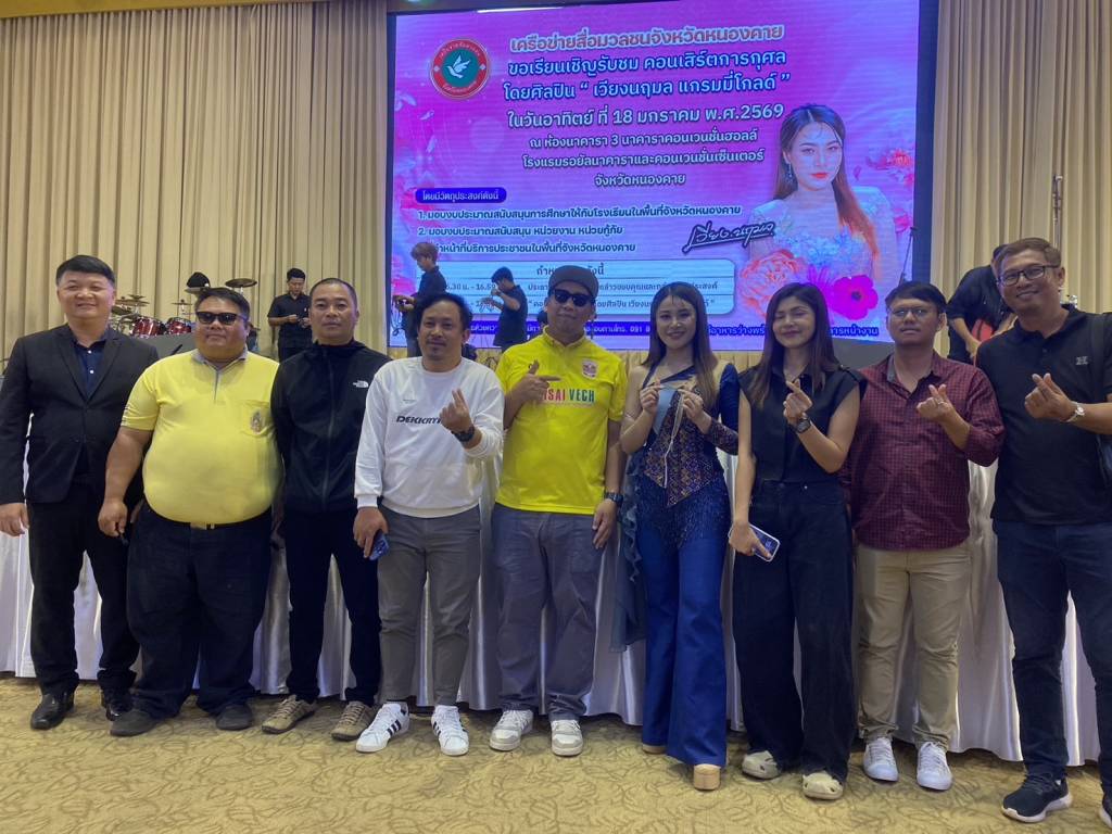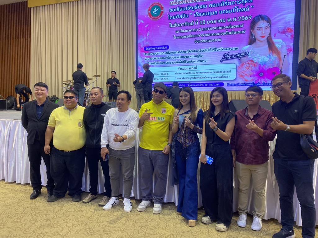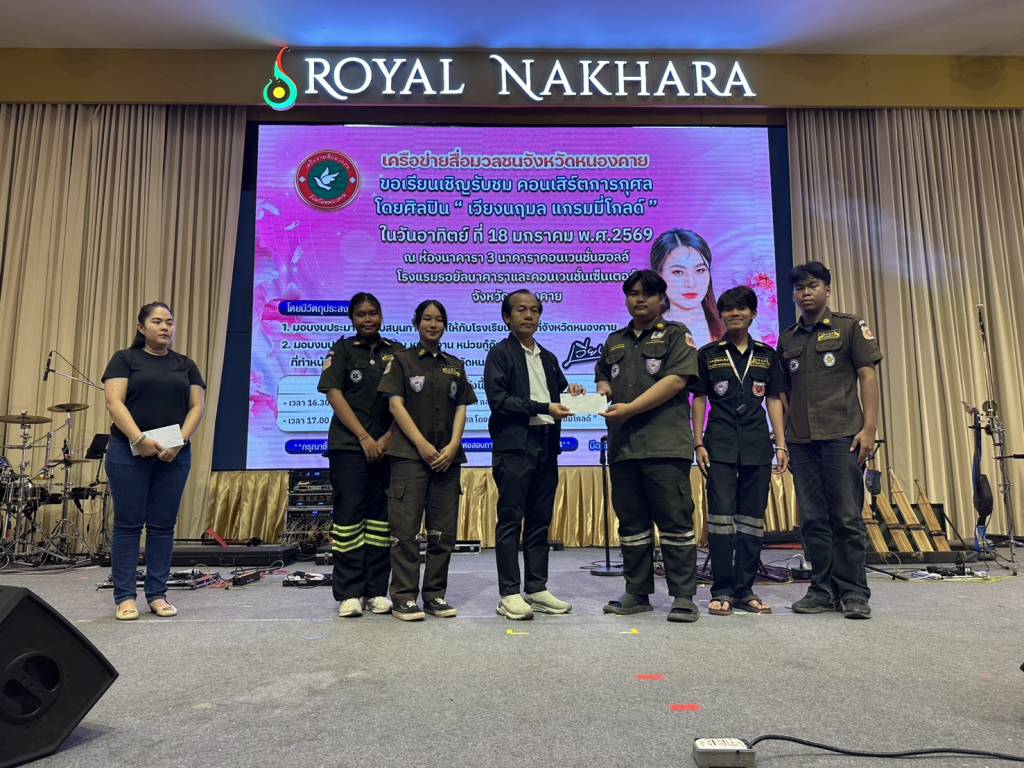 วันนี้ (18 ม.ค. 69) เวลา 17.00 น. ที่ห้องประชุมโรงแรมรอยัลนาคารา3 อ.เมืองหนองคาย จ.หนองคาย นายวีระชัย โชคมงคลภูมิรัตน์ รองนายกเทศมนตรีเมืองหนองคาย เป็นประธานเปิดกิจกรรมคอนเสิร์ตการกุศล “เวียง นฤมล” ศิลปินจากแกรมมี่โกลด์ พร้อมมอบเงินสนับสนับสนุนโรงเรียน หน่วยกู้ภัย (หน่วยกู้ภัยประจักษ์/หน่วยกู้ภัยร่วมใจอำเภอท่าบ่อ) ในพื้นที่จังหวัดหนองคาย โดยมี นายปราโมทย์ สุขสวัสดิ์ นายกเทศมนตรีตำบลวัดธาตุ/ประธานสันนิบาตเทศบาลจังหวัดหนองคาย ,นางมณีรัตน์ สุระขาย สมาชิกสภาเทศบาลเมืองหนองคาย ร่วมมอบ มี นายอภิรัตน์ชัย จอมศรี ผู้สื่อข่าวอาวุโสจังหวัดหนองคาย และที่ปรึกษาเครือข่ายสื่อมวลชนจังหวัดหนองคาย หัวหน้าส่วนราชการ ผู้บริหารองค์กรปกครองส่วนท้องถิ่น ผู้ประกอบการ ประชาชน ร่วมในพิธีจำนวนมาก
