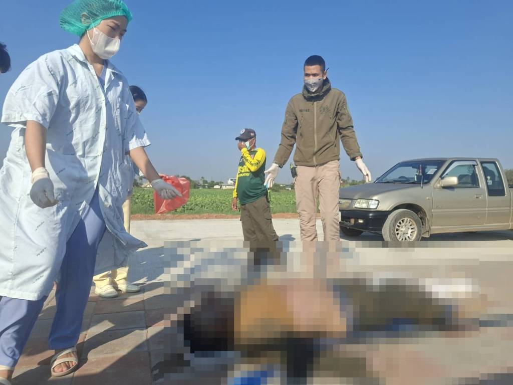 ที่เกิดเหตุพบศพชาย สภาพนอนคว่ำหน้าติดอยู่ริมฝั่งแม่น้ำโขง เจ้าหน้าที่กู้ภัยจึงได้นำร่างขึ้นมาตรวจสอบเบื้องต้น พบผู้ตายสวมเสื้อยืดสีเหลือง ทับด้วยชุดวอร์มสีดำ ที่ข้อมือทั้งสองข้างมีสายสิญจน์ผูกแขนติดอยู่ สภาพศพเริ่มขึ้นอืด คาดว่าเสียชีวิตมาแล้วไม่ต่ำกว่า 3-4 วัน จากการชันสูตรพลิกศพในเบื้องต้นไม่พบร่องรอยบาดแผลจากการถูกทำร้ายร่างกาย