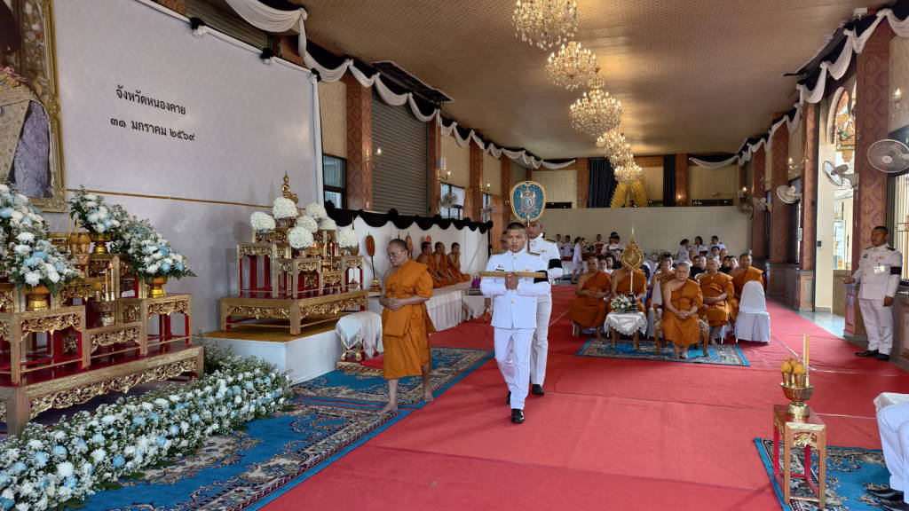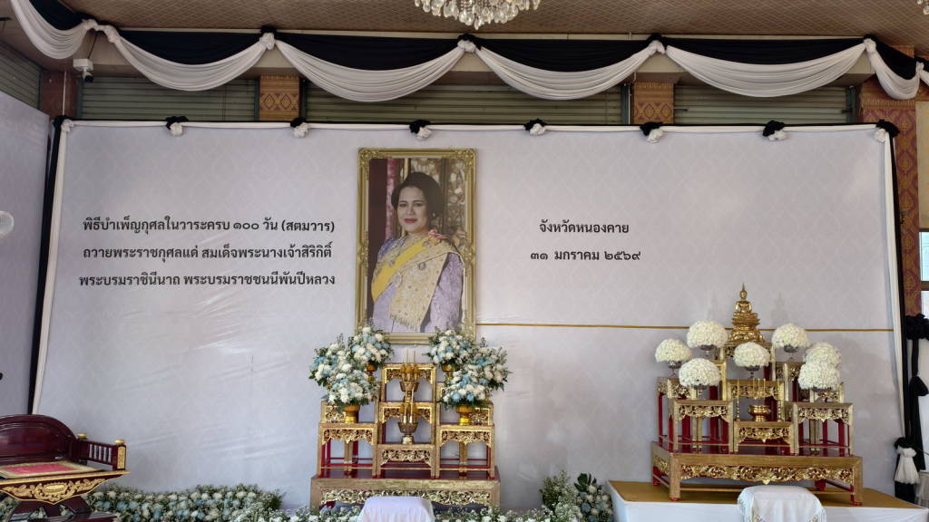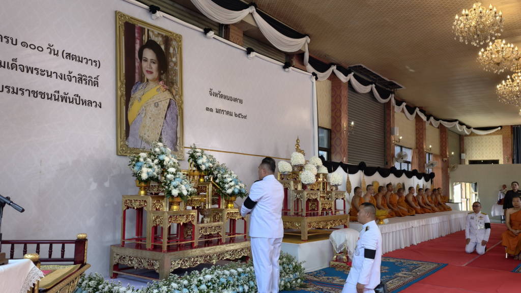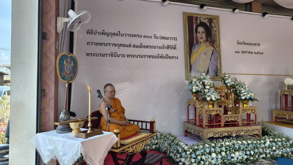 เมื่อเวลา 16.00 น.วันนี้ (31 ม.ค. 69) ณ พลับพลาหลวงพ่อพระใส วัดโพธิ์ชัย พระอารามหลวง อ.เมืองหนองคาย จ.หนองคาย จังหวัดหนองคาย ได้จัดให้มีพิธีบำเพ็ญกุศลสตมวาร 100 วัน เพื่ออุทิศถวายพระราชกุศลแด่ สมเด็จพระนางเจ้าสิริกิติ์ พระบรมราชินีนาถ พระบรมราชชนนีพันปีหลวง โดยมีนายศรัณย์ศักด์ ศรีเครือเนตร ผู้ว่าราชการจังหวัดหนองคาย เป็นประธานในพิธีฯ พระเทพวชิรคุณ เจ้าคณะจังหวัดหนองคาย / เจ้าอาวาสวัดโพธิ์ชัย เป็นประธานฝ่ายสงฆ์ มีพระศรีวชิรโมลี รองเจ้าคณะจังหวัดหนองคาย / เจ้าอาวาสวัดชัยพร แสดงพระธรรมเทศนา มีนางฤดีวรรณ ศรีเครือเนตร นายกเหล่ากาชาดจังหวัดหนองคาย , นายกิตติศักดิ์ ธีระวัฒนา รองผู้ว่าราชการจังหวัดหนองคาย , นายสุชาติ ทอนมณี ปลัดจังหวัดหนองคาย หัวหน้าส่วนราชการ อัยการ ศาล ทหาร ตำรวจ และพสกนิกรทุกหมู่เหล่าเข้าร่วมพิธีฯ อย่างพร้อมเพรียง
