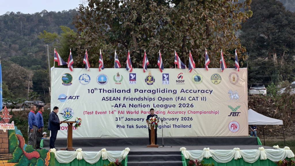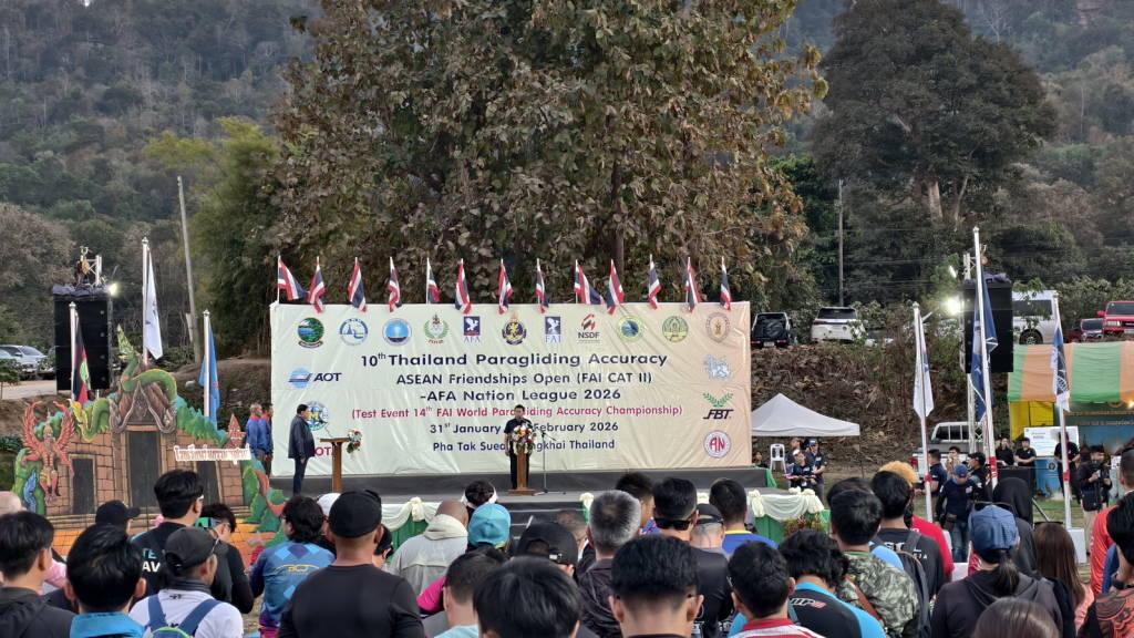 เมื่อ 18.00 น.วันนี้(1 กุมภาพันธ์ 2569) ที่บริเวณลานแลนด์ดิ่ง ตำบลผาตั้ง อ.สังคม จังหวัดหนองคาย นายกิตติศักดิ์ ธีระวัฒนา รองผู้ว่าราชการจังหวัดหนองคาย เป็นประธานในพิธีเปิดการแข่งขันร่มร่อนบินลงเป้าแม่นยำชิงแชมป์แห่งประเทศไทยและนานาชาติ สานสัมพันธ์อาเซียน ครั้งที่ 10 เอเอฟเอ เนชั่นลีก ประจำปี 2569 ที่สมาคมกีฬาทางอากาศและการบินแห่งประเทศไทย ในพระบรมราชูปถัมภ์ ร่วมกับจังหวัดหนองคาย จัดให้มีขึ้น ในระหว่างวันที่ 31 มกราคม – 4 กุมภาพันธ์ 2569