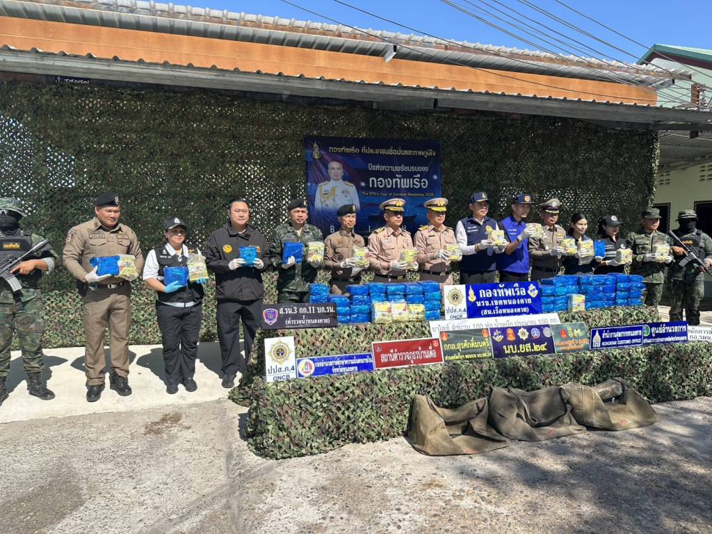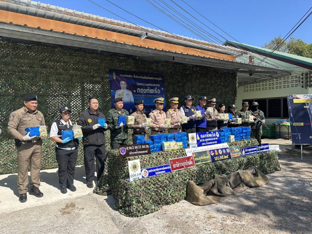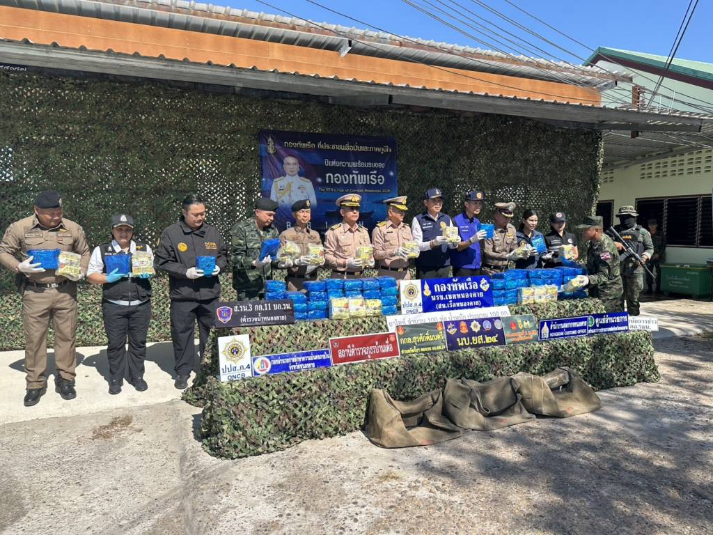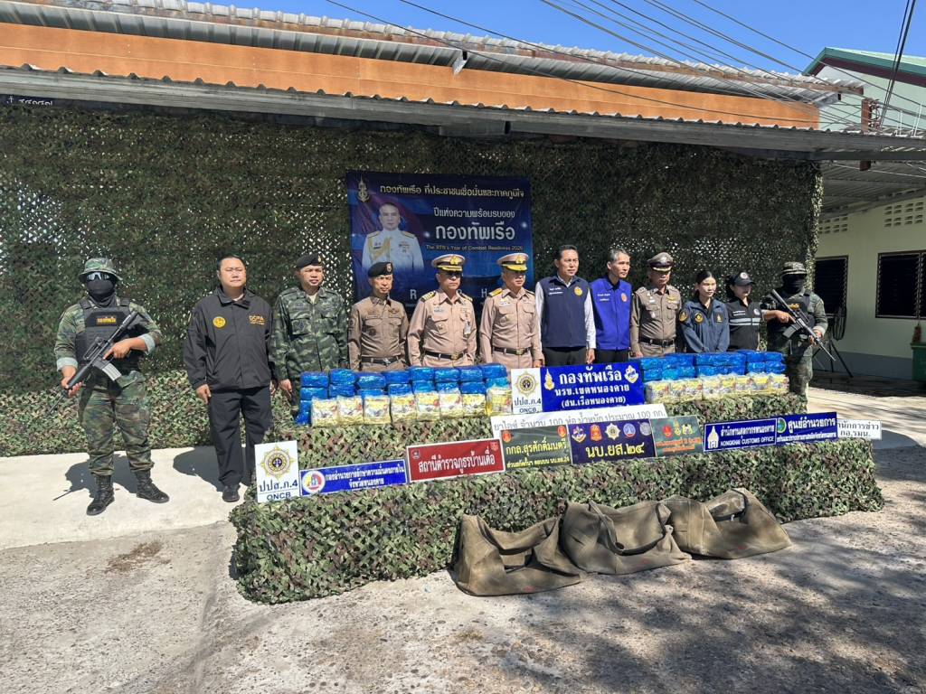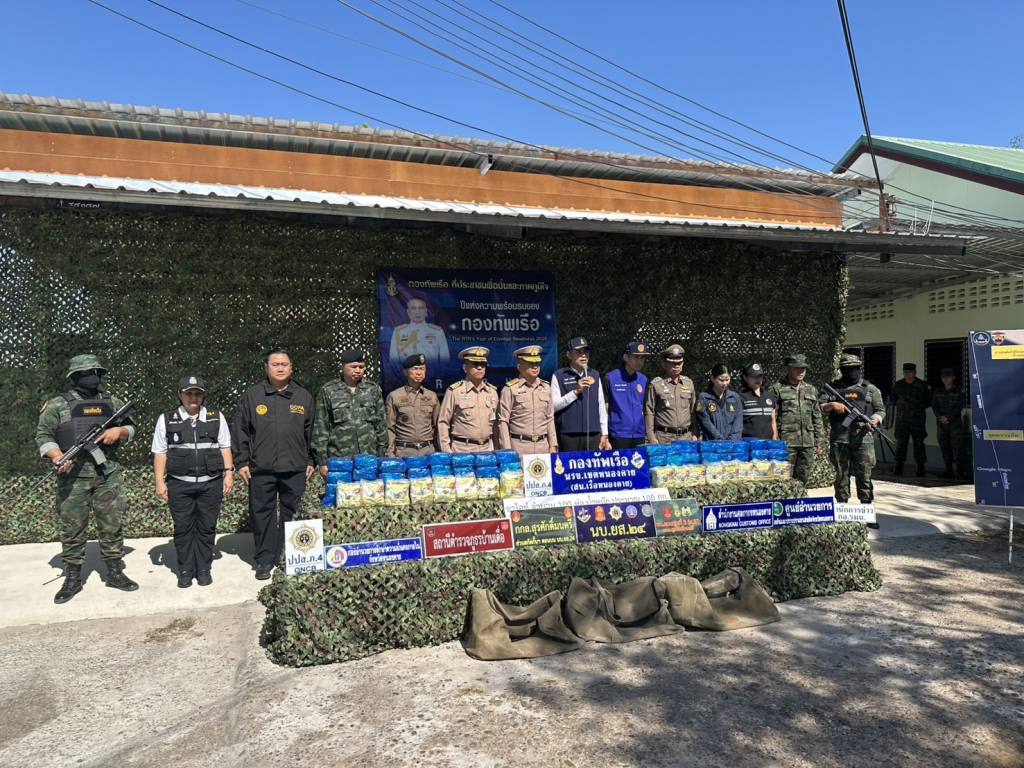 เมื่อเวลา 14.00 น.วันนี้ (3 ก.พ. 69) ที่สถานีหนองคาย อ.เมืองหนองคาย จ.หนองคาย นายไพฑูรย์ มหาชื่นใจ รองผู้ว่าราชการจังหวัดหนองคาย , พลเรือตรี ณรงค์ เอมดี ผบ.นรข. , น.อ.วิศิษฐ์พงศ์ เจริญวิชยเดช ผบ.นรข.เขตหนองคาย , น.ทอริยะ ทองมั่น หัวหน้าสถานีเรือหนองคาย , พ.ต.อ.ประภาพ ธิติศักดิ์ รอง ผบก.ภ.จว.หนองคาย , นายจักรพงศ์ พันธุ์เพ็ง นายอำเภอเมืองหนองคาย , พ.ต.อ.นวกฤต นวการพาณิชย์ ผกก.สภ.บ้านเดื่อ ,พ.ต.หญิง วิไลลักษณ์ มีชัยพิทักษ์สกุล แทน รอง ผอ.กอ.รมน.จังหวัดหนองคาย , ผู้แทนด่านศุลกากรหนองคาย , นายชัยสิทธิ์ คำภาจันทร์ หัวหน้าศูนย์อำนวยการป้องกันและปราบปรามยาเสพติดจังหวัดหนองคาย, ผู้แทน บก.ควบคุมที่ 2 กกล.สุรศักดิ์มนตรี พร้อมหน่วยงานที่เกี่ยวข้อง ได้ร่วมกันแถลงข่าวการตรวจยึดยาไอซ์ จำนวน 100 ห่อ น้ำหนักประมาณ 100 กก. ที่เจ้าหน้าที่ นรข.เขตหนองคาย (สถานีเรือหนองคาย) ร่วมกับหน่วยงานที่เกี่ยวข้องตรวจยึดได้ที่ริมฝั่งแม่น้ำโขง บริเวณบ้านหินโงม ต.หินโงม อ.เมืองหนองคาย จ.หนองคาย เมื่อเวลาประมาณ 21.00 น. วันที่ 1 กุมภาพันธ์ 2569 ที่ผ่านมา