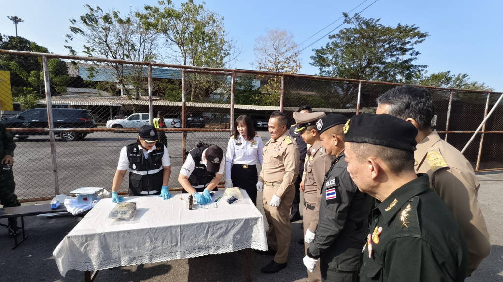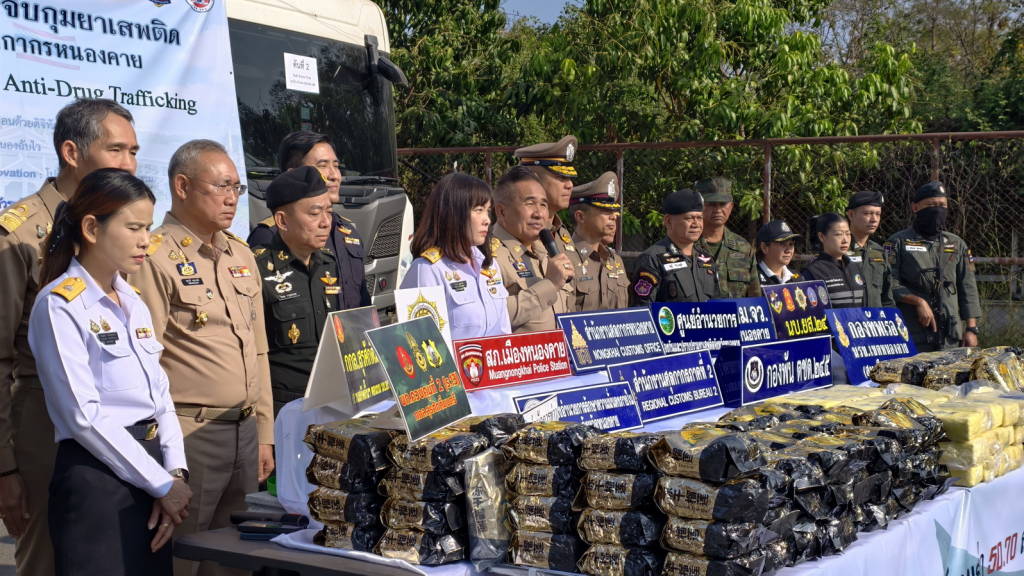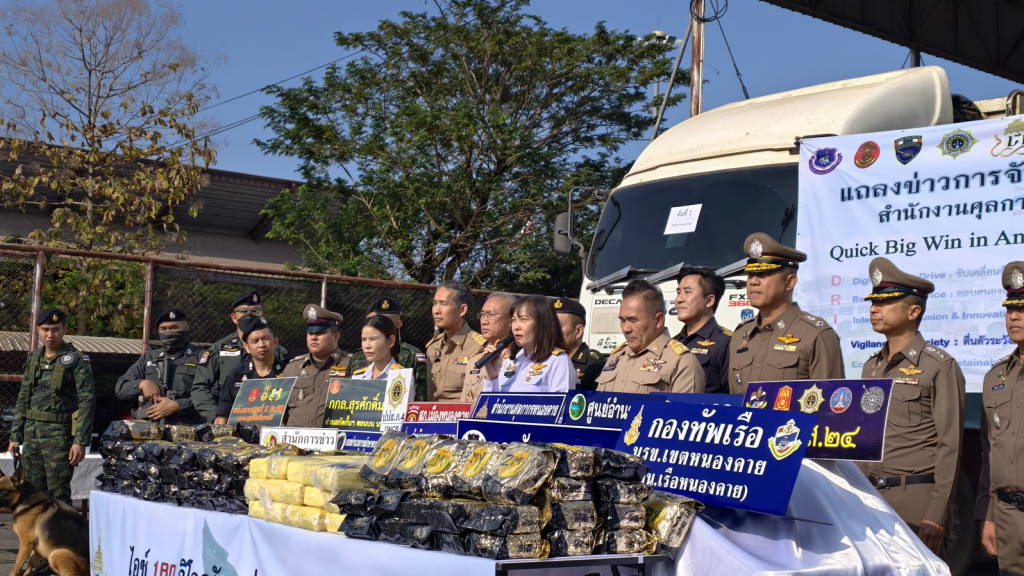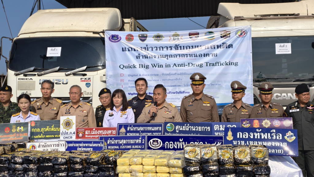 การจับกุมครั้งนี้เป็นการขยายผลจากคดีการจับกุมยาเสพติดก่อนหน้านี้ โดยแยกออกเป็น 2 เคส ๆ แรก เป็นการประสานงานและวางแผนร่วมกันระหว่างเจ้าหน้าที่ศุลกากรและตำรวจภูธรเมืองหนองคาย ในการเฝ้าระวังรถกลุ่มเป้าหมาย ในเวลาประมาณ 12.30 น. ของวันที่ 6 กุมภาพันธ์ 2569 ที่ผ่านมา ได้มีรถบรรทุก (ไม่มีสินค้า) กลุ่มเป้าหมายเข้ามาบริเวณสถานีตรวจรถบรรทุกสินค้าขาเข้า ด่านพรมแดนหนองคาย เจ้าหน้าที่ศุลกากรจึงเรียกตรวจรถคันดังกล่าวโดยละเอียดผลการตรวจค้น พบถุงสีทองรูปทุเรียน จำนวน 94 ห่อ น้ำหนักรวมประมาณ 94 กิโลกรัม ซุกซ่อนอยู่บริเวณช่องว่างด้านบนหัวรถบรรทุก เมื่อเปิดถุงสีทอ ดังกล่าว พบภายในบรรจุเกล็ดสีขาว จึงได้นำตัวอย่างทำการทดสอบด้วยน้ำยา พบมีส่วนผสมของยาเสพติดให้โทษประเภท 1 (ไอซ์)