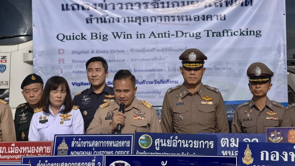 เจ้าหน้าที่ศุลกากรหนองคาย ร่วมกับหน่วยงานที่เกี่ยวข้อง จับกุมยาบ้าจำนวน 2 แสนเม็ด และไอซ์ 169 กิโลกรัม มูลค่ากว่า 70 ล้านบาท ที่ซุกซ่อนมาในรถบรรทุกสินค้าที่ข้ามกลับมาหลังจากไปส่งสินค้าที่ สปป.ลาว ได้ผู้ต้องหา 2 ราย ซึ่งเป็นการขยายผลจากการจับกุมคดียาเสพติด