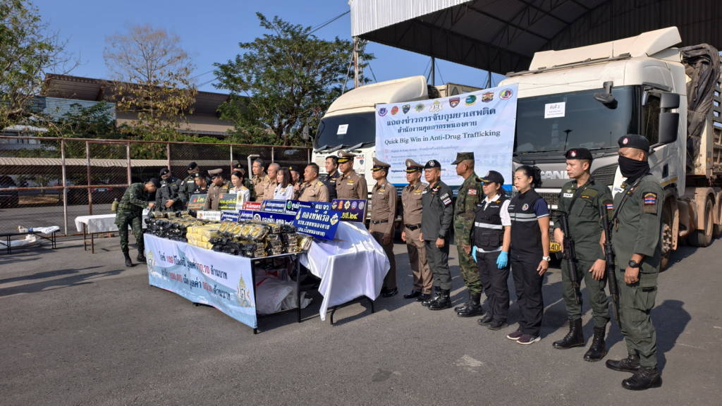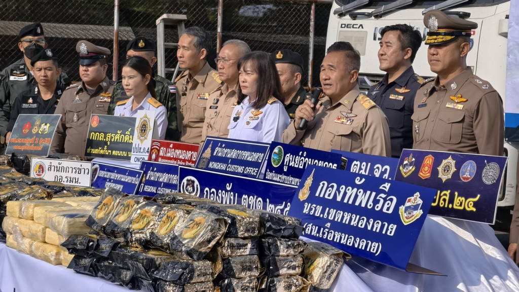 เมื่อเวลา 09.00 น.วันนี้ (9 ก.พ. 69) ที่ลานจอดรถด่านพรมแดนสะพานมิตรภาพไทย-ลาว แห่งที่ 1 จังหวัดหนองคาย หรือด่านพรมแดนหนองคาย นายศรัณย์ศักด์ ศรีเครือเนตร ผู้ว่าราชการจังหวัดหนองคาย , พล.ต.ต.อัทธชนม์ ช่วงงาม ผบก.ภ.จว.หนองคาย , นายสุชาติ ทอนมณี ปลัดจังหวัดหนองคาย , นางสาววรรณา ผู้อุตส่าห์ นายด่านศุลกากรหนองคาย ปฏิบัติหน้าที่ผู้อำนวยการสำนักงานศุลกากรหนองคาย ,พ.ต.อ.ประภาพ ธิติศักดิ์ รอง ผบก.ภ.จว.หนองคาย , พ.ต.อ.จิรวิทย์ ปานยิ้ม ผกก.สภ.เมืองหนองคาย , พ.อ.วีรเทพ การุณรอบดุล รอง ผอ.รมน.จังหวัดหนองคาย , พ.อ.อุดมการณ์ ศรีแขไตร รอง ผบ.บก.ควบคุมที่ 2 กกล.สุรศักดิ์มนตรี, นายจักรพงศ์ พันธุ์เพ็ง นายอำเภอเมืองหนองคาย , พ.ต.ท.ธียาฌพัตท์ รังสิพราหมณกุล รอง ผกก.ตม.จว.หนองคาย , นายชัยสิทธิ์ คำภาจันทร์ หัวหน้าศูนย์อำนวยการป้องกันและปราบปรามยาเสพติดจังหวัดหนองคาย , พ.ต.ท.ปฐวี ชำนาญดี รอง ผกก.ตชด.24/หน.กองพัน ตชด.245 , ร.อ.เศรฐชาติ วรรณอ่อน หัวหน้าสถานีเรือหนองคาย , นายพัฒนพงศ์ ตันติวัฒนกุลชัย หัวหน้าฝ่ายบริการศุลกากรที่ 1พร้อมหน่วยงานที่เกี่ยวข้อง ได้ร่วมกันแถลงข่าวการจับกุมนายสุรสิทธิ์ (ขอสงวนนามสกุล) อายุ 40 ปี ชาว ต.นางเวียง อ.ทรายมูล จ.ยโสธร และนายสมโชค (ขอสงวนนามสกุล) อายุ 40 ปี ชาว ต.จุมพล อ.โพนพิสัย จ.หนองคาย พร้อมยาบ้า จำนวน 2 แสนเม็ด ,ไอซ์ 169 ห่อ น้ำหนักประมาณ 169 กก. มูลค่ารวมกว่า 70 ล้านบาท พร้อมรถบรรทุกพ่วง 2 คัน ที่เจ้าหน้าที่ศุลกากรหนองคาย ร่วมกับหน่วยงานที่เกี่ยวข้อง จับกุมได้เมื่อเวลาประมาณ 12.30 น. และเวลา 12.45 น. วันที่ 6 กุมภาพันธ์ 2569 ที่ลานจอดรถด่านพรมแดนหนองคาย ฝั่งขาเข้าประเทศ