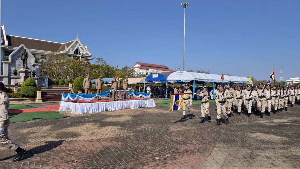 เมื่อช่วงเช้าวันนี้ (10 กุมภาพันธ์ 2569) ณ ลานพระบรมราชานุสาวรีย์ รัชกาลที่ 5 หน้าศาลากลางจังหวัดหนองคาย อ.เมืองหนองคาย จ.หนองคาย นายศรัณย์ศักด์ ศรีเครือเนตร ผู้ว่าราชการจังหวัดหนองคาย / ผู้บังคับการกองอาสารักษาดินแดนจังหวัดหนองคาย เป็นประธานในพิธีกระทำสัตย์ปฏิญาณตนต่อหน้าธงประจำกองอาสารักษาดินแดนจังหวัด ในโอกาสวันคล้ายวันสถาปนากองอาสารักษาดินแดน ครบรอบ 72 ปี โดยเริ่มจากประกอบพิธีสงฆ์ เสร็จจากพิธีสงฆ์ประธานในพิธีได้อ่านสารผู้บังคับบัญชากองอาสารักษาดินแดน และกล่าวมอบโววาทแก่ผู้บังคับบัญชา เจ้าหน้าที่ สมาชิกกองอาสารักษาดินแดน และนำประกอบพิธีกระทำสัตย์ปฏิญาณตนต่อธงประจำกองอาสารักษาดินแดนจังหวัดหนองคาย โดยประธานผู้บังคับบัญชา เจ้าหน้าที่ กำลังพลทั้งหมดร่วมกันกล่าวคำปฏิญาณตน จากนั้นกำลังพลทั้งหมดได้ร่วมกันเดินสวนสนาม