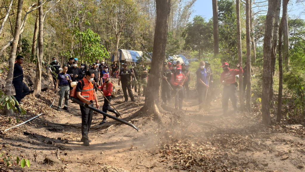 รองผู้ว่าราชการจังหวัดหนองคาย นำหน่วยงานที่เกี่ยวข้องจัดทำแนวกันไฟป่า ณ วัดภูพนังม่วง หมู่ที่ 8 ต.ด่านศรีสุข อ.โพธิ์ตาก จ.หนองคาย เพื่อแก้ไขปัญหาไฟป่าและหมอกควัน เพื่อเป็นการรณรงค์สร้างจิตสำนึกให้ประชาชนในจังหวัดหนองคาย ได้ตระหนักถึงอันตรายของไฟป่าและหมอกควัน