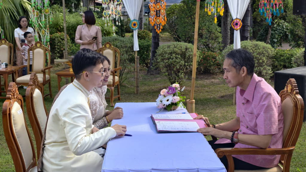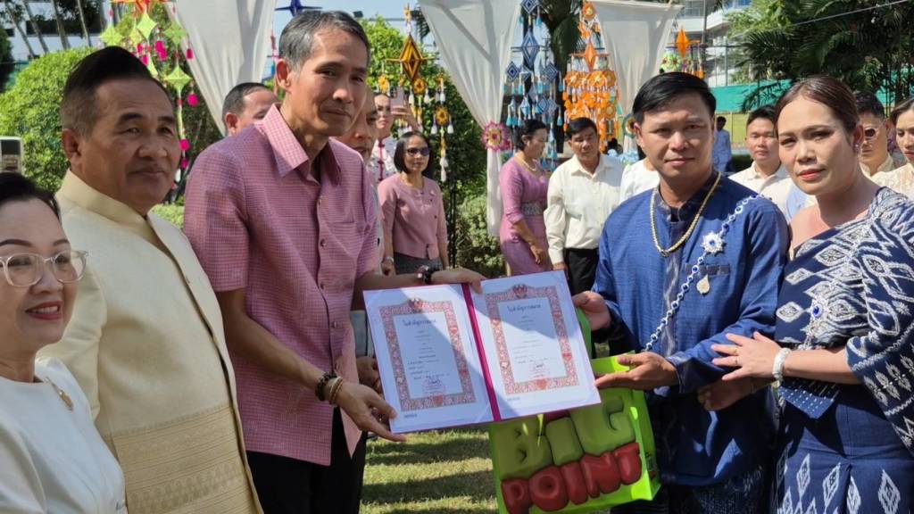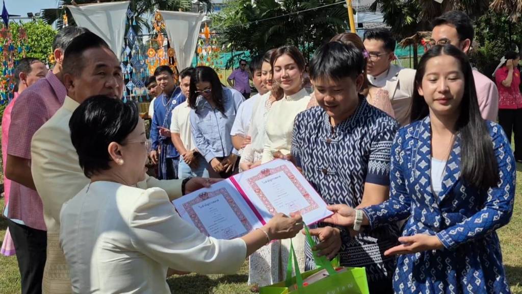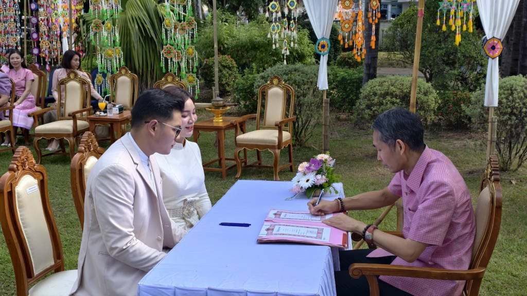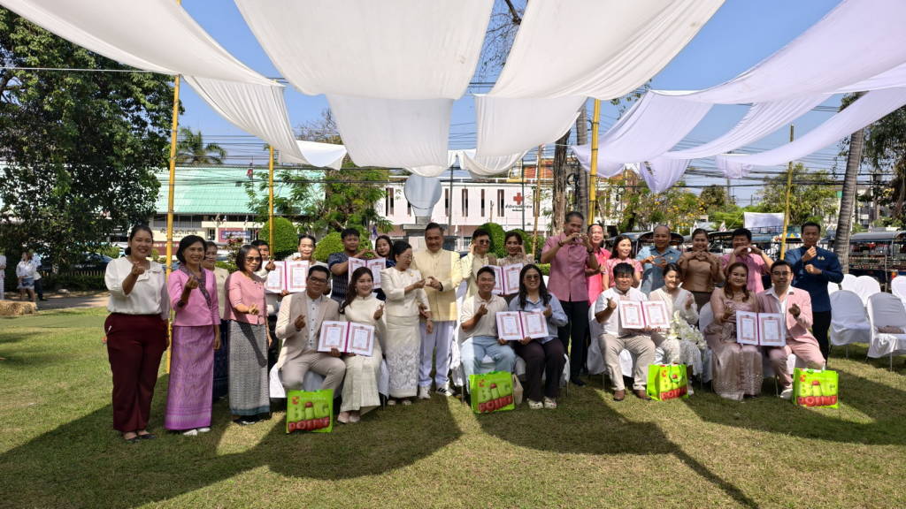 เมื่อเวลา 10.30 น.วันนี้ (14 ก.พ. 69) ณ จวนผู้ว่าราชการจังหวัดหนองคาย หลังเดิม ภายในเขตเทศบาลเมืองหนองคาย นายศรัณย์ศักด์ ศรีเครือเนตร ผู้ว่าราชการจังหวัดหนองคาย พร้อมด้วยนางฤดีวรรณ ศรีเครือเนตร นายกเหล่ากาชาดจังหวัดหนองคาย เป็นประธานในกิจกรรมจดทะเบียนสมรสวันแห่งความรัก (วันวาเลนไทน์) ตามโครงการส่งเสริมการท่องเที่ยว ภายใต้ชื่อ “ฮักนี้ ที่หนองคาย” ที่สำนักงานทะเบียนอำเภอเมืองหนองคาย ร่วมกับเทศบาลเมืองหนองคาย จัดให้มีขึ้น โดยมีนายจักรพงศ์ พันธุ์เพ็ง นายอำเภอเมืองหนองคาย เป็นนายทะเบียน และกล่าวรายงาน มีคู่รักที่เข้าร่วมกิจกรรม จำนวน 8 คู่