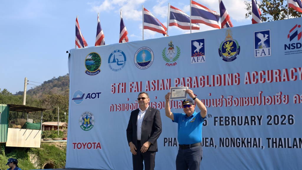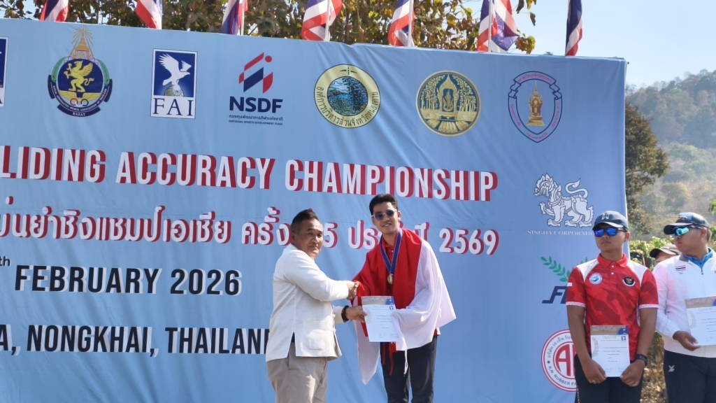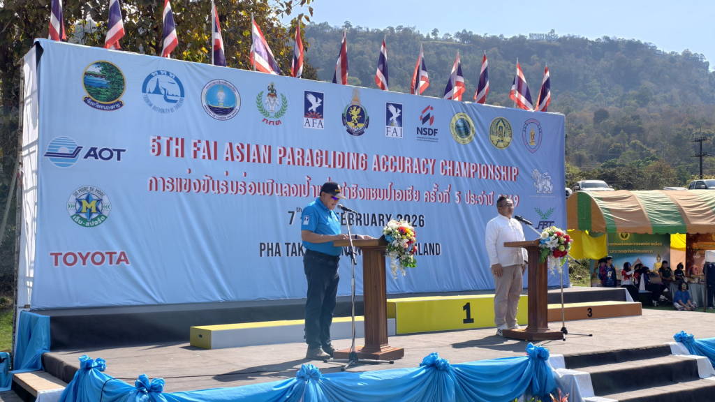 นาวาอากาศเอก วีระยุทธ ดิษยะศริน นายกสมาคมกีฬาทางอากาศและการบินแห่งประเทศไทย ในพระบรมราชูปถัมภ์ ในนามคณะกรรมการจัดการแข่งขันร่มร่อนบินลงเป้าแม่นยำชิงแชมป์เอเชีย ครั้งที่ 5 ประจำปี 2569 กล่าวว่าการแข่งขันครั้งนี้ประสบความสำเร็จเป็นอย่างยิ่ง มีนักกีฬาให้ความ สนใจเข้าร่วมการแข่งขันเป็นจำนวนมาก โดยมีนักกีฬาจาก 12 ประเทศเข้าร่วมแข่งขัน ประกอบด้วย มาเลเซีย มองโกเลีย เกาหลีใต้ อินโดนีเซีย อินเดีย จีน ไต้หวัน อิรัก โคโซโว ฮ่องกง ญี่ปุ่น และประเทศไทย จำนวน 97 คน เข้าร่วมแข่งขัน บัดนี้ การแข่งขันได้เสร็จสิ้นลงตามวัตถุประสงค์ของการจัดการแข่งขัน จึงได้จัดให้มีพิธีปิดฯและพิธีมอบรางวัลเพื่อเป็นเกียรติแก่นักกีฬาผู้ที่ชนะการแข่งขันฯ.