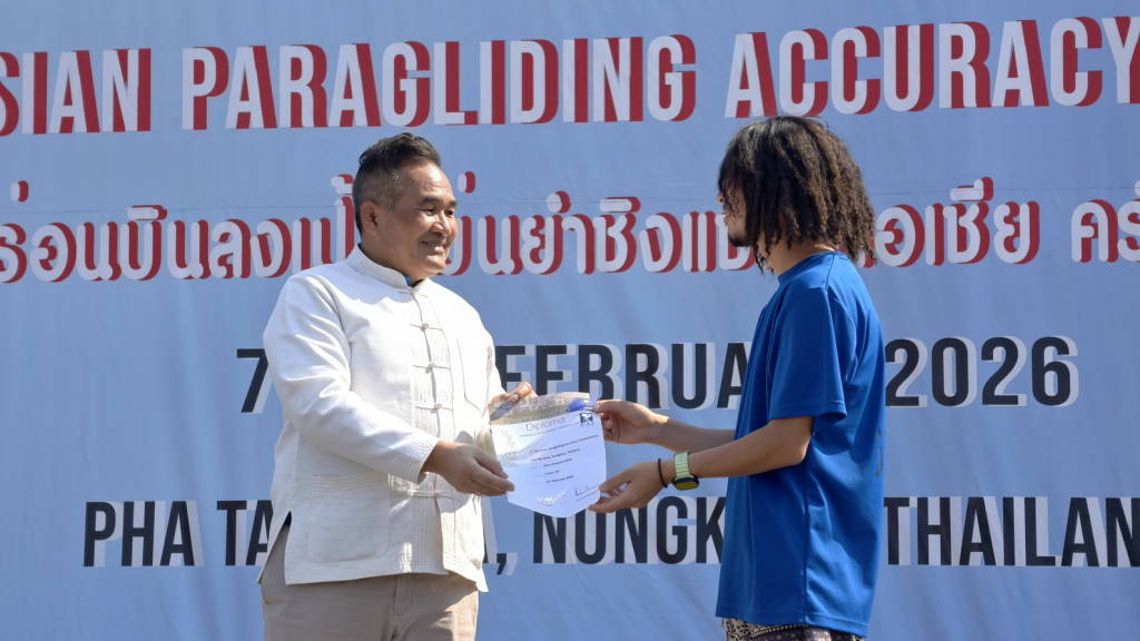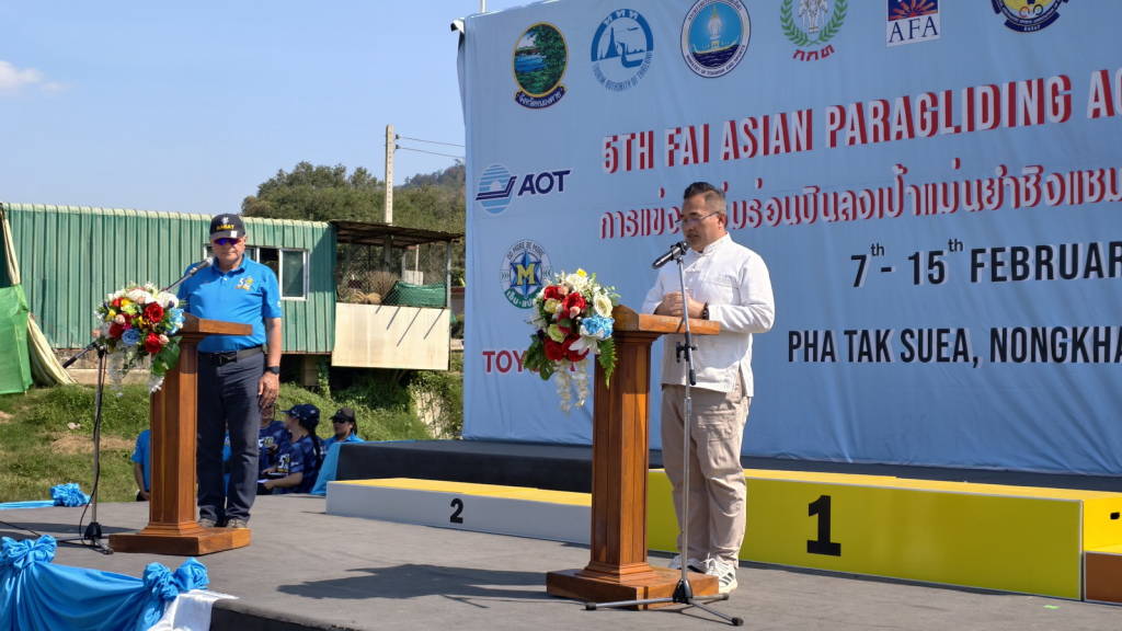 ผู้ว่าราชการจังหวัดหนองคาย เป็นประธานปิดการแข่งขันและมอบรางวัลการแข่งขันร่มร่อนบินลงเป้าแม่นยำชิงแชมป์เอเชีย ครั้งที่ 5 ประจำปี 2569 ที่จัดขึ้นในระหว่างวันที่ 7 – 15 กุมภาพันธ์ 2569 ณ สนามแข่งขันกีฬาทางอากาศชั่วคราวผาตากเสื้อ อำเภอสังคม จังหวัดหนองคาย มีนักกีฬาจาก 12 ประเทศเข้าร่วมแข่งขัน จำนวน 97 คน
