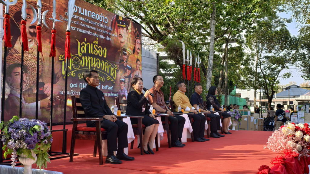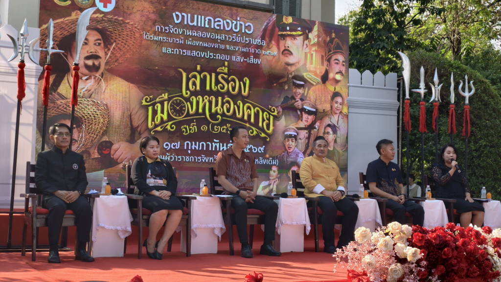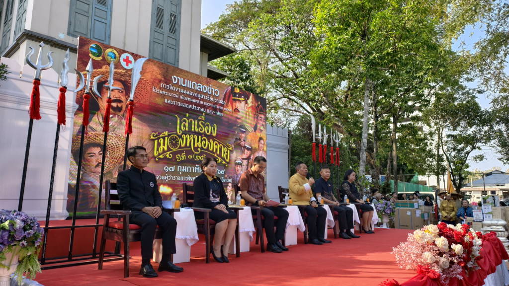 วันนี้ (17 ก.พ. 69) ที่จวนผู้ว่าราชการจังหวัดหนองคายหลังเดิม จังหวัดหนองคาย และ อบจ.หนองคาย ได้จัดให้มีการแถลงข่าว การจัดงาน “งานฉลองอนุสาวรีย์ปราบฮ่อ ใต้ร่มพระบารมี เมืองหนองคายและงานกาชาด พ.ศ.2569” โดยมี นายศรัณย์ศักด์ ศรีเครือเนตร ผู้ว่าราชการจังหวัดหนองคาย , นายวุฒิไกร ช่างเหล็ก นายก อบจ.หนองคาย , นายอรรถพร ภักดีสุจริต นายกเทศมนตรีเมืองหนองคาย , นางสาวสุภาพ นพเก้า ประชาสัมพันธ์จังหวัดหนองคาย , นพ.สุรพงษ์ ผดุงเวียง นายแพทย์สาธารณสุขจังหวัดหนองคาย และนางฐิตารีย์ อินทร์ตาแสง วัฒนธรรมจังหวัดหนองคาย เป็นผู้ร่วมแถลงข่าว