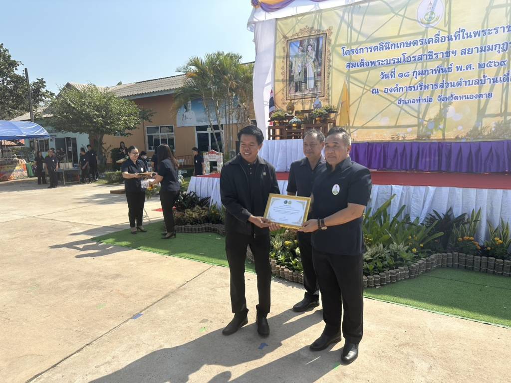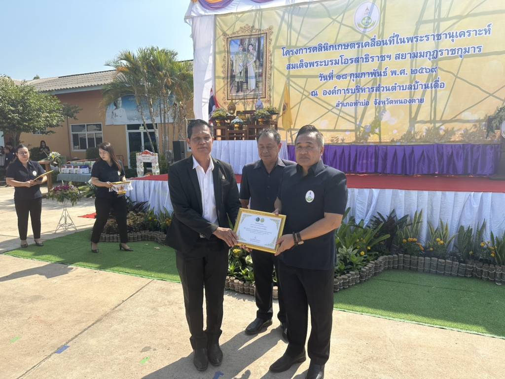 วันนี้ (18 ก.พ. 69) ที่ลาน อบต.บ้านเดื่อ ต.บ้านเดื่อ อ.ท่าบ่อ จ.หนองคาย นายศรัณย์ศักด์ ศรีเครือเนตร ผู้ว่าราชการจังหวัดหนองคาย เป็นประธานในพิธีเปิดโครงการคลินิกเกษตรเคลื่อนที่ในพระราชานุเคราะห์ สมเด็จพระบรมโอรสาธิราชฯ สยามมกุฎราชกุมาร ครั้งที่ 2/2569 ที่สำนักงานเกษตรจังหวัดหนองคาย ร่วมกับหน่วยงานในสังกัดกระทรวงเกษตรและสหกรณ์ในจังหวัดหนองคาย จัดให้มีขึ้น โดยมีนายสมควร ใจซื่อ นายอำเภอท่าบ่อ กล่าวต้อนรับ และนายคมกริช ศาลาน้อย เกษตรจังหวัดหนองคาย กล่าวรายงาน