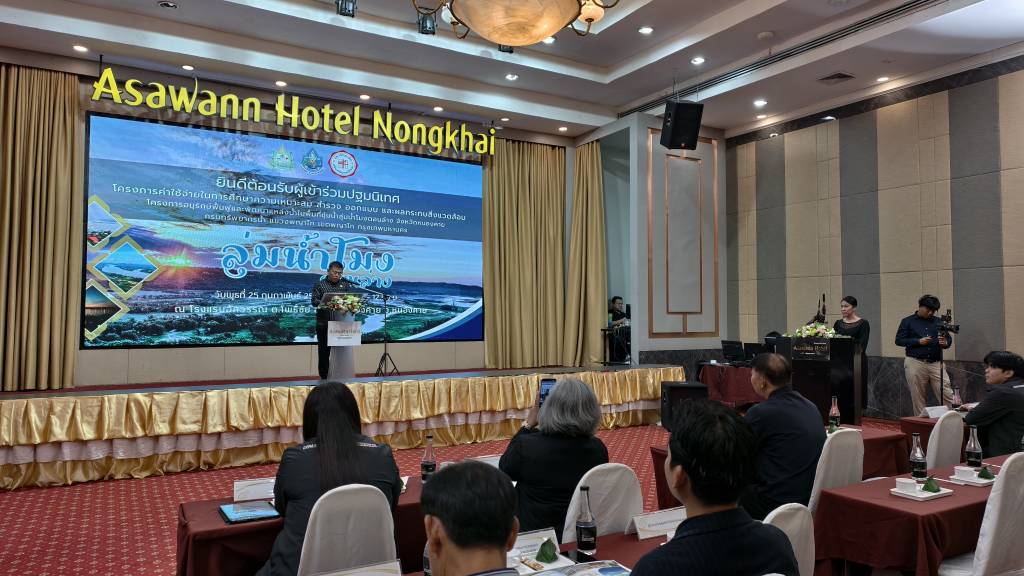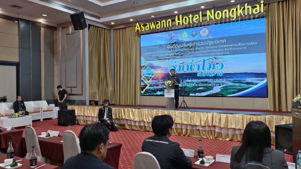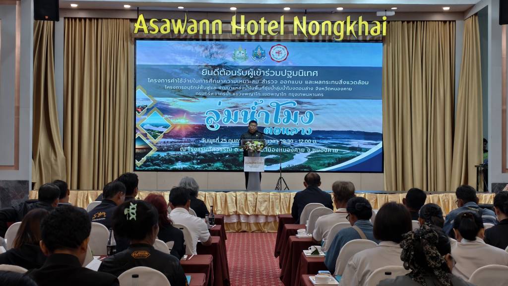 กรมทรัพยากรน้ำ จัดประชุมปฐมนิเทศโครงการค่าใช้จ่ายในการศึกษาความเหมาะสม สำรวจ ออกแบบ และผลกระทบ สิ่งแวดล้อมโครงการอนุรักษ์ฟื้นฟูและพัฒนาแหล่งน้ำ ในพื้นที่ชุ่มน้ำลุ่มน้ำโมงตอนล่าง จังหวัดหนองคาย เพื่อการนำเสนอความเป็นมาของโครงการฯ วัตถุประสงค์ ขอบเขตการศึกษา แนวคิดในการพัฒนาโครงการฯเบื้องต้น และข้อมูลที่สำคัญอื่น ๆ พร้อมทั้ง รับฟังความคิดเห็นและข้อเสนอแนะ เพื่อนำมาใช้ประกอบการศึกษาโครงการฯ