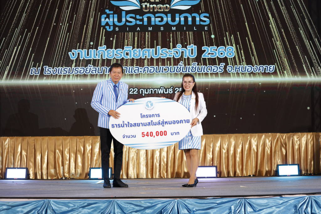 ในงาน ได้รับเกียรติจาก คุณชลัช ชัยวงค์คำ รองประธานกลุ่มบริษัทสยามสไมล์ เป็นประธานในพิธี พร้อมกล่าวแสดงความยินดีแก่ผู้ได้รับรางวัล ทั้งนี้ งานมอบรางวัลเกียรติยศภายใต้ ชื่อ “ปีแห่งการสร้างคุณค่า” ได้จัดขึ้นอย่างยิ่งใหญ่ เพื่อสร้างความภาคภูมิใจให้แก่ชาวสยามสไมล์ ลายฟ้า-ขาว ณ โรงแรมรอยัลนาคาราคอนเวนชั่นเซ็นเตอร์ หนองคาย ในวันที่ 22 กุมภาพันธ์ 2569 นี้