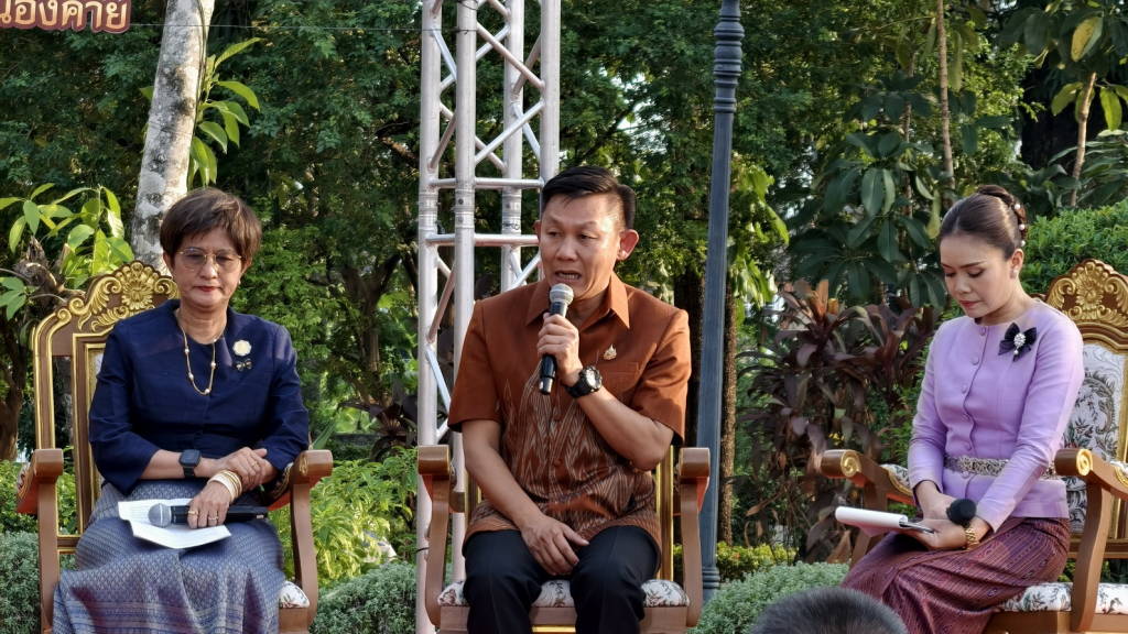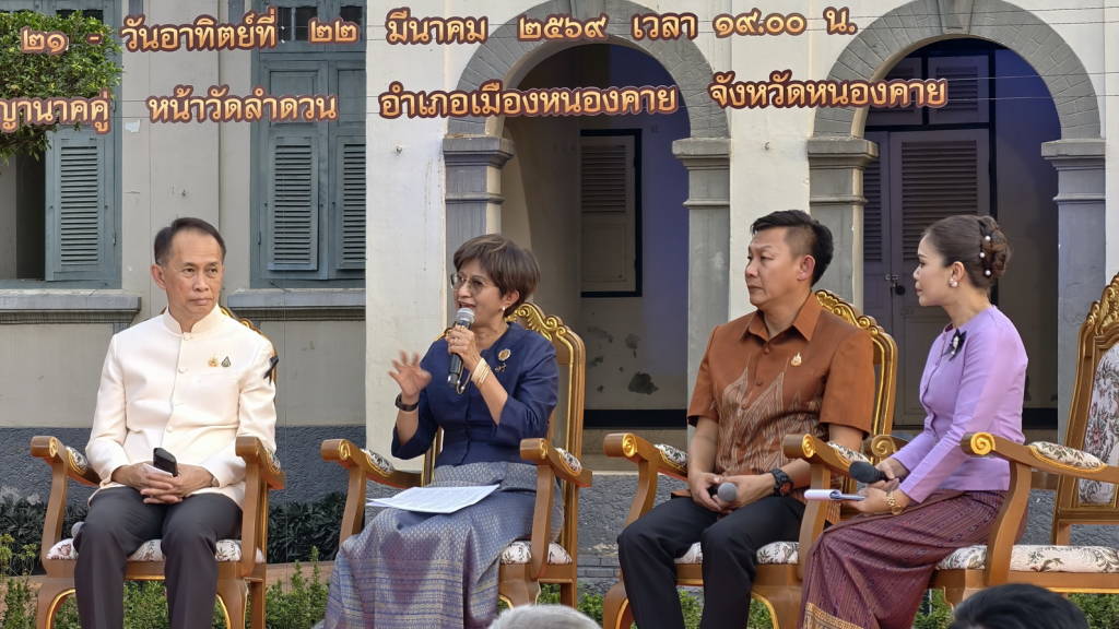 เมื่อช่วงเย็นวันที่ 2 มี.ค. 69 ณ จวนผู้ว่าราชการจังหวัดหนองคาย (หลังเดิม) ในเขตเทศบาลเมืองหนองคาย นายณัฐวัสส์ วิริยานภาภรณ์ ผู้ตรวจราชการกระทรวงมหาดไทย , นายศรัณย์ศักด์ ศรีเครือเนตร ผู้ว่าราชการจังหวัดหนองคาย , นายวุฒิไกร ช่างเหล็ก นายก อบจ.หนองคาย , นายวีระชัยโชค มงคลภูมิรัตน์ รองนายกเทศมนตรีเมืองหนองคาย และนางนฤมล ล้อมทอง กรรมการผู้จัดการโรงมหรสพหลวงศาลาเฉลิมกรุง ได้ร่วมกันแถลงข่าว การจัดแสดงโขนพระราชทาน จังหวัดหนองคาย ประจำปี 2569 ซึ่งจะเป็นการแสดงเรื่องรามเกียรติ์ ชุด หนุมานชาญกำแหง แสดงโดย คณะนักแสดงจากโรงมหรสพหลวงศาลาเฉลิมกรุง ที่จะจัดให้มีขึ้น ในระหว่างวันที่ 21 – 22 มีนาคม 2569 เวลา 19.00 น. ณ ลานวัฒนธรรมพญานาคคู่ หน้าวัดลำดวน ในเขตเทศบาลเมืองหนองคาย