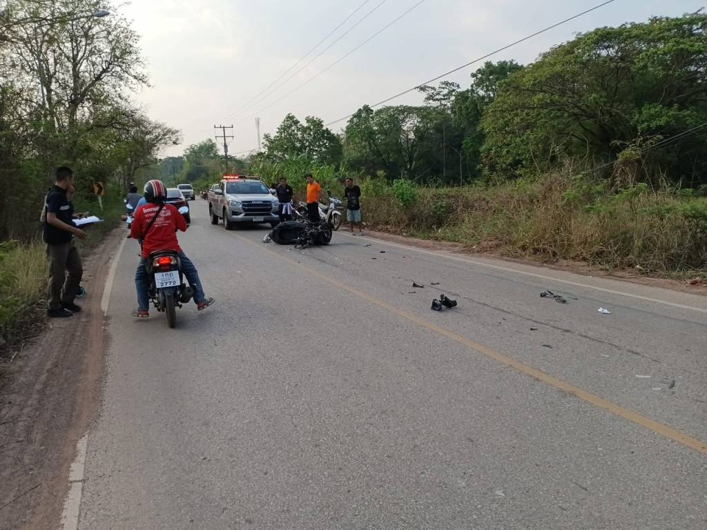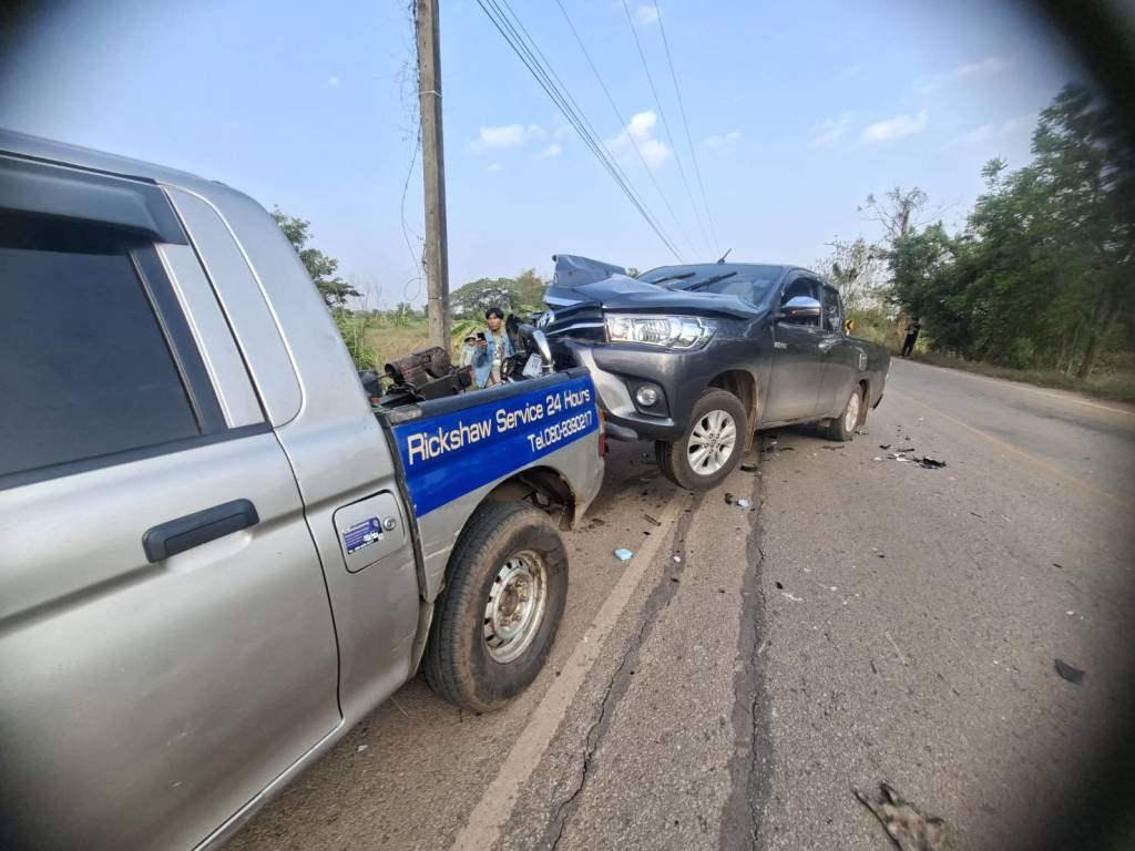 เมื่อเวลา 07.00 น. ร.ต.อ.ไพฑูรย์ ชั้นเสมา รองสารวัตร (สอบสวน) สภ.ท่าบ่อ จ.หนองคาย รับแจ้งเกิดอุบัติเหตุรถยนต์กระบะชนประสานงากับรถจักรยานยนต์ มีผู้ได้รับบาดเจ็บและเสียชีวิต บนถนนทางหลวงชนบท นค 4044 บริเวณบ้านทุ่ม หมู่ที่ 3 ต.น้ำโมง อ.ท่าบ่อ จ.หนองคาย จึงรายงานผู้บังคับบัญชาทราบ แล้วรุดไปตรวจสอบพร้อมแพทย์เวรโรงพยาบาลสมเด็จพระยุพราชท่าบ่อ และหน่วยกู้ภัยร่วมใจอำเภอท่าบ่อ