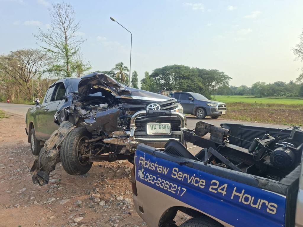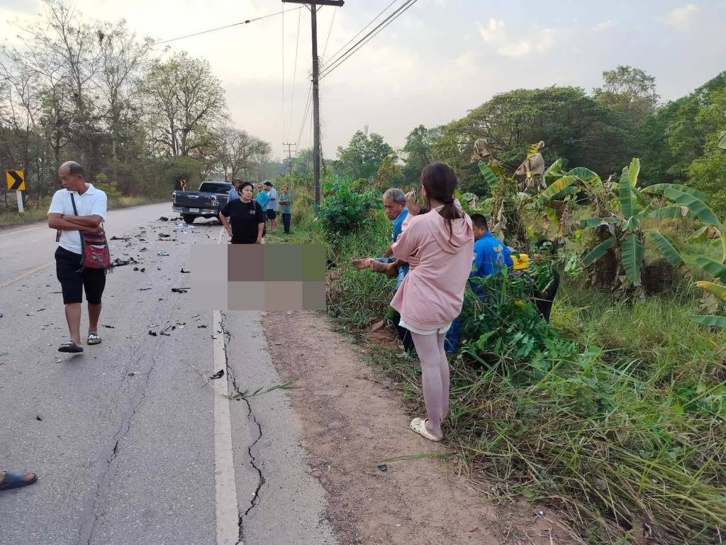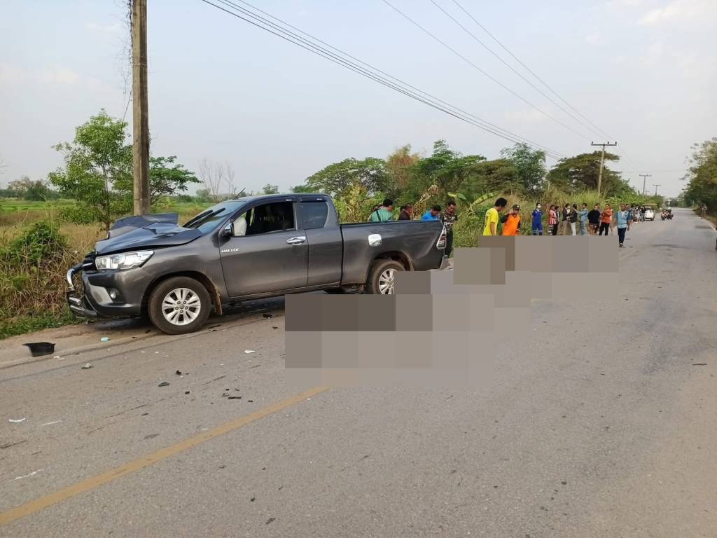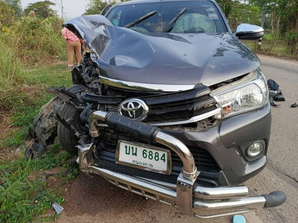 ที่เกิดเหตุพบรถยนต์กระบะยี่ห้อโตโยต้าไฮลัก แบบแค๊ป สีเทา ทะเบียน บน 6884 หนองคาย สภาพด้านหน้าฝั่งขวาพังเสียหาย โดยมีผู้ขับขี่ยืนรอพบเจ้าหน้าที่ในที่เกิดเหตุทราบชื่อ นางสาวภิมนิภา พันพิลา อายุ 35 ปี อยู่บ้านเลขที่ 20 หมู่ 5 ต.กองนาง อ.ท่าบ่อ จ.หนองคาย ห่างออกไปทางด้านหลังรถประมาณ 200 เมตร พบรถจักรยานยนต์ Honda Forza 350 หมายเลขทะเบียน 2กษ 343 อุดรธานี ล้มคว่ำอยู่สภาพรถพังยับเยิน โดยพบว่ารถจักรยานยนต์ขับขี่มาด้วยกัน 3 คน ทราบชื่อดังนี้