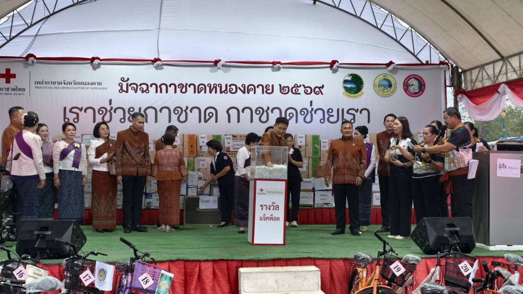ผู้ว่าราชการจังหวัดหนองคาย เป็นประธานในพิธีเปิดร้านมัจฉากาชาดในงานฉลองอนุสาวรีย์ปราบฮ่อ ใต้ร่มพระบารมี เมืองหนองคาย และงานกาชาด พ.ศ.2569 ที่จัดให้มีขึ้นเพื่อหารายได้สนับสนุนกิจกรรมสาธารณกุศล ตามภารกิจของเหล่ากาชาดจังหวัดหนองคาย ในการช่วยเหลือผู้ยากไร้ ผู้ด้อยโอกาส ผู้ประสบภัยพิบัติ