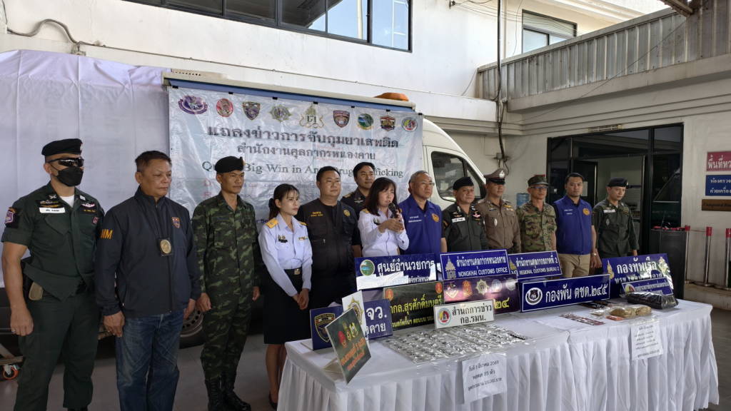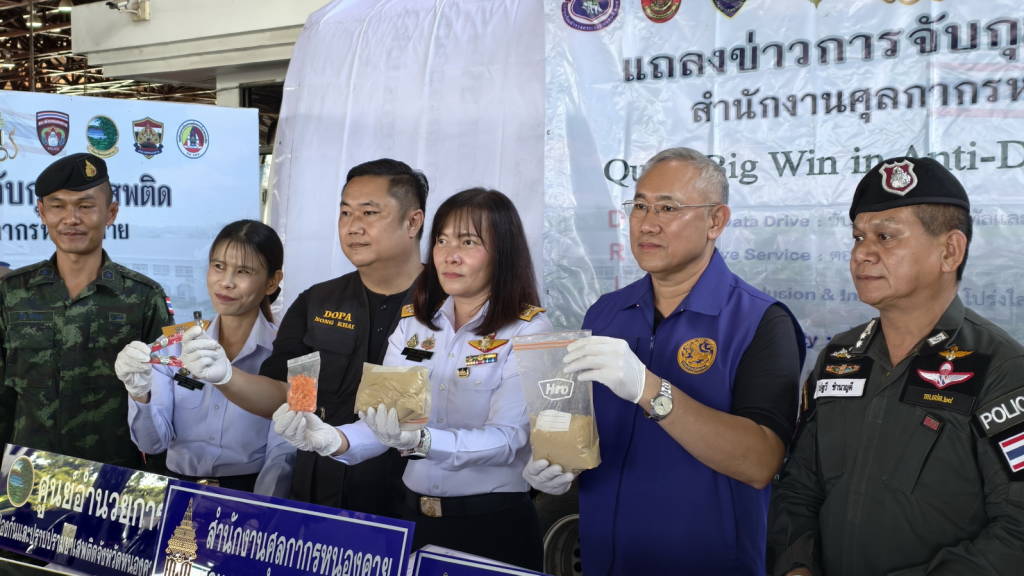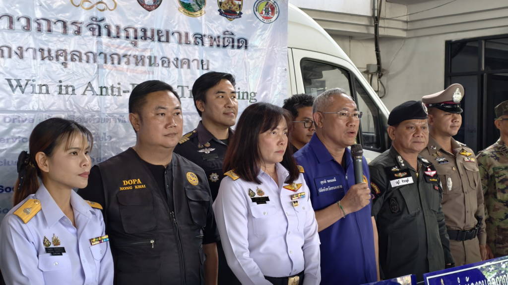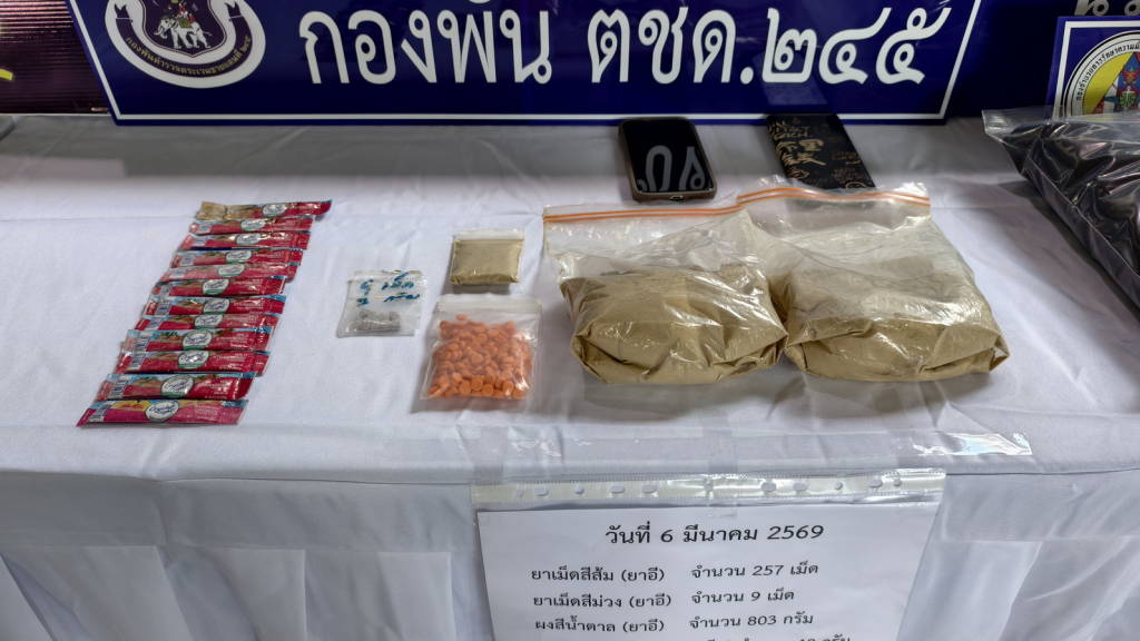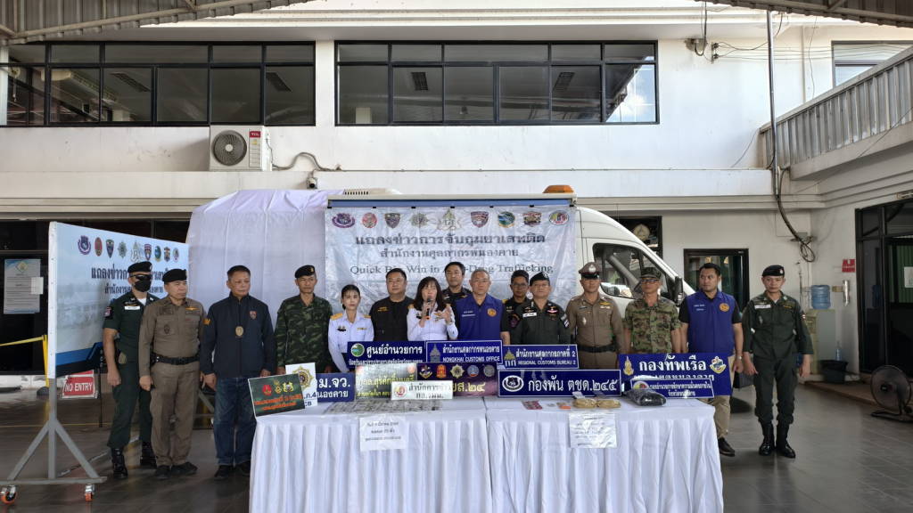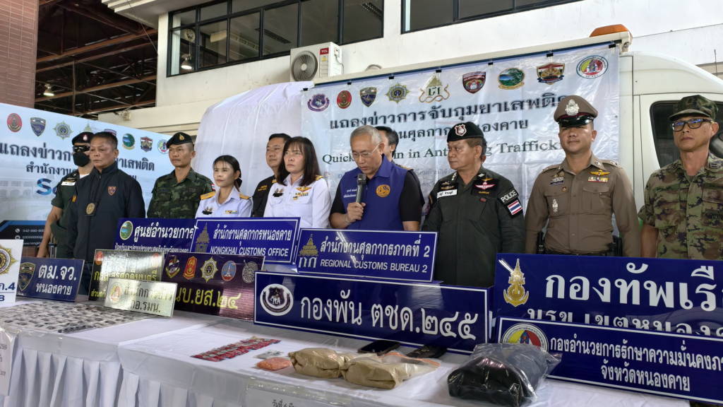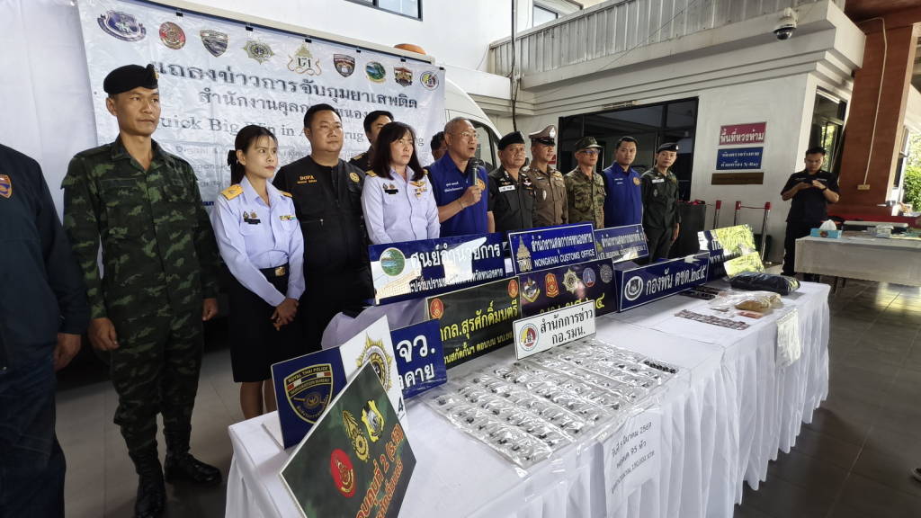 ส่วนอีกคดี เมื่อเวลาประมาณ 15.30 น. วันที่ 6 มีนาคม 2569 เจ้าหน้าที่ศุลกากรประจำด่านพรมแดนหนองคาย และเจ้าหน้าที่ฯ ฝ่ายสืบสวนและปราบปราม ร่วมกันตรวจสอบรถโดยสารระหว่างประเทศเวียงจันทน์ – อุดรธานี พบมีเสื้อคลุมสีดำที่มีลักษณะอาจมีของซุกซ่อนอยู่ภายใน วางอยู่บนที่นั่ง จึงได้สอบถามพนักงานขับรถโดยสารและผู้โดยสารที่นั่งอยู่บริเวณใกล้เคียง ทราบว่าเสื้อคลุมดังกล่าวเป็นของชายชาวจีน เจ้าหน้าที่จึงรออยู่จนกระทั่งพบชายชาวจีนคนดังกล่าวกลับมาที่นั่งและแสดงตนเป็นเจ้าของ จึงได้เชิญมาทำการตรวจสอบเสื้อคลุมดังกล่าวโดยละเอียด พบภายในเสื้อคลุมมียาอีลักษณะ เม็ดสีส้ม 257 เม็ด น้ำหนัก 54 กรัม , ยาอีลีกษณะ เม็ดสีม่วง 9 เม็ด น้ำหนัก 8 กรัม , แฮปปี้วอเตอร์ (Happy Water) จำนวน 12 ซอง น้ำหนัก 48 กรัม และผงสีน้ำตาล(ยาอี) 2 ถุงใหญ่ 1 ถุงเล็ก น้ำหนักรวม 803 กรัม ซุกซ่อนอยู่ รวมมูลค่าโดยประมาณ 5,018,600 บาท