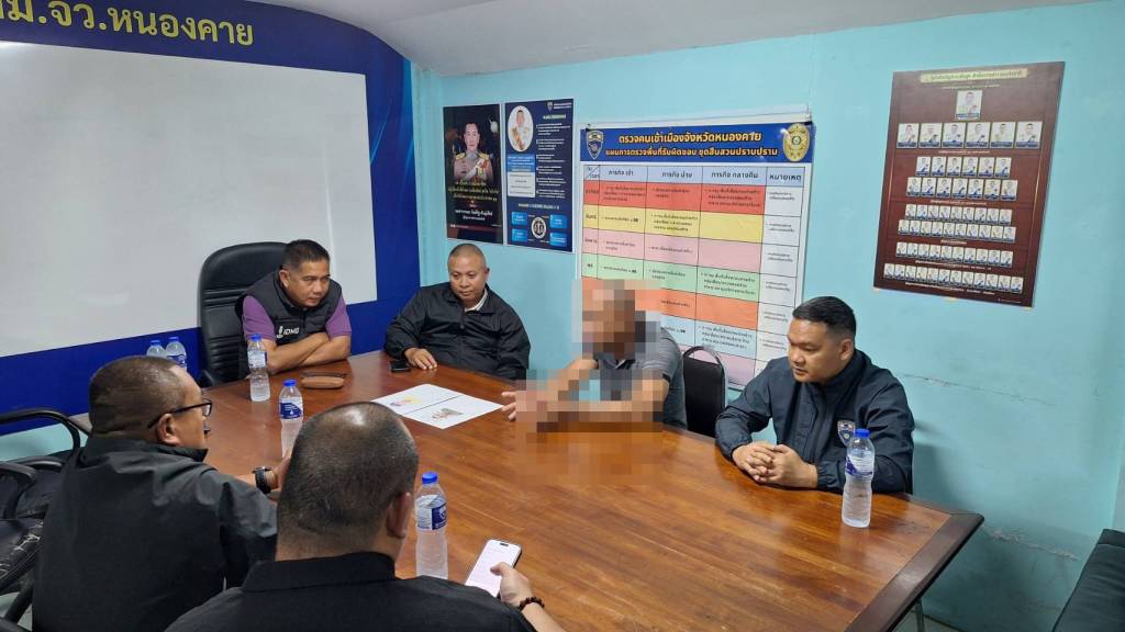 เมื่อเวลาประมาณ 13.30 น.วันนี้ (13 มี.ค. 69) ตม.หนองคาย ภายใต้การอำนวยการของ พล.ต.ต.ไพรัช พุกเจริญ ผบก.ตม.4, พ.ต.อ.นพดล รักชาติ ผกก.ตม.จว.หนองคาย, พ.ต.ท.ธียาฌพัตท์ รังสิพราหมณกุล รอง ผกก.ตม.จว.หนองคาย โดยการนำของ พ.ต.ท.อภิชาติ คลธา สว.ตม.จว.หนองคาย , พล.ต.ต.โชติวัฒน์ เหลืองวิลัย ผบก.สส.บช.น. พร้อมเจ้าหน้าที่ชุดสืบสวน ตม.หนองคาย , ชุดสืบสวนนครบาล และชุดสืบสวน กก.ภ.จว.หนองคาย ,เจ้าหน้าที่ ตชด.245 หนองคาย ได้เดินทางข้ามไปรับตัว ว่าที่ ร.ต.ภูเมธ เงินศรีชัย หรือ อาร์ท อายุ 48 ปี ตัวการฆ่าผู้จัดการหนุ่ม ผู้ต้องหาตามหมายจับ ศาลอาญา ที่ 1416/2569 ลงวันที่ 10 มีนาคม 2569 ข้อหา “เป็นผู้ใช้ให้ผู้อื่นกระทำความผิดและร่วมกันกระทำความผิดฐานฆ่าผู้อื่นโดยไตร่ตรองไว้ก่อน,ไม่มีเหตุอันสมควร ทำให้เสียหาย เคลื่อนย้าย ทำลาย ทำให้เสื่อมค่าหรือทำให้ไร้ประโยชน์ ซึ่งศพ ส่วนของศพ,ลอบฝัง ซ่อนเร้น ย้ายหรือทำลายศพหรือส่วนของศพเพื่อปิดบังการเกิด การตายหรือเหตุแห่งการตาย,อั่งยี่ ซ่องโจร,ข่มขืนใจผู้อื่นให้กระทำการใด ไม่กระทำการใดหรือจำยอมต่อสิ่งใด โดยทำให้กลัวว่าจะเกิดอันตรายต่อชีวิต ร่างกายเสรีภาพชื่อเสียงหรือทรัพย์สินของผู้ถูกข่มขืนใจนั้นเองหรือของผู้อื่น หรือโดยใช้กำลังประทุษร้ายจนผู้ถูกข่มขึ้นใจต้องกระทำการนั้นไม่กระทำการนั้นหรือจำยอมต่อสิ่งนั้น โดยร่วมกระทำวามผิดด้วยกันตั้งแต่ห้าคนขึ้นไป,หน่วงเหนี่ยวหรือ กักขังผู้อื่น หรือกระทำด้วยประการใดให้ผู้อื่นปราศจากเสรีภาพในร่างกาย,ปล้นทรัพย์เป็นเหตุให้ผู้อื่นถึงแก่ความตายโดยใช้ยานพาหนะเพื่อกระทำผิด หรือพาทรัพย์นั้นไป หรือเพื่อให้พ้นการจับกุม” โดยได้ทำการรับตัวกันที่ห้องประชุม ชั้น 2 ด่านพรมแดนสะพานมิตรภาพลาว-ไทย (ฝั่ง สปป.ลาว) มีเจ้าหน้าที่ฝ่ายความมั่นคงนครหลวงเวียงจันทน์ สปป.ลาว ควบคุมตัวมาส่งมอบให้ อีกทั้งยังได้ควบคุมตัวนายประดิษฐ มีดี อยู่บ้านเลขที่ 96 หมู่ 12 ต.พานพร้าว อ.ศรีเชียงใหม่ จ.หนองคาย ผู้ต้องหาคดียาเสพติด มาส่งมอบให้อีกหนึ่งคนด้วย ซึ่งนอกจากส่งตัวแล้วยังส่งมอบทรัพย์สินที่เป็นเงินสดไทย 50,000 บาท เงินสด สปป.ลาว 1 ล้านกีบ โทรศัพท์มือถือ และกระเป๋าเป้ ของนายอาร์ทให้คืนทั้งหมดอีกด้วย