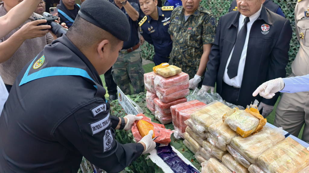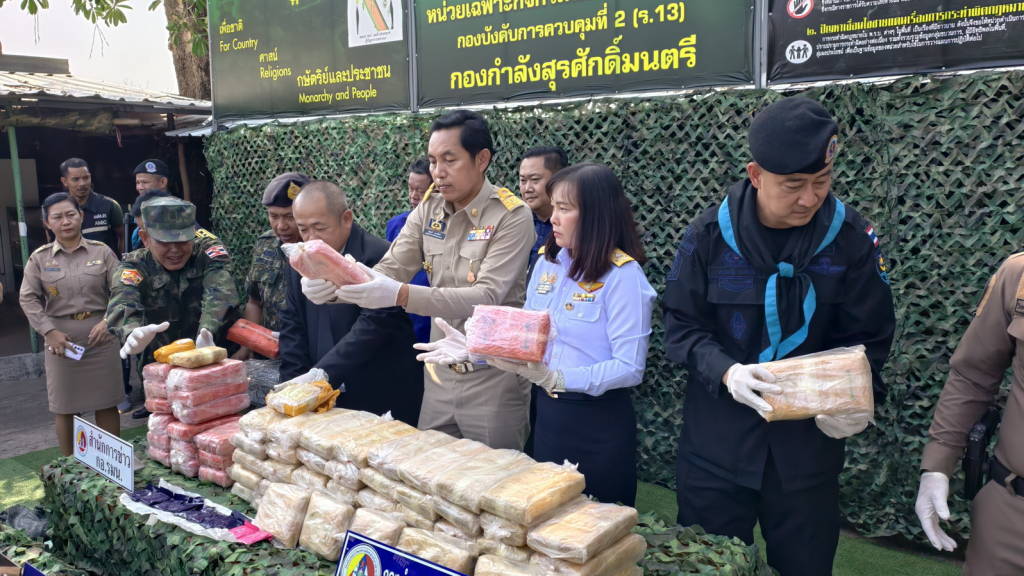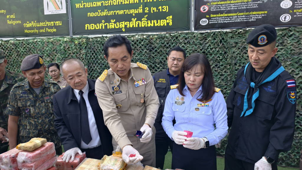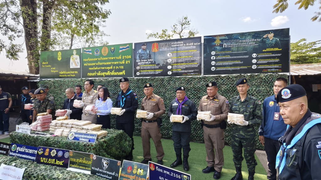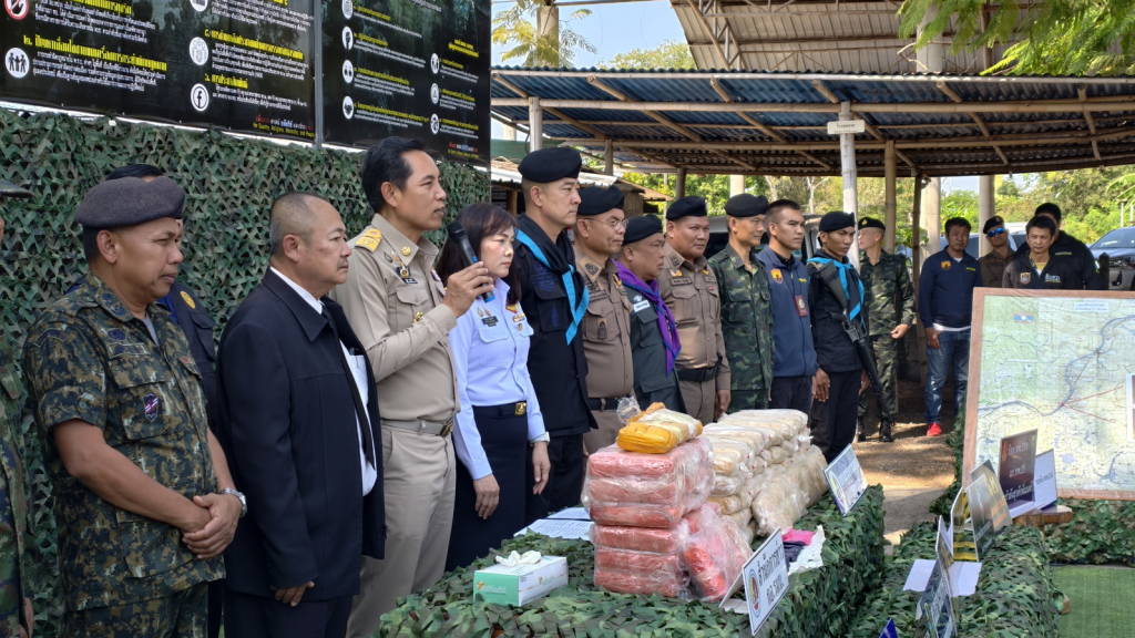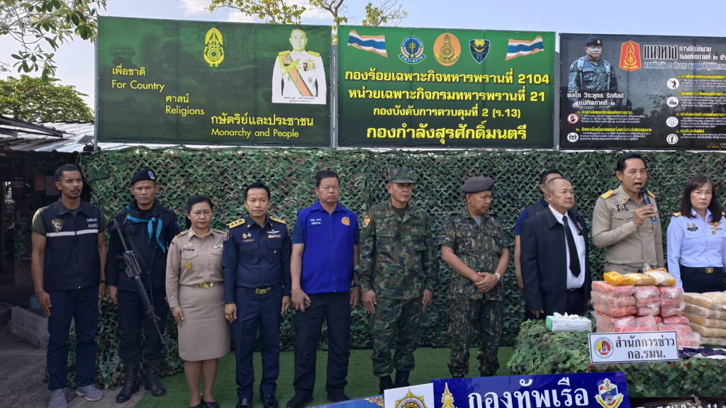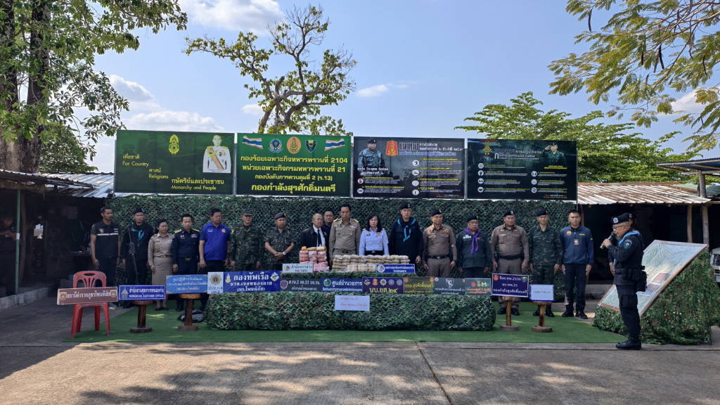เมื่อเวลาประมาณ 14.30 น. วันนี้ (16 มี.ค. 69) ที่กองร้อยเฉพาะกิจทหารพรานที่ 2104 บ้านวัดหลวง ต.วัดหลวง อ.โพนพิสัย จ.หนองคาย นายไพฑูรย์ มหาชื่นใจ รองผู้ว่าราชการจังหวัดหนองคาย ,พ.อ.ศรณณัฐ นวนมณี ผบ.ฉก.ทพ.21 ,พ.ต.วิทยา สิงห์อร ผู้บังคับกองร้อยเฉพาะกิจทหารพรานที่ 2104 หน่วยเฉพาะกิจทหารพรานที่ 21 , นางสาววรรณา ผู้อุตส่าห์ นายด่านศุลกากรหนองคาย ปฏิบัติหน้าที่ ผอ.ศุลกากรหนองคาย , นายมนตรี จารุธำรงนายอำเภอโพนพิสัย , พ.ต.อ.วิทยากรณ์ ษมากรวิทิต ผกก.สภ.โพนพิสัย , ร.ต.ไชโย หรพูน ผู้แทน บก.ควบคุมที่ 2 (ร.13) กกล.สุรศักดิ์มนตรี พร้อมหน่วยงานที่เกี่ยวข้อง ได้ร่วมกันแถลงข่าวการตรวจยึดยาบ้า จำนวน 4.22 แสนเม็ด ที่เจ้าหน้าที่ กองร้อยเฉพาะกิจทหารพรานที่ 2104 หน่วยเฉพาะกิจทหารพรานที่ 21 พร้อมหน่วยงานที่เกี่ยวข้อง ร่วมกันตรวจยึดและจับกุมได้ที่ ริมฝั่งแม่น้ำโขงพื้นที่บ้านถิ่นดุง ซอย 3 หมู่ 10 ต.วัดหลวง อ.โพนพิสัย จ.หนองคาย เมื่อเวลาประมาณ 05.00 น.วันนี้ (16 มี.ค. 69)