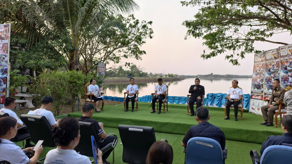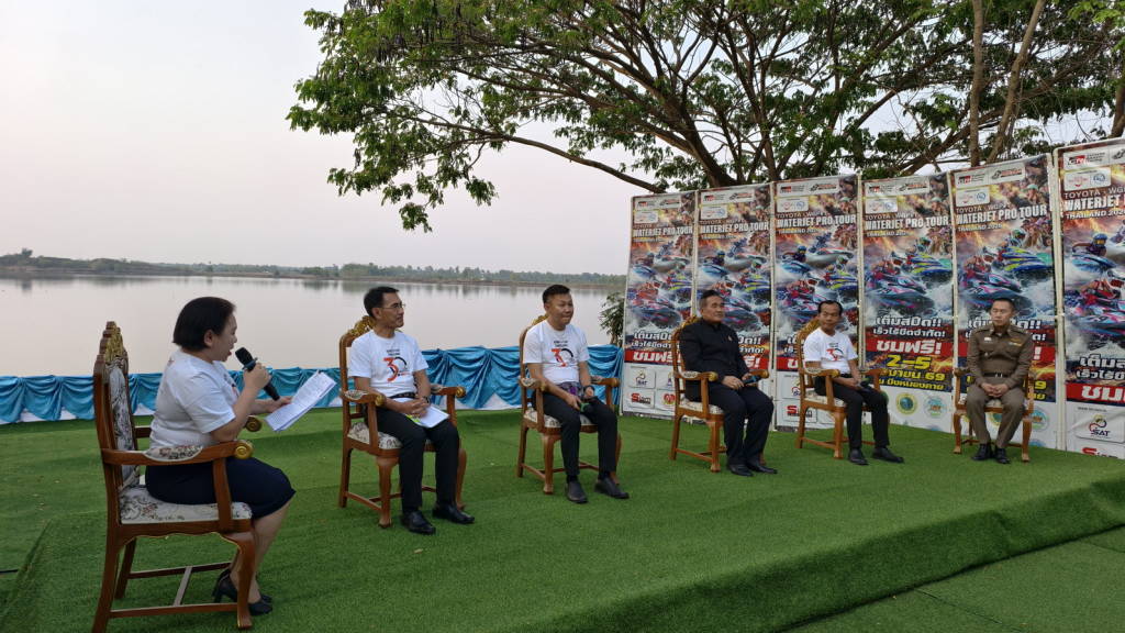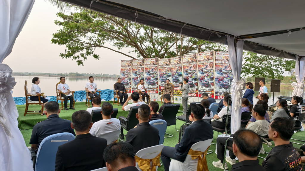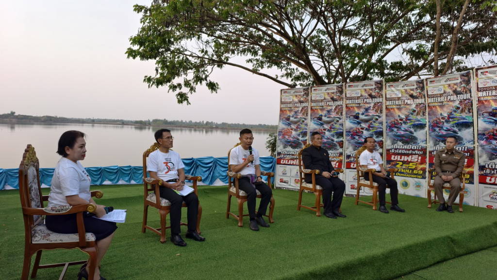 เมื่อช่วงเย็นวันนี้ (27 มี.ค. 69) ที่ริมบึงหนองคาย ต.วัดธาตุ อ.เมืองหนองคาย จ.หนองคาย นายศรัณย์ศักด์ ศรีเครือเนตร ผู้ว่าราชการจังหวัดหนองคาย , นายไพฑูรย์ มหาชื่นใจ รองผู้ว่าราชการจังหวัดหนองคาย ,นายวุฒิไกร ช่างเหล็ก นายก อบจ.หนองคาย , นายปราโมทย์ สุขสวัสดิ์ นายกเทศมนตรีตำบลวัดธาตุ , นายสายัณห์ มัครมย์ ผู้อำนวยการสำนักงานการกีฬาแห่งประเทศไทยจังหวัดหนองคาย ,นพ.สุรพงษ์ ผดุงเวียง นายแพทย์สาธารณสุขจังหวัดหนองคาย , พ.ต.ท.วรเชษฐ แสวง รองผู้กำกับการ (สอบสวน) สถานีตำรวจภูธรเมืองหนองคาย และนางสาวสุภาพ นพเก้า ประชาสัมพันธ์จังหวัดหนองคาย ได้ร่วมแถลงข่าวการจัดการแข่งขันกีฬาเจ็ตสกีชิงแชมป์ประเทศไทย สนามที่ 1 ประจำปี 2569 “เพื่อส่งเสริมการท่องเที่ยวจังหวัดหนองคาย” ที่จะทำการแข่งขันที่บึงหนองคาย เทศบาลตำบลวัดธาตุ อ.เมืองหนองคาย จ.หนองคาย ในระหว่างวันที่ 2 - 5 เมษายน 2569