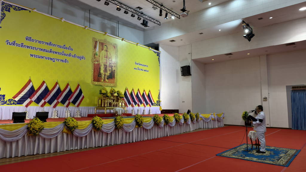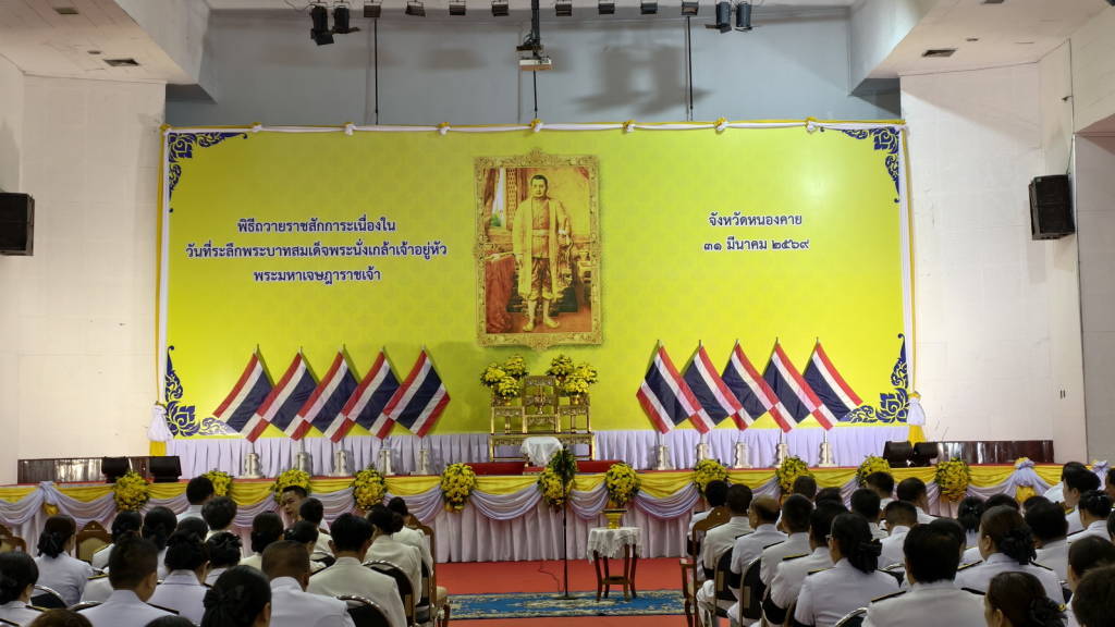 ผู้ว่าราชการจังหวัดหนองคาย นำข้าราชการ และพสกนิกรทุกหมู่เหล่าในจังหวัดหนองคาย ประกอบพิธีวางพานพุ่มดอกไม้และถวายราชสดุดีเนื่องใน “วันที่ระลึกพระบาทสมเด็จพระนั่งเกล้าเจ้าอยู่หัว พระมหาเจษฎาราชเจ้า” ประจำปีพุทธศักราช 2569
