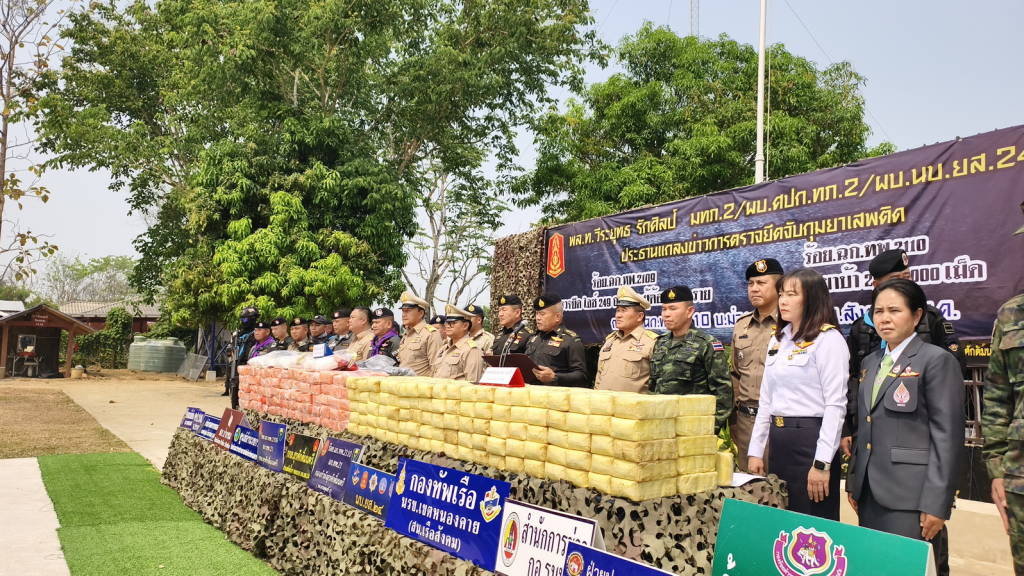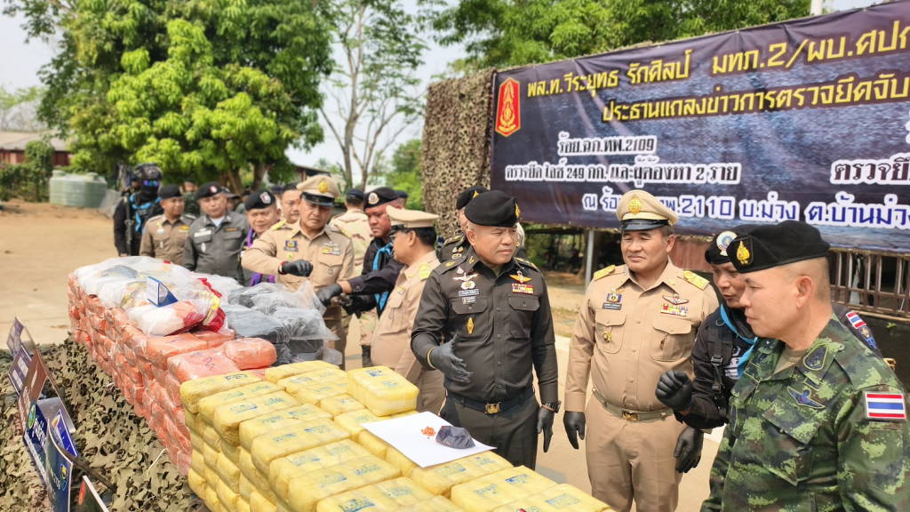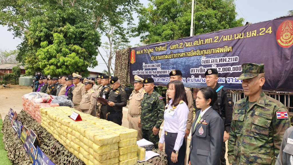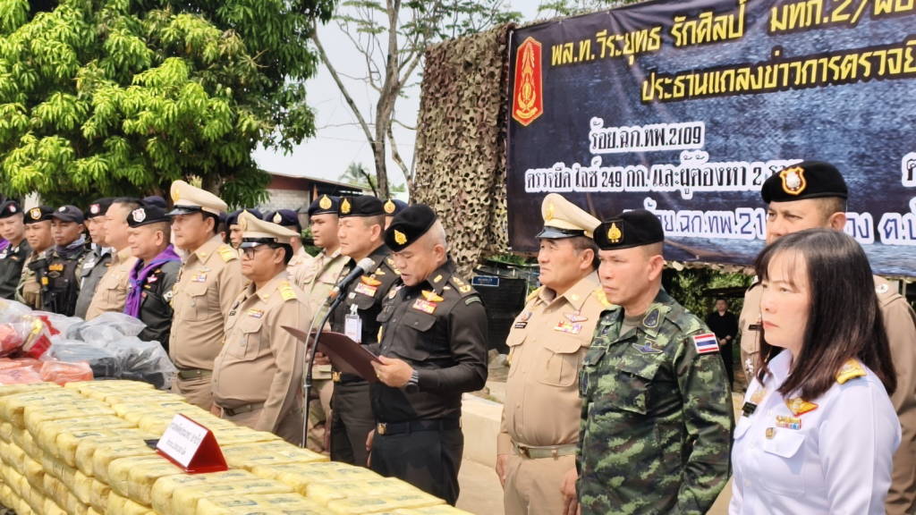 เมื่อช่วงบ่ายวันนี้ (1 เม.ย. 69) กองร้อยเฉพาะกิจทหารพรานที่ 2110 หน่วยเฉพาะกิจทหารพรานที่ 21 ต.บ้านม่วง อ.สังคม จ.หนองคาย พลโท วีระยุทธ รักศิลป์ แม่ทัพภาคที่ 2 (ประธาน) , นายศรัณย์ศักด์ ศรีเครือเนตร ผู้ว่าราชการจังหวัดหนองคาย , พล.ต.มงคล หอทอง ผบ.กกล.สุรศักดิ์มนตรี , พันเอก ศรณณัฐ นวลมณี ผู้บังคับการหน่วยเฉพาะกิจกรมทหารพรานที่ 21 , ร.อ.ยุทธณา สีไชย์ ผู้บังคับกองร้อยเฉพาะกิจทหารพรานที่ 2110 หน่วยเฉพาะกิจทหารพรานที่ 21 , นายนวน โทบุตร นายอำเภอสังคม , พ.ต.ท. ปฐวี ชำนาญดี รอง ผกก.ตชด.24/หน.กองพัน ตชด.245 , นายชัยสิทธิ์ คำภาจันทร์ หัวหน้าศูนย์อำนวยการป้องกันและปราบปรามยาเสพติด , นายสุชิน จันทร์ปาน นายอำเภอปากชม , พ.อ.เรวัฒ ธรรมจิรเดช เสนาธิการกองกำลังสุรศักดิ์มนตรี , ร.อ.ไพรสน พลเสน หัวหน้าสถานีเรือสังคม ,พ.ต.อ.อดุลย์ ศรีทอง ผกก.สภ.สังคม ,พ.ต.ท.วริษฐ์พล วัฒนสุขชัย สว.สส.สภ.สังคม , นางสาววรรณา ผู้อุตส่าห์ นายด่านศุลกากรหนองคาย ปฏิบัติหน้าที่ ผอ.ศุลกากรหนองคาย , ร.ต.ไชโย หรพูน ผู้แทน พ.อ.ชูชาติ นนทบุตร ผบ.บก.ควบคุมที่ 2 พร้อมหน่วยงานที่เกี่ยวข้อง ร่วมกันแถลงข่าวการตรวจยึดและจับกุมยาเสพติดจำนวน 2 คดี