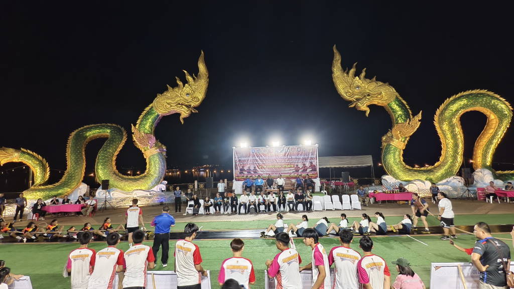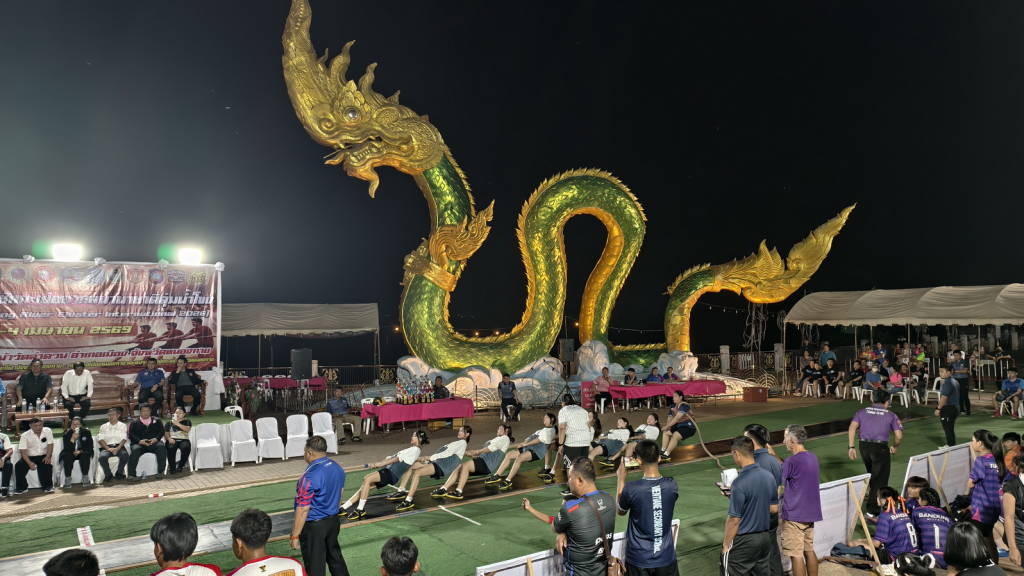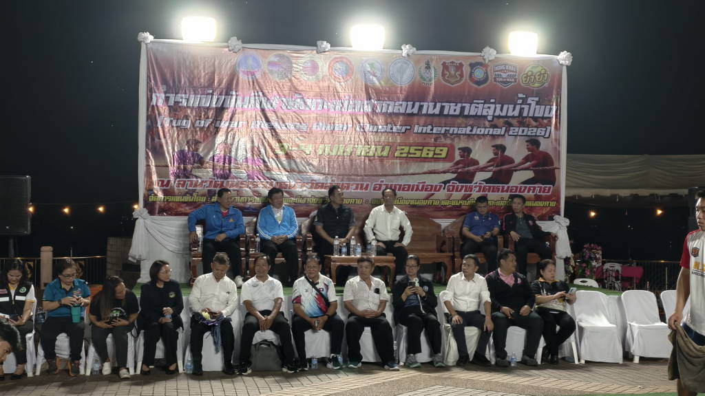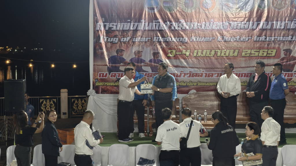 เมื่อช่วงค่ำวันนี้ (3 เม.ย. 69) ณ ลานวัฒนธรรมพญานาคคู่ ริมฝั่งแม่น้ำโขงหน้าวัดลำดวน ในเขตเทศบาลเมืองหนองคาย นายศรัณย์ศักด์ ศรีเครือเนตร ผู้ว่าราชการจังหวัดหนองคาย เป็นประธานในพิธีเปิดการแข่งขันกีฬาชักกะเย่อนานาชาติลุ่มน้ำโขง ที่จังหวัดหนองคาย ร่วมกับสมาพันธ์ชักกะเย่อแห่งอาเซียน สมาคมกีฬาชักกะเย่อแห่งประเทศไทย ชมรมกีฬาชักกะเย่อจังหวัดหนองคาย และหน่วยงานที่เกี่ยวข้องจัดให้มีขึ้น ในระหว่างวันที่ 3 – 4 เมษายน 2569