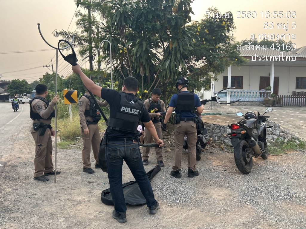 วันนี้ (7 เม.ย. 69) พ.ต.อ.อดุลย์ ศรีทอง ผกก.สภ.สังคม เปิดเผยผลการปฏิบัติงานของเจ้าหน้าที่ตำรวจ สภ.สังคม เมื่อวันที่ 5 เมษายน 2569 เวลา 18.30 น. นำโดย พ.ต.ท.วีระเดช เจริญสุข รอง.ผกก.ป.สภ.สังคม ,พ.ต.ท.สุริยันต์ ศรีธร สวป.สภ.สังคม ร.ต.ต.สงคราม สิทธิชัย รอง สว. (สส.) สภ.สังคม พร้อมเจ้าหน้าที่ตำรวจ สภ.สังคม โดยการอำนวยการของ พล.ต.ท.สันติ ชัยนิรามัย ผบช.ภ.4 ,พล.ต.ต.อัทธชนม์ ช่วงงาม ผบก.ภ.จว.หนองคาย ได้รับแจ้งจากศูนย์วิทยุ สภ.สังคม เหตุมีบุคคลเสพยาบ้าคลุ้มคลั่ง อาละวาด ใช้อาวุธมีดข่มขู่มารดา ที่บริเวณบ้านเลขที่ 105 หมู่ 5 บ้านสังกะลี ตำบลแก้งไก่ อำเภอสังคม จังหวัดหนองคาย ภายหลังรับแจ้งจึงนำกำลังพร้อมอุปกรณ์เข้าตรวจสอบในทันที