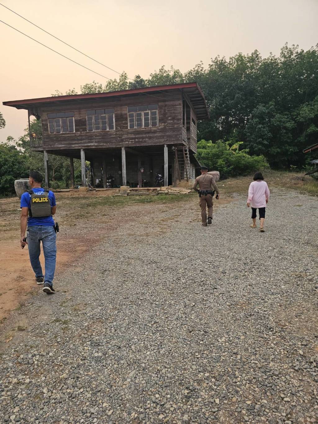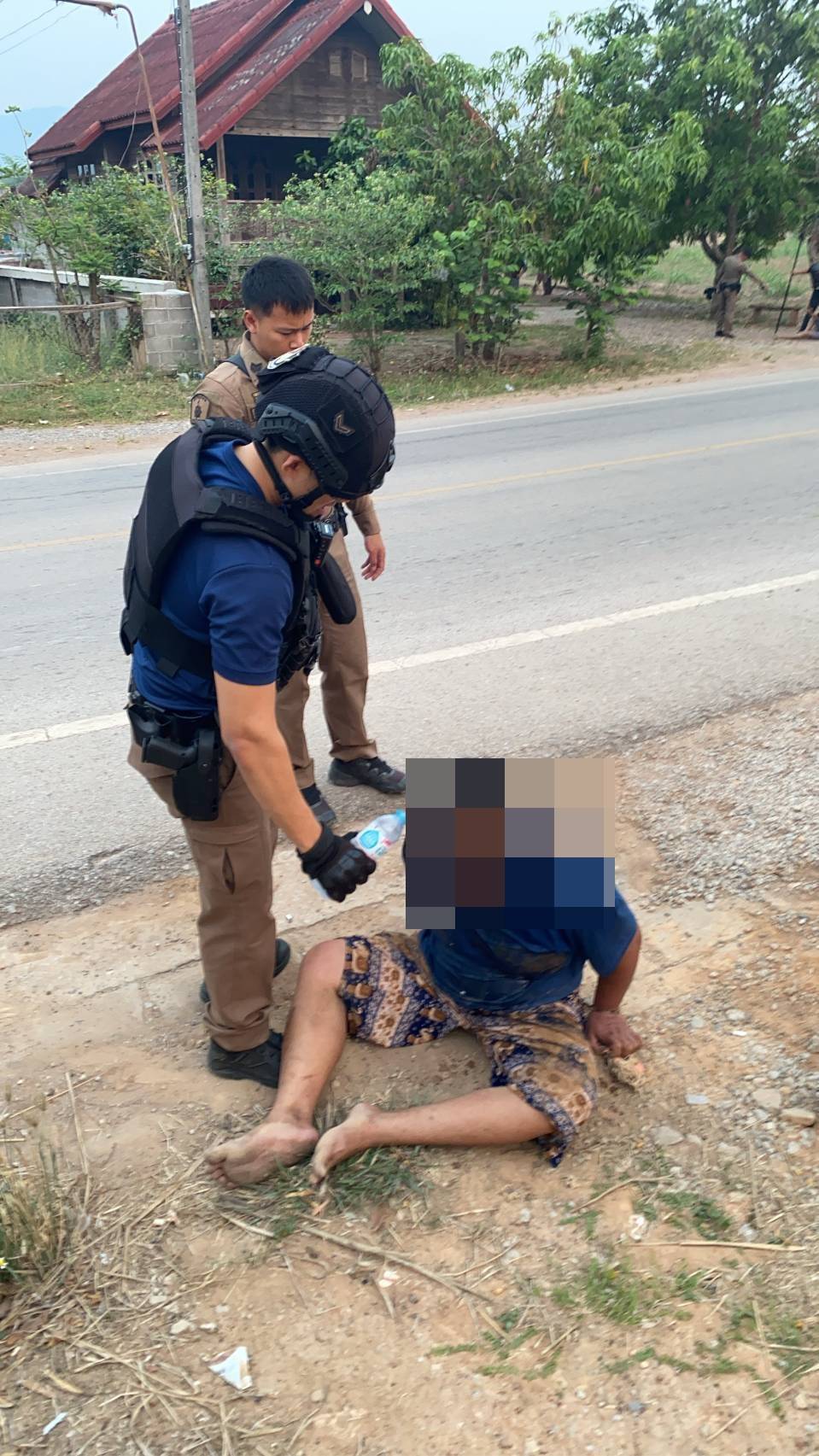 เมื่อเจ้าหน้าที่เดินทางไปถึงจุดเกิดเหตุพบชายมีอาการคลุ้มคลั่ง ทราบชื่อต่อมาคือ นายสิทธิชัยหรือตู่ ทุ่มมีเกตุ อายุ 32 ปี อยู่บ้านเลขที่ 105 หมู่ 5 บ้านสังกะลี ต.เเก้งไก่ อ.สังคม จ.หนองคาย กำลังอาละวาดด่าทอมารดาภายในบ้าน และเมื่อเห็นเจ้าหน้าที่ตำรวจนายสิทธิชัยได้วิ่งเข้าใส่เจ้าหน้าที่เพื่อทำร้ายร่างกายเจ้าหน้าที่ เจ้าหน้าที่จึงได้ขอกำลังสนับสนุนเพื่อระงับเหตุ แต่นายสิทธิชัยได้วิ่งหลบหนีเข้าไปในป่าสวนยางพาราหลังบ้าน เจ้าหน้าที่จึงกระจายกำลังรอบบริเวณเพื่อจับกุม