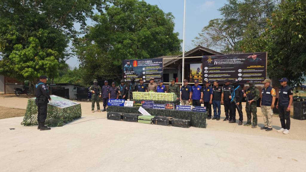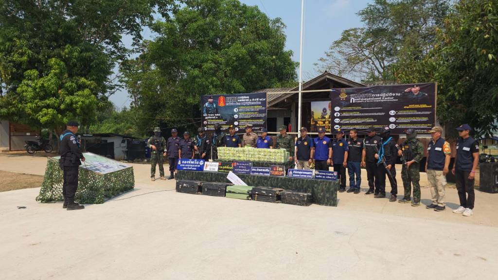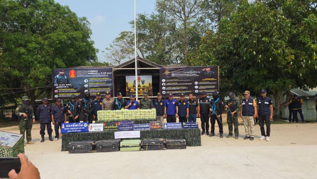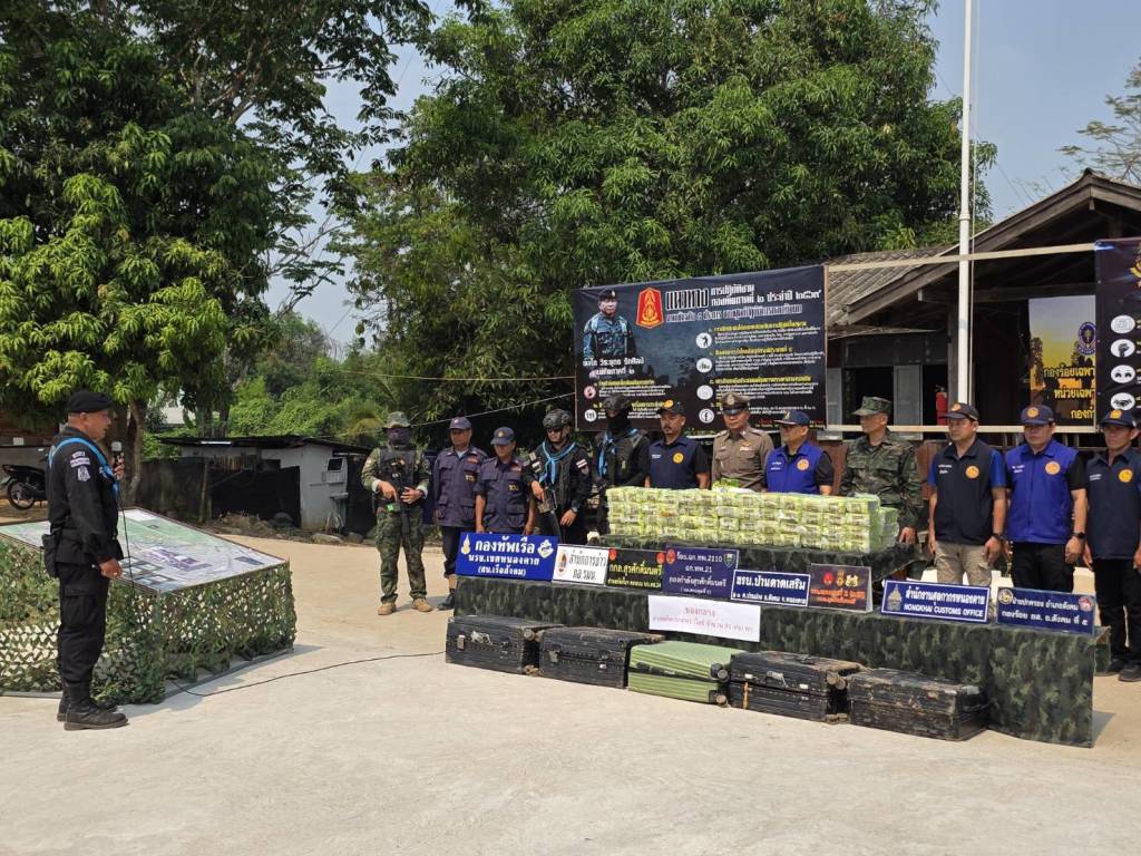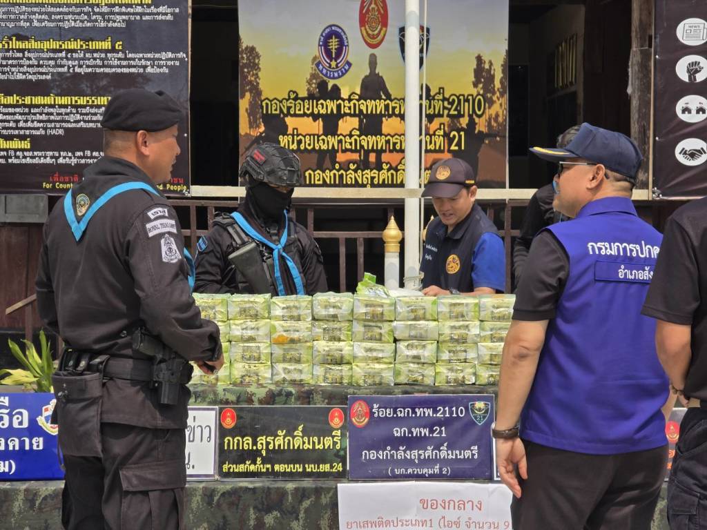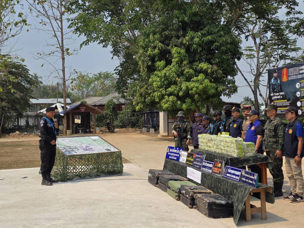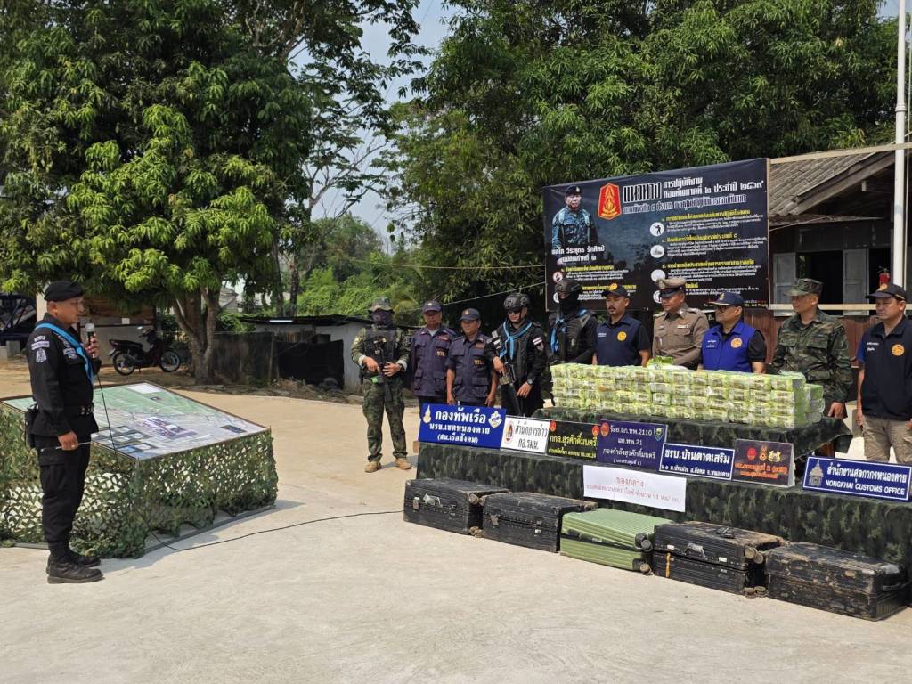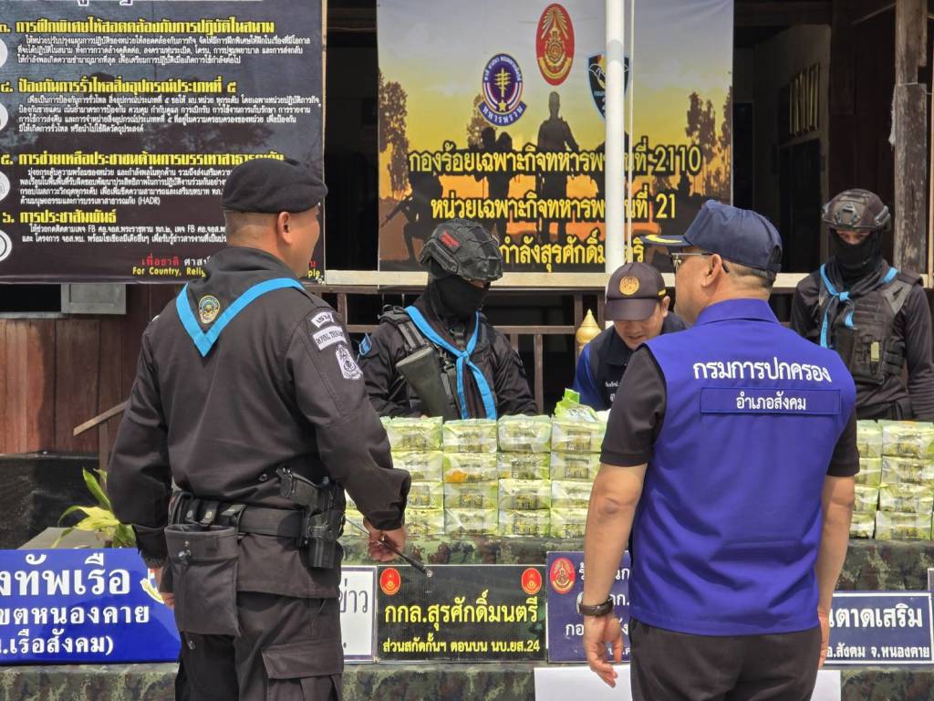 วันนี้ (8 เม.ย. 69) เวลา 14.00 น. ที่กองร้อยเฉพาะกิจทหารพรานที่ 2110 หน่วยเฉพาะกิจทหารพรานที่ 21 ตำบลบ้านม่วง อำเภอสังคม จังหวัดหนองคาย นายนวน โทบุตร นายอำเภอสังคม เป็นประธานแถลงข่าวตรวจยึดยาไอซ์ จำนวน 91 ห่อ/กิโลกรัม มูลค่ากว่า 12.7 ล้านบาท ภายหลังจากที่กองร้อยเฉพาะกิจทหารพรานที่ 2110 หน่วยเฉพาะกิจทหารพรานที่ 21 ตำบลบ้านม่วง อำเภอสังคม บูรณาการร่วมฝ่ายปกครองอำเภอสังคม นรข.เขตหนองคาย (สถานีเรือสังคม) เจ้าหน้าที่ตำรวจ สภ.นางิ้ว ตรวจยึดได้ที่ริมแม่น้ำโขงบ้านตาดเสริม ต.บ้านม่วง อ.สังคม โดย พ.อ.ศรณณัฐ นวลมณี ผู้บังคับการหน่วยเฉพาะกิจกรมทหารพรานที่ 21 มอบหมายให้ ร.อ.ยุทธณา สีไชย์ ผู้บังคับกองร้อยเฉพาะกิจทหารพรานที่ 2110 หน่วยเฉพาะกิจทหารพรานที่ 21 ร่วมในการแถลงข่าว มี ร.อ.ไพรสน พลเสน หัวหน้าสถานีเรือสังคม (นรข.เขตหนองคาย) ,พ.ต.ท.ประดุง วงชารี สวญ.สภ.นางิ้ว , นายเรืองรัตน์ เศษจำปา ผู้ใหญ่บ้านตาดเสริม พร้อมชุด ชรบ.หมู่บ้านตาดเสริม ร่วมในการแถลงข่าว