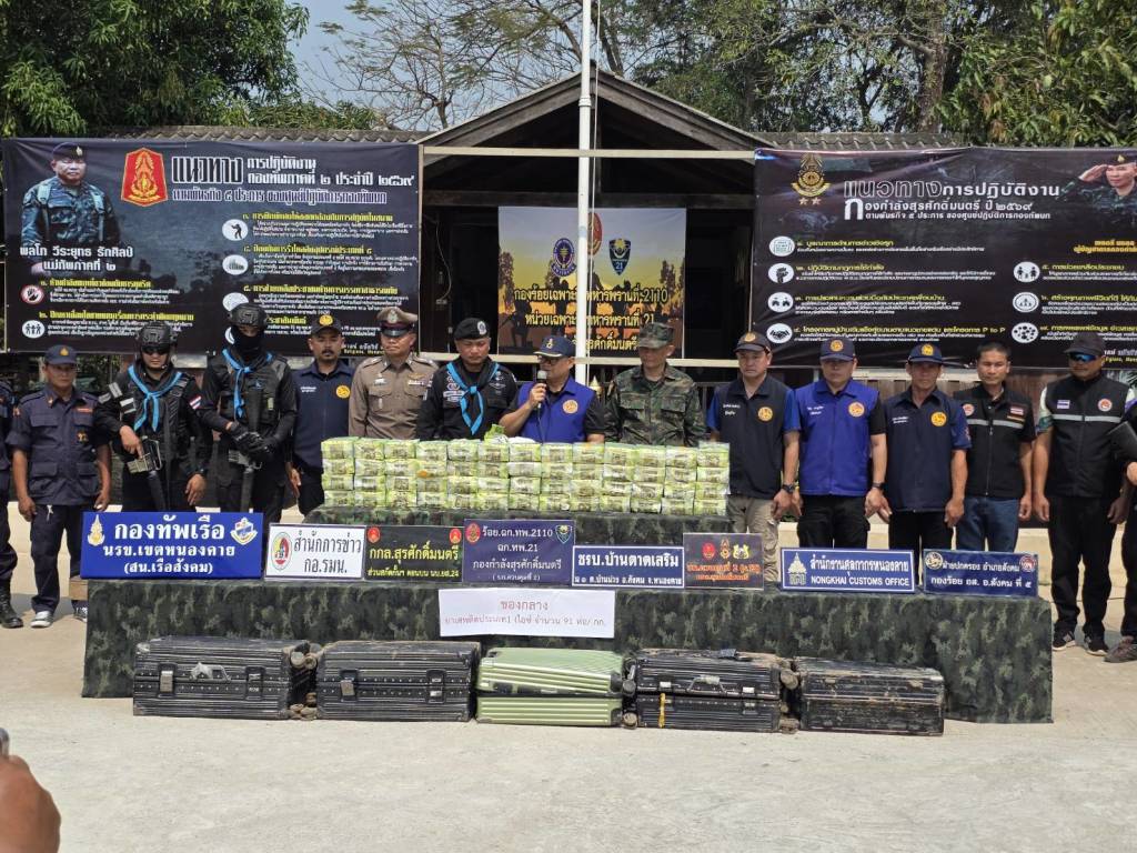 ต่อมาเวลา 04.00 น. เมื่อตรวจผ่านมาถึงบริเวณท้ายหมู่บ้านตาดเสริม ต.บ้านม่วง อ.สังคม เจ้าหน้าที่ตรวจพบกระสอบวางอยู่ริมแม่น้ำโขงจำนวน 5 กระสอบ จึงได้เฝ้าซุ่มรอดู สักพักไม่มีใครแสดงตัวเป็นเจ้าของ จึงเข้าตรวจสอบพบเป็นยาไอซ์จำนวน 91 ห่อ/กิโลกรัม มูลค่ากว่า 12.7 ล้านบาท