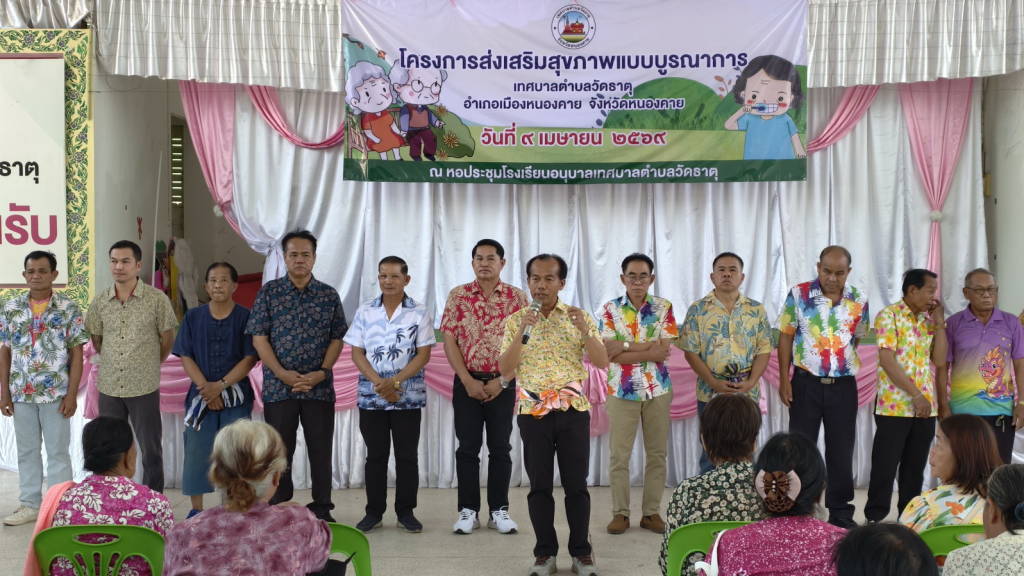 วันนี้ (9 เม.ย. 69) ที่หอประชุมโรงเรียนอนุบาลเทศบาลตำบลวัดธาตุ อ.เมืองหนองคาย จ.หนองคาย นายปราโมทย์ สุขสวัสดิ์ นายกเทศมนตรีตำบลวัดธาตุ เป็นประธานในพิธีเปิดโครงการส่งเสริมสุขภาพแบบบูรณาการ ประจำปีงบประมาณ 2569 และกิจกรรมรดน้ำขอพรผู้สูงอายุเนื่องในวันสงกรานต์ ปี 2569