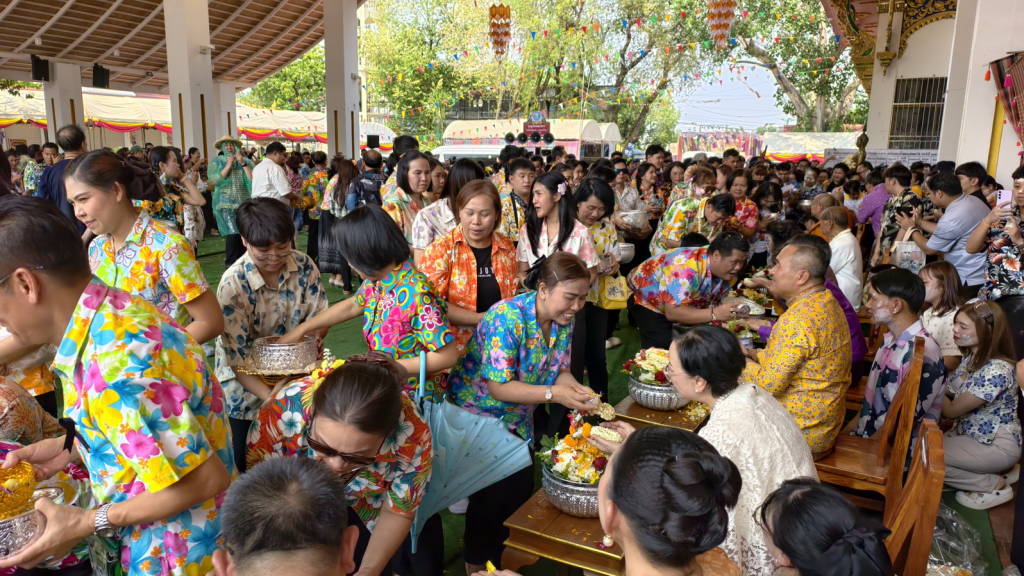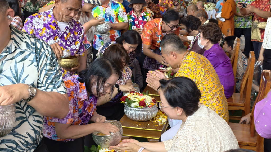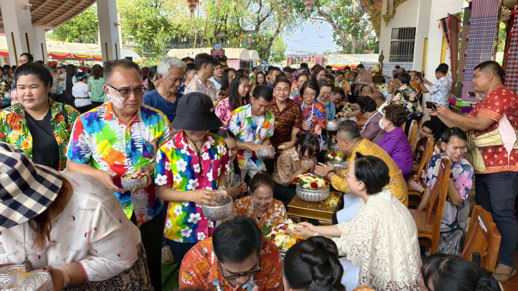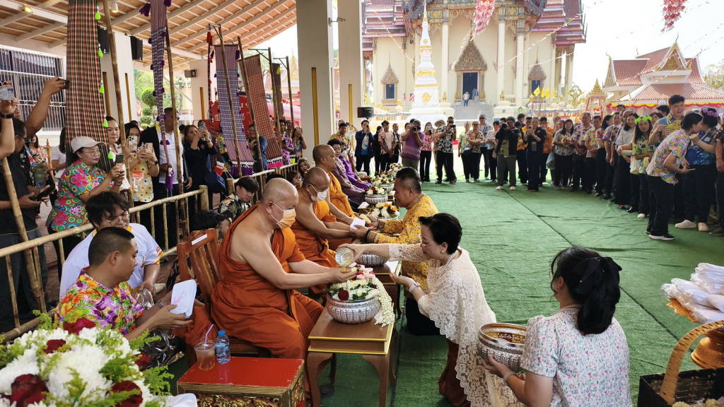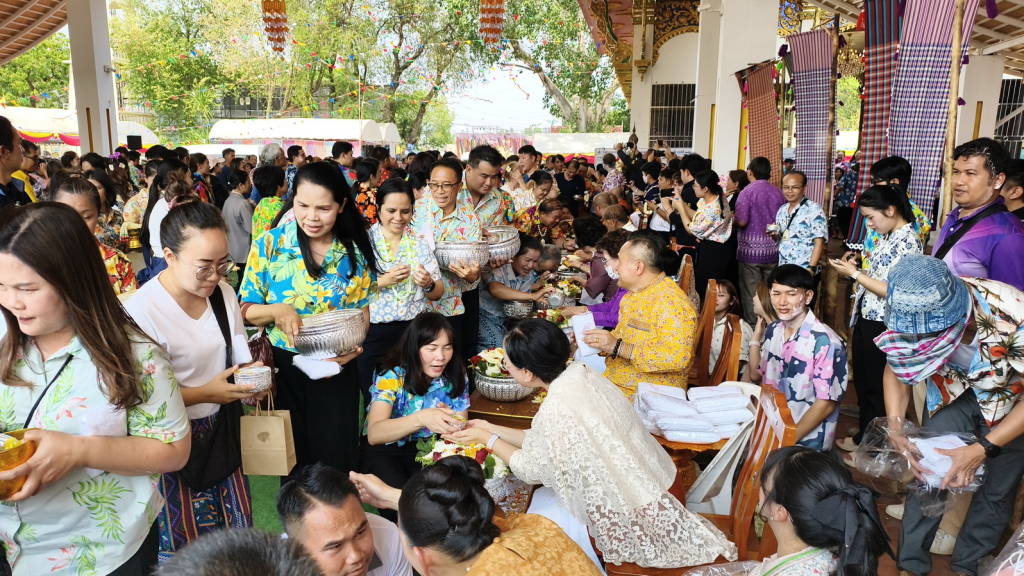 โดยนายศรัณย์ศักด์ ศรีเครือเนตร ผู้ว่าราชการจังหวัดหนองคาย ประธานฝ่ายฆราวาส ได้นำกล่าวขอขมาพระรัตนตรัย กล่าวขอพรจากพระเทพวชิรคุณ เจ้าคณะจังหวัดหนองคาย / เจ้าอาวาสวัดโพธิ์ชัย พระอารามหลวง เป็นประธานสงฆ์ , ประธานสงฆ์กล่าวให้พรเนื่องในโอกาสเทศกาลสงกรานต์ฯ , ผู้ว่าราชการจังหวัดหนองคายและนางฤดีวรรณ ศรีเครือเนตร นายกเหล่ากาชาดจังหวัดหนองคาย ถวายพวงมาลัยและสรงน้ำพระพุทธรูปหลวงพ่อพระใส(จำลอง) พระคู่บ้านคู่เมืองหนองคาย ถวายไทยธรรมและนำสรงน้ำพระสงฆ์ทรงสมณศักดิ์ รดน้ำขอพรผู้สูงอายุ ก่อนจะนั่งในจุดที่จัดเตรียมไว้ต่อจากผู้อาวุโสฯ