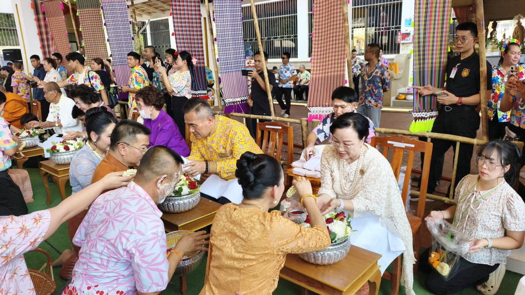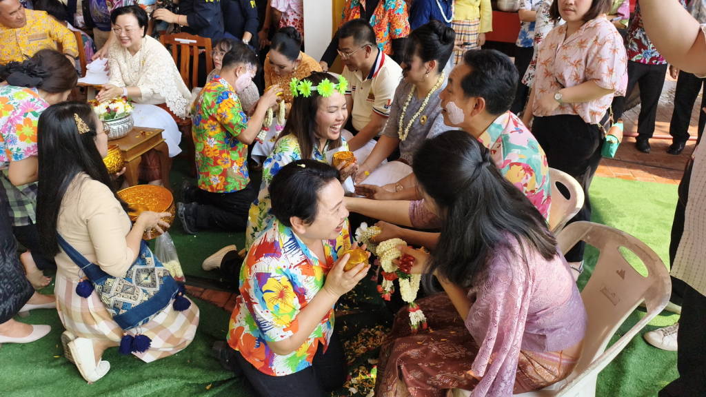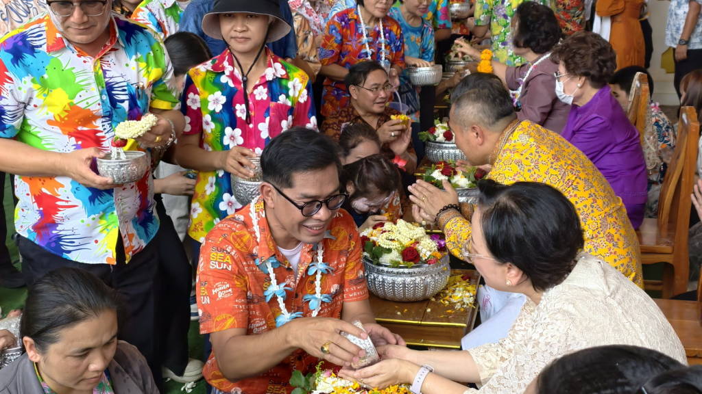 จากนั้นผู้ร่วมพิธีฯ นำโดยนายกิตติศักดิ์ ธีระวัฒนา รองผู้ว่าราชการจังหวัดหนองคาย , นายไพฑูรย์ มหาชื่นใจ รองผู้ว่าราชการจังหวัดหนองคาย และนางวรรณวิไล กันเพ็ชร์ รองประธานชมรมแม่บ้านมหาดไทยจังหวัดหนองคาย ก็ได้ร่วมกันสรงน้ำพระพุทธรูปหลวงพ่อพระใส สรงน้ำพระสงฆ์ทรงสมณศักดิ์ รดน้ำขอพรผู้สูงอายุ รดน้ำขอพรจากผู้ว่าราชการจังหวัดหนองคายและนายกเหล่ากาชาดจังหวัดหนองคาย ซึ่งแต่ละคนได้นำน้ำอบน้ำหอม พวงมาลัยดอกไม้ ต่อแถวสรงน้ำ รดน้ำ โดยได้สรงน้ำพระพุทธรูปหลวงพ่อพระใส(จำลอง) รดน้ำขอพรผู้สูงอายุ ก่อนจะรดน้ำผู้ว่าราชการจังหวัดหนองคาย นายกเหล่ากาชาดจังหวัดหนองคาย รองผู้ว่าราชการจังหวัดหนองคาย รองประธานชมรมแม่บ้านมหาดไทยจังหวัดหนองคาย และรองนายกเหล่ากาชาดจังหวัดหนองคาย ตามลำดับ มีวงกลองยาว “วงยุวบูรณ์กลองยาว” จากโรงเรียนเทศบาล 3 ยุวบูรณ์บำรุง มาสร้างความบันเทิงและสนุกสนานให้กับผู้ที่มาร่วมพิธีฯในครั้งนี้อีกด้วย.
