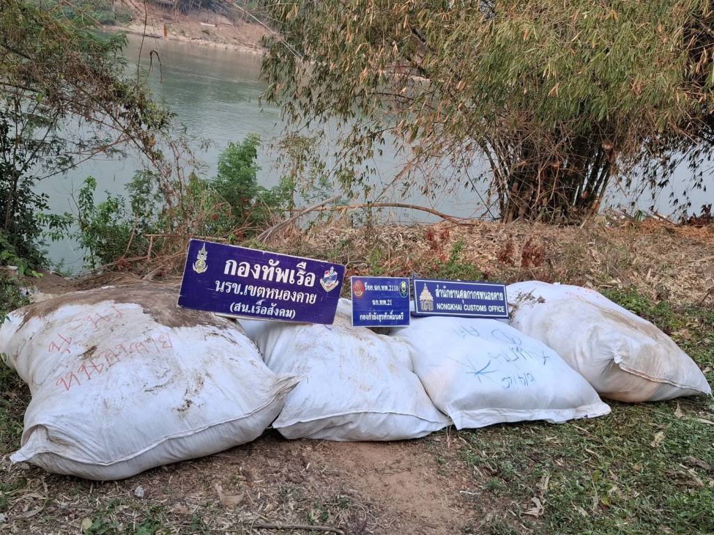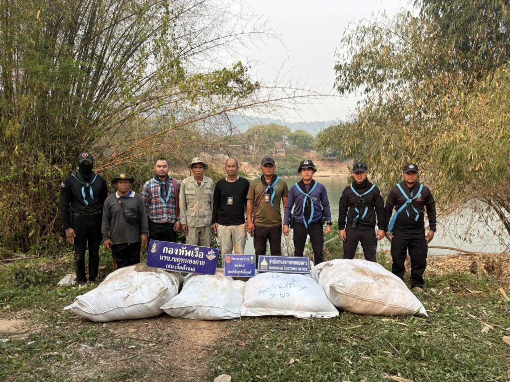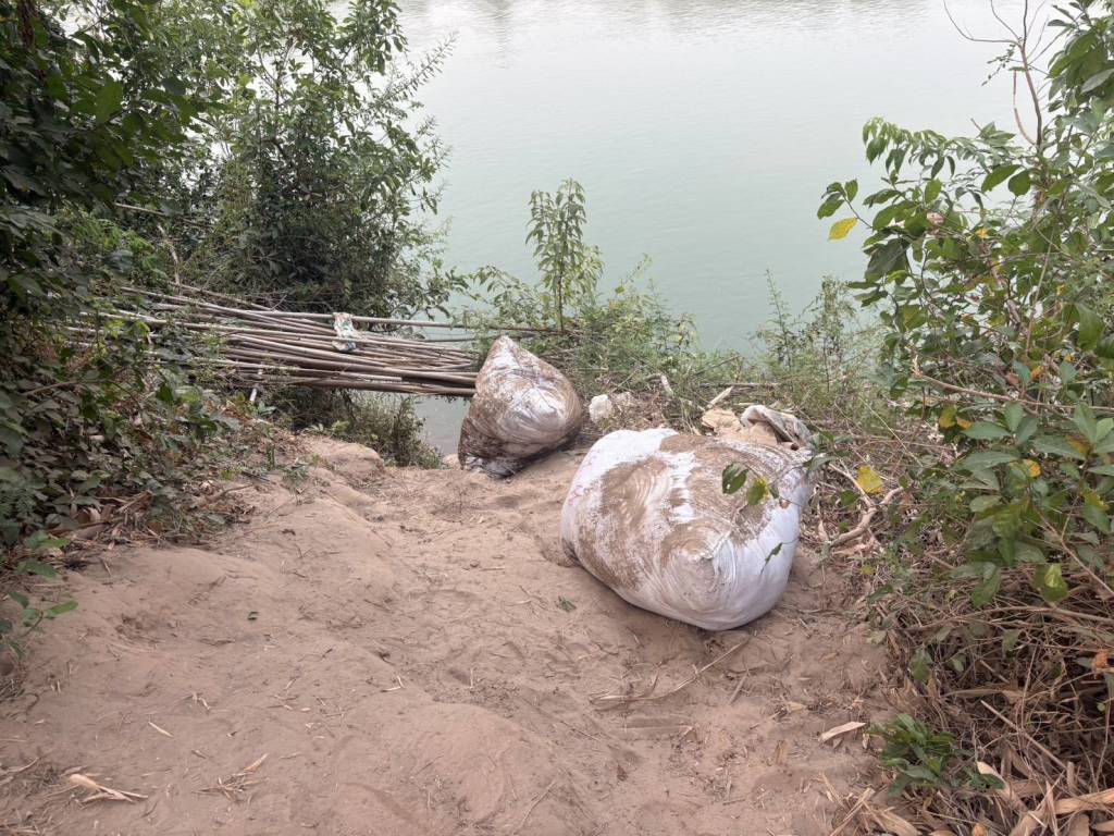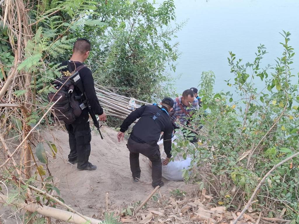 ต่อมาเวลา 16.00 น. (11 เม.ย. 69) เจ้าหน้าที่ได้ตรวจพบชายหญิง กลุ่มหนึ่งอุ้มแบกกระสอบสีขาว โดยแบ่งงานกันคือ คนแบก และ คนดูต้นทาง ช่วยกันอุ้มกระสอบบริเวณริมฝั่งตลิ่งแม่น้ำโขง เจ้าหน้าที่จึงแสงตัวเข้าตรวจสอบ แต่เมื่อกลุ่มคนดังกล่าวเห็นเจ้าหน้าที่จึงทิ้งกระสอบสีขาวแล้ววิ่งหลบหนีไป