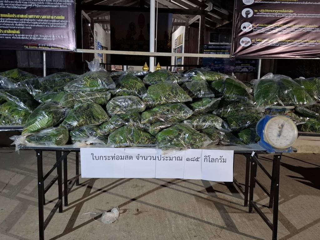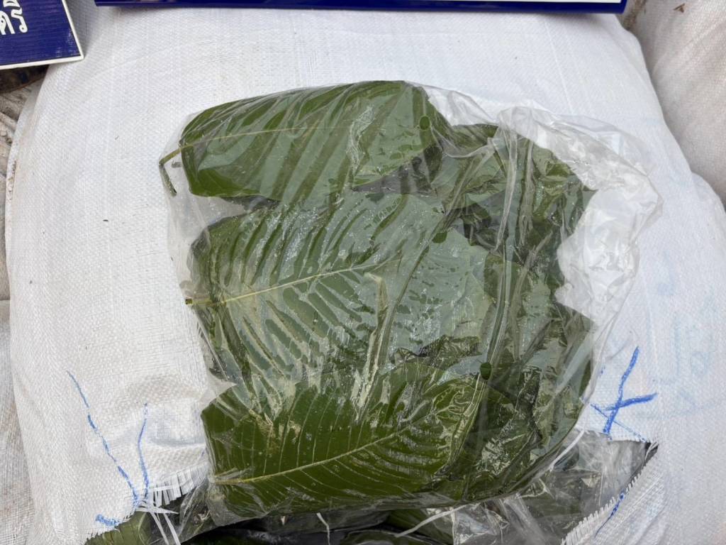 เจ้าหน้าที่จึงได้ทำการตรวจสอบพบ กระสอบสีขาวจำนวน 4 กระสอบ ภายในเป็นใบกระท่อมสด จำนวน 185 กิโลกรัม (ตรวจนับภายหลัง) ไม่ผ่านพิธีศุลกากร เจ้าหน้าที่จึงได้ดำเนินการขนย้ายของกลางทั้งหมดมาที่ บก.ร้อยฉก.ทพ.2110 เพื่อทำการตรวจนับอย่างละเอียด