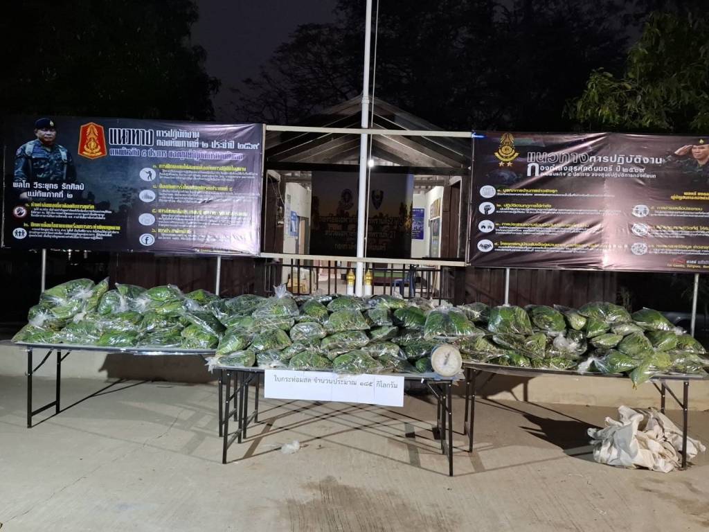 กองร้อยเฉพาะกิจทหารพรานที่ 2110 หน่วยเฉพาะกิจทหารพรานที่ 21 ตำบลบ้านม่วง อำเภอสังคม จังหวัดหนองคาย ตรวจยึดใบกระท่อมสด จำนวน 185 กิโลกรัม ที่นำเข้ามาจากประเทศเพื่อนบ้าน