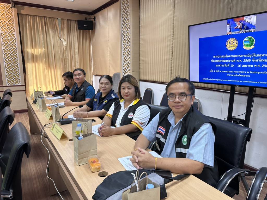 วันที่ 14 เมษายน 2569 เวลา 09.00 น. ณ ห้องประชุมพระใส ชั้น 2 ศาลากลางจังหวัดหนองคาย นายศรัณย์ศักด์ ศรีเครือเนตร ผู้ว่าราชการจังหวัดหนองคาย มอบหมายให้ นายไพฑูรย์ มหาชื่นใจ รองผู้ว่าราชการจังหวัดหนองคาย เป็นประธานการประชุมคณะกรรมการศูนย์ปฏิบัติการป้องกันและลดอุบัติเหตุทางถนนช่วงเทศกาลสงกรานต์ พ.ศ.2569 จังหวัดหนองคาย ครั้งที่ 4 พร้อมด้วยคณะกรรมการ ศปถ.จังหวัด ศปถ.อำเภอ ผู้แทนส่วนราชการ และเจ้าหน้าที่หน่วยงานที่เกี่ยวข้อง ร่วมประชุมเพื่อรับทราบผลการดำเนินงานการปฏิบัติงานของส่วนราชการ หน่วยงาน ในการป้องกันและลดอุบัติเหตุทางถนนช่วงเทศสงกรานต์ พ.ศ.2569 จังหวัดหนองคาย