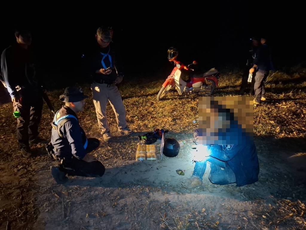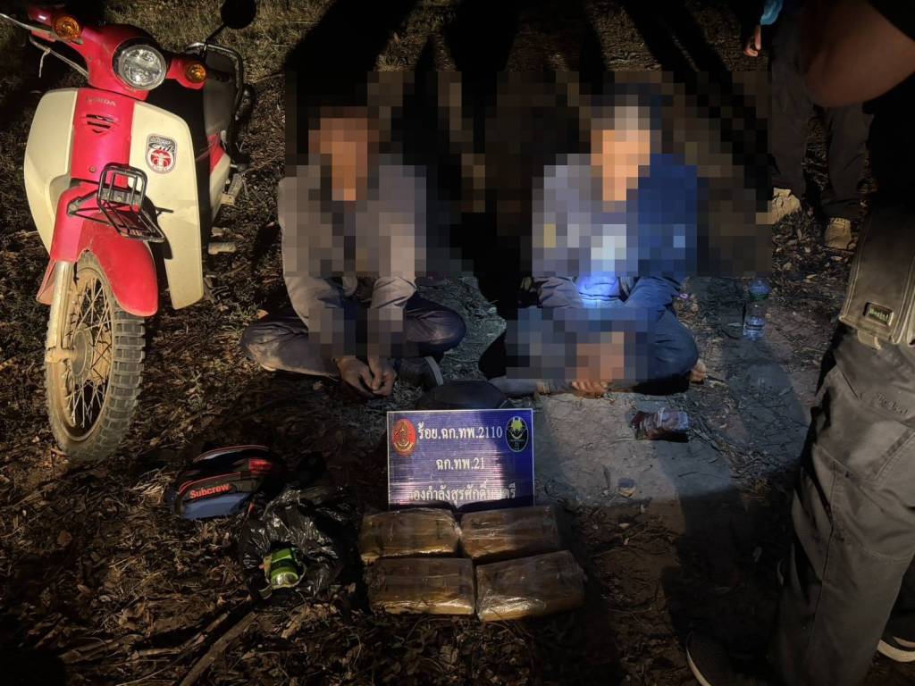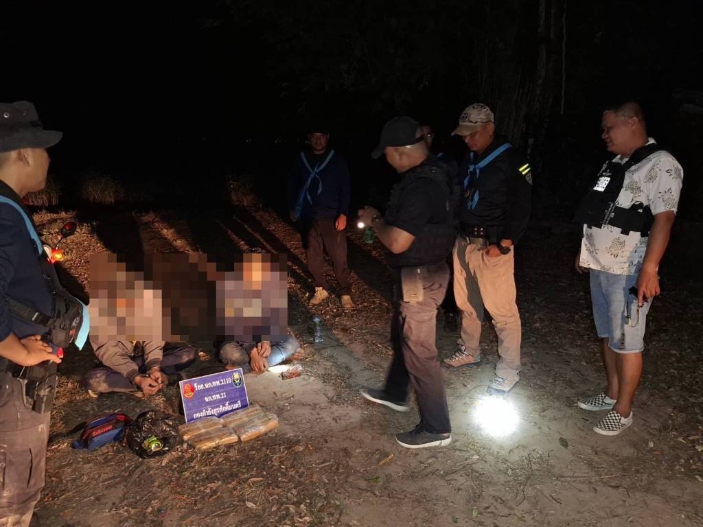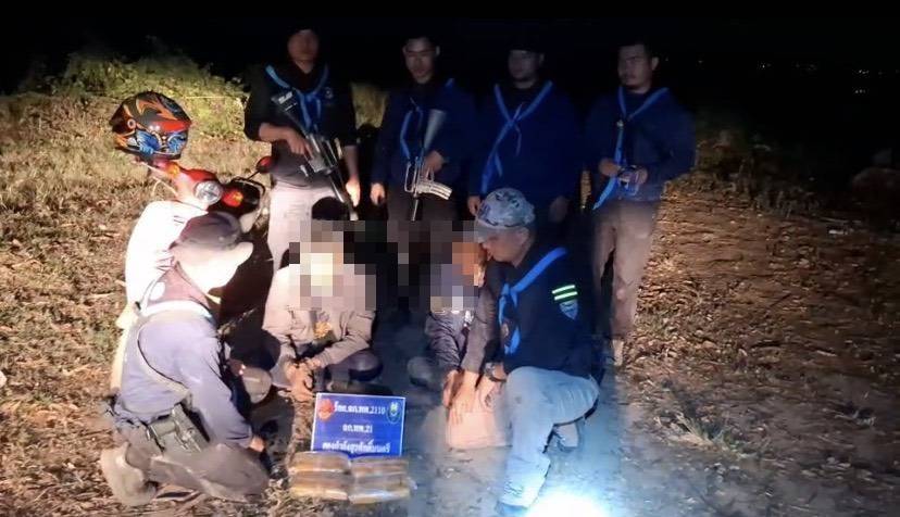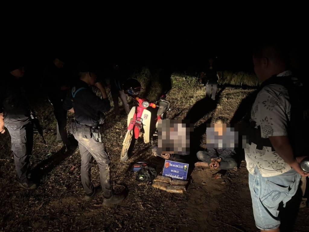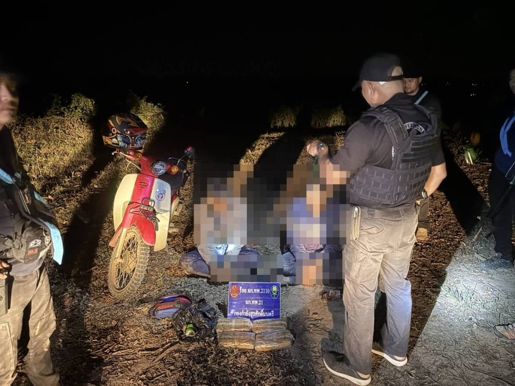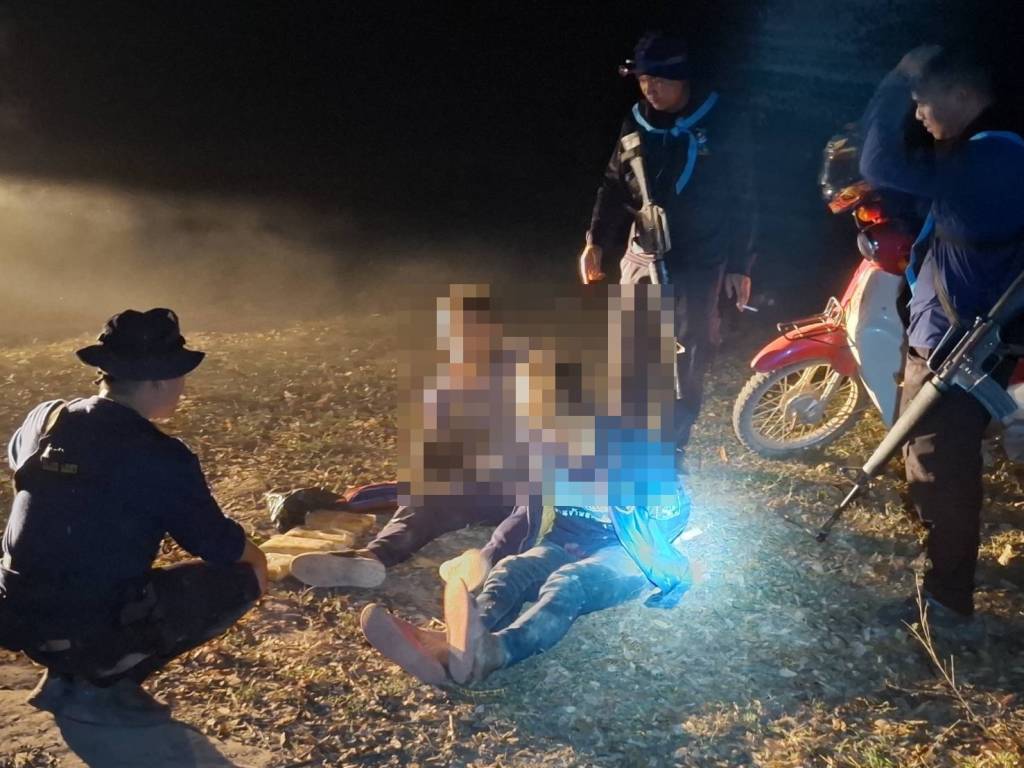 เมื่อเรือลำดังกล่าวเข้าเทียบฝั่งและแล่นออกไปจอดลอยลำอยู่กลางแม่น้ำโขง เจ้าหน้าที่จึงเฝ้าสังเกตกระทั่งต่อมาพบว่ามีรถจักรยานยนต์ขับเข้ามามีชายวัยรุ่นสองคนเป็นผู้ขับขี่ จากนั้นชายที่นั่งซ้อนท้ายรถจักรยานยนต์คันดังกล่าวได้ลงมาหยิบเอาวัตถุต้องสงสัยเจ้าหน้าที่จึงแสดงตัวเข้าทำการตรวจสอบเมื่อใช้ทั้งสองเห็นเจ้าที่พยามจะหลบหนีเจ้าที่ติดตามไปสามารถควบคุมตัวไว้ได้ ทราบชื่อทั้งสองต่อมาคือ