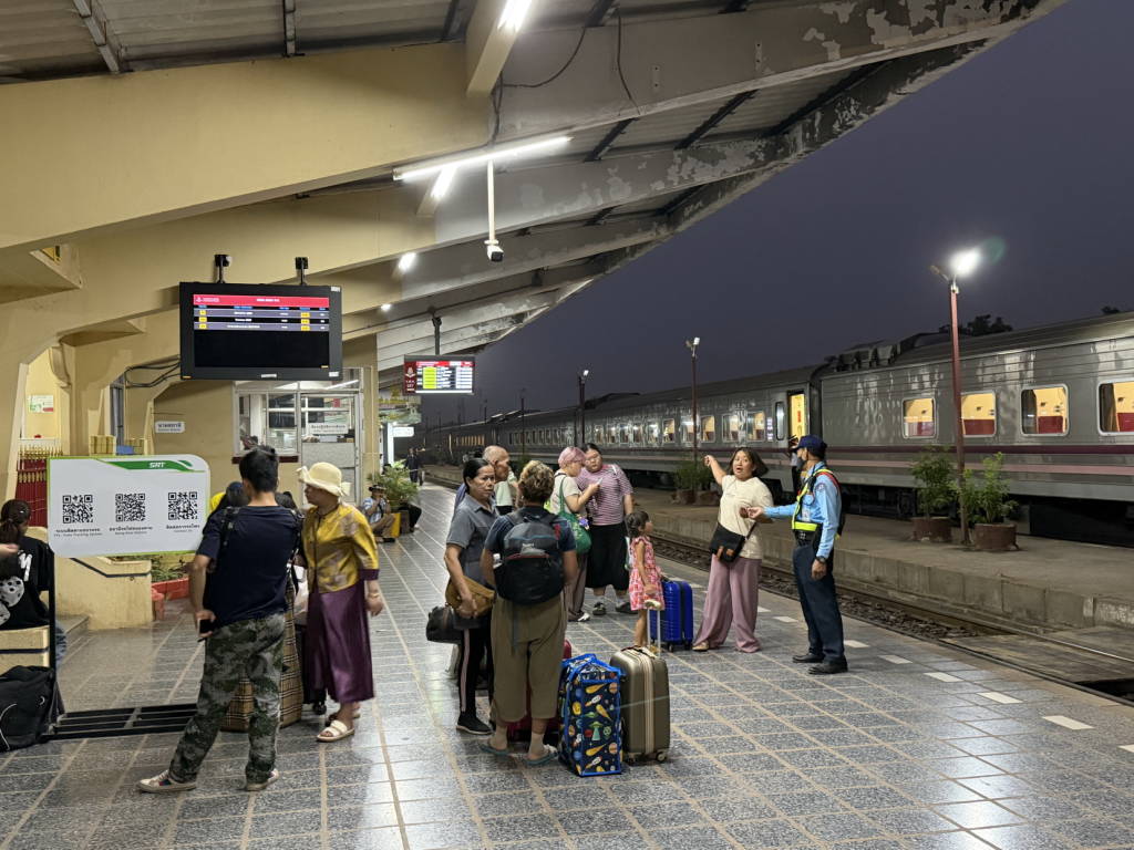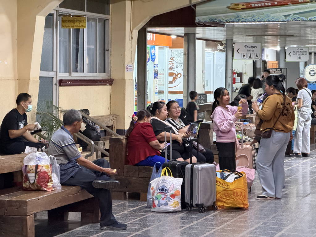 บรรยากาศการเดินทางกลับเข้ากรุงเทพมหานครและจังหวัดใกล้เคียง หลังจากหยุดยาวเทศกาลสงกรานต์ เมื่อช่วงค่ำของวันนี้ (15 เม.ย. 2569) ที่สถานีรถไฟหนองคายคึกคักกว่าทุกวันที่ผ่านมา มีประชาชนชาวหนองคาย ชาวลาว และนักท่องเที่ยว ทยอยมารอเพื่อขึ้นรถไฟอย่างต่อเนื่อง ซึ่งในช่วงค่ำจะมีรถไฟออกจากสถานีหนองคาย ไปยังสถานีกรุงเทพอภิวัฒน์ จำนวน 2 ขบวน คือขบวนรถด่วนพิเศษ หนองคาย – กรุงเทพอภิวัฒน์ ออกจากสถานีหนองคาย เวลา 19.40 น. และขบวนรถเร็วเวียงจันทน์(คำสะหวาด) – กรุงเทพอภิวัฒน์ ออกจากสถานีหนองคาย เวลา 20.15 น. โดยประชาชนชาวหนองคาย ชาวลาว และนักท่องเที่ยว โดยเฉพาะที่เป็นแรงงานชาวไทยและชาวลาว แต่ละคนได้นำเอา ข้าวสาร และอาหารแห้ง เพื่อเป็นการลดค่าใช้จ่ายในระหว่างที่ทำงานอยู่ที่กรุงเทพฯ โดยมีเจ้าหน้าที่ของการรถไฟคอยดูแลอำนวยความสะดวกและให้บริการกับผู้ที่เดินทางกลับโดยขบวนรถไฟ ซึ่งในวันนี้มีการเสริมตู้รถไฟขบวนรถเร็วเวียงจันทน์(คำสะหวาด) – กรุงเทพอภิวัฒน์ จำนวน 6 ตู้ เพื่อให้เพียงพอกับผู้มาใช้บริการ