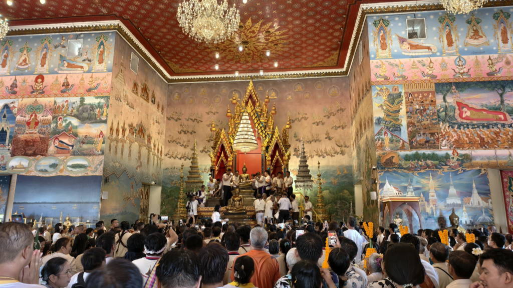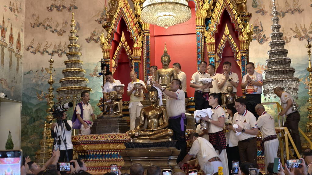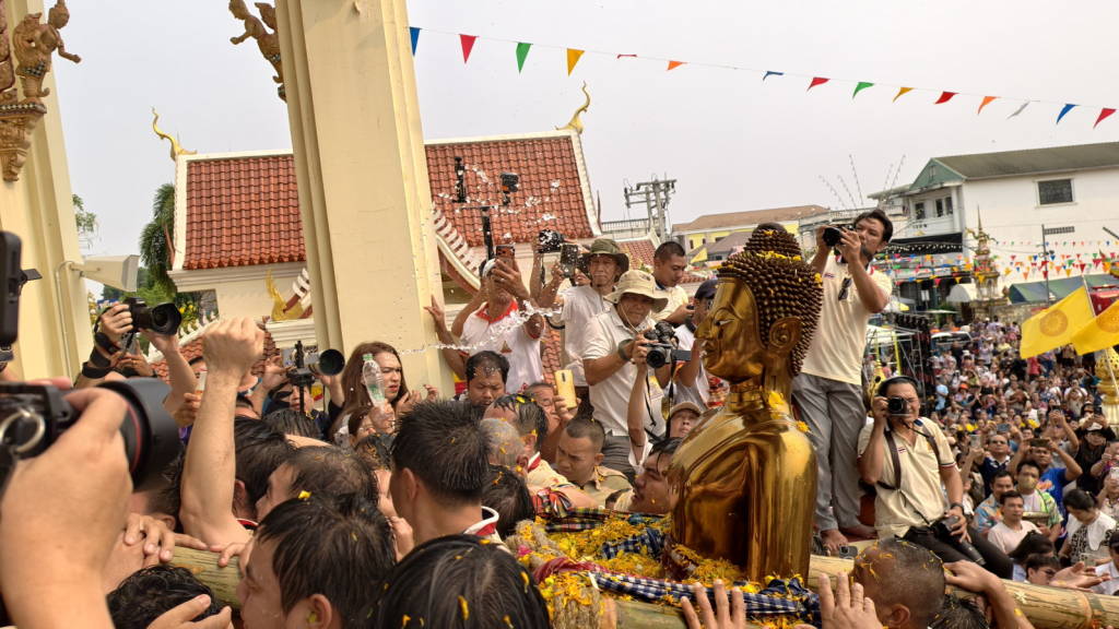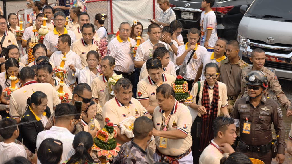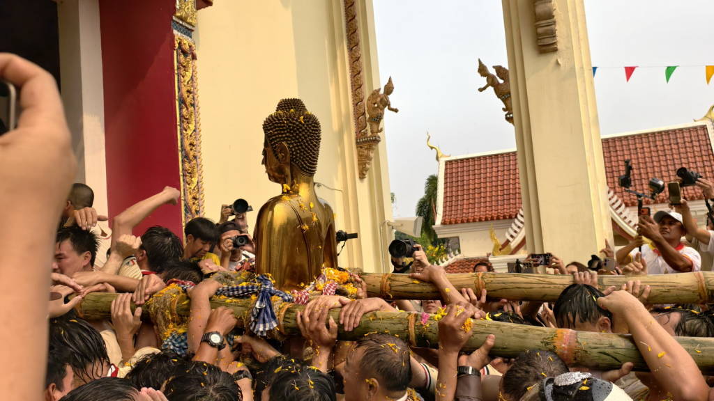 โดยพิธีอัญเชิญฯ ได้จัดให้มีขบวนแห่หลวงพ่อพระใสออกจากพลับพลาหลวงพ่อพระใส แห่รอบพระอุโบสถ 3 รอบ ก่อนอัญเชิญกลับขึ้นประดิษฐานภายในพระอุโบสถเช่นเดิม หลังจากที่ได้อัญเชิญหลวงพ่อพระใสลงจากพระอุโบสถ เมื่อวันที่ 13 เมษายน 2569 ที่ผ่านมา เพื่อให้ประชาชนชาวหนองคาย และนักท่องเที่ยวได้สรงน้ำเพื่อความเป็นสิริมงคลอย่างใกล้ชิด โดยมีประชาชนชาวหนองคาย ชาว สปป.ลาว ดารา นักร้อง และนักแสดง เช่นโดม ปกรณ์ ลัม , อู๊ด เป็นต่อ , พี ร็อคสะเดิด และเหล่าตลกตระกูลเชิญยิ้ม เข้าร่วมในพิธีฯ ด้วยพลังศรัทธาที่มีต่อองค์หลวงพ่อพระใสเป็นจำนวนมาก